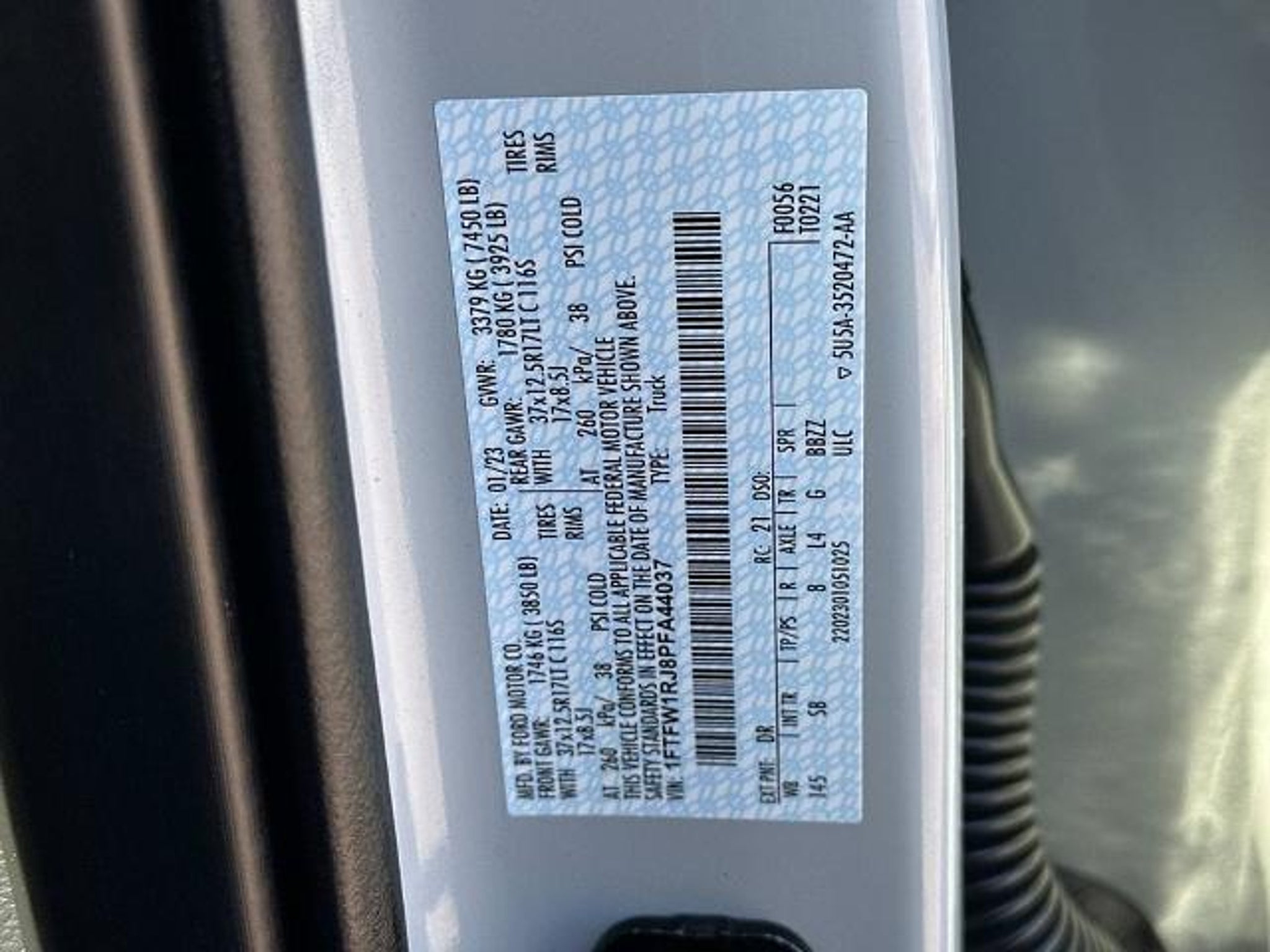 VIN 1FTFW1RJ8PFA44037