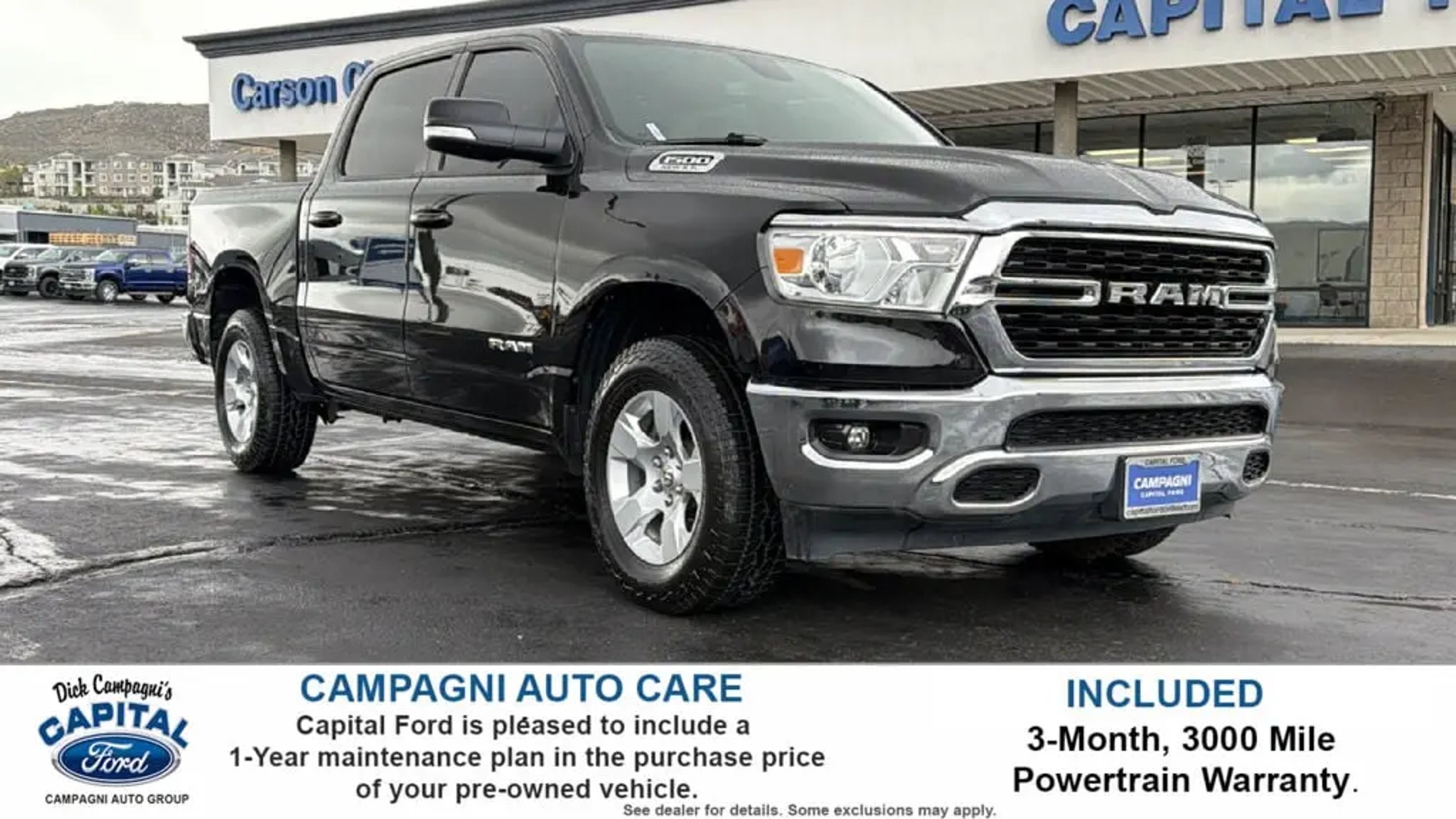 Details > 2022 RAM 1500 4X4 Big Horn 4DR Crew Cab 5.6 FT. SB Pickup For Sale in Carson City, NV Private Party Sellers Click here to place your ad now! You auta tell them you saw the ad in AutaBuy when you call or email. 1/30 2/30 3/30 4/30 5/30 6/30 7/30 8/30 9/30 10/30 11/30 12/30 13/30 14/30 15/30 16/30 17/30 18/30 19/30 20/30 21/30 22/30 23/30 24/30 25/30 26/30 27/30 28/30 29/30 30/30 View 30 Photos View All Add to My Garage Parked in Your Garage! Capital Ford Contact Seller: I would like to: Make Offer Check Availability Ask A Question Request More Photos Check Financing Options Send a copy of this message to me Add this listing to my garage Send to Mobile Mileage 36,133 Exterior Color Diamond Black Crystal Pearlcoat Interior Color Black Doors 4 Engine 5.7L V8 Transmission 8 Speed Auto Stock # 41088A VIN 1C6SRFFT0NN141316 Estimated Monthly Payment $661 mo Apply Now J.J. Best Banc & Co. 2022 RAM 1500 4X4 Big Horn 4DR Crew Cab 5.6 FT. SB Pickup Description: 2022 Ram 1500 BIG HORN 4X4 CREW CA · Mileage: 36,133 · Color: Diamond Black Crystal Pearlcoat Price: $37,995. Mileage 36,133 Exterior Color Diamond Black Crystal Pearlcoat Interior Color Black Doors 4 Engine 5.7L V8 Transmission 8 Speed Auto Stock # 41088A VIN 1C6SRFFT0NN141316 Estimated Monthly Payment $661 mo Apply Now J.J. Best Banc & Co. Add to My Garage Parked in Your Garage! Message Seller Capital Ford Contact Seller: I would like to: Make Offer Check Availability Ask A Question Request More Photos Check Financing Options Send a copy of this message to me Add this listing to my garage Offered for sale by Capital Ford CARSON CITY, NV Price: $37,995. Offered for sale by Capital Ford CARSON CITY, NV [entire inventory] Ask Auta Intelligence The first collector-car AI built directly into a classic car marketplace Can you show me more pickups/trucks for a similar price? What size tires does this run from the factory? How many 1500s were produced in Black? When was this model first introduced? Tell me about this model What kind of mileage do these get? What trim levels were available for this model? How far is this from me? What colors did these come in? How many of these were produced? What factory options were available on this model? Where is this located? What engine options did these come with? How easy are parts to find for this model? What's the typical towing capacity in this configuration? What does this VIN number tell me? What transmission options did these offer? Do you have a similar car to sell? List It Now! Questions about this car? Ask Auta Intelligence for production numbers, available options, etc. · Subscribe to AutaBuy! · Send a Gift Subscription Notice to a Friend