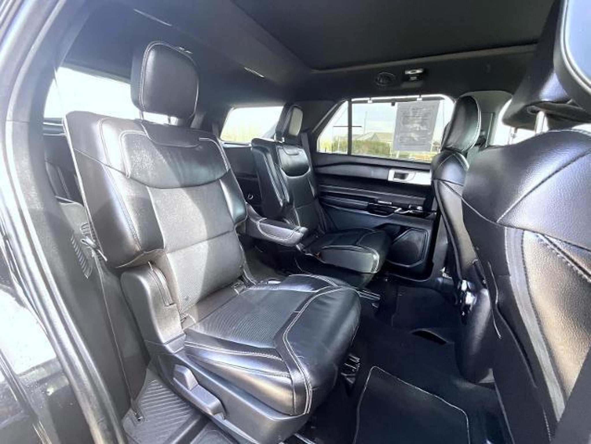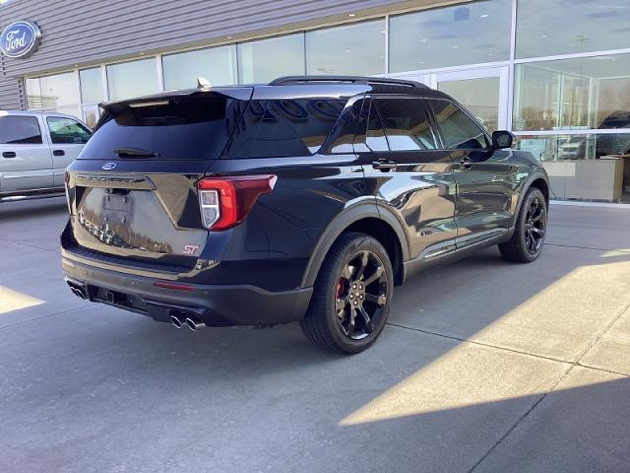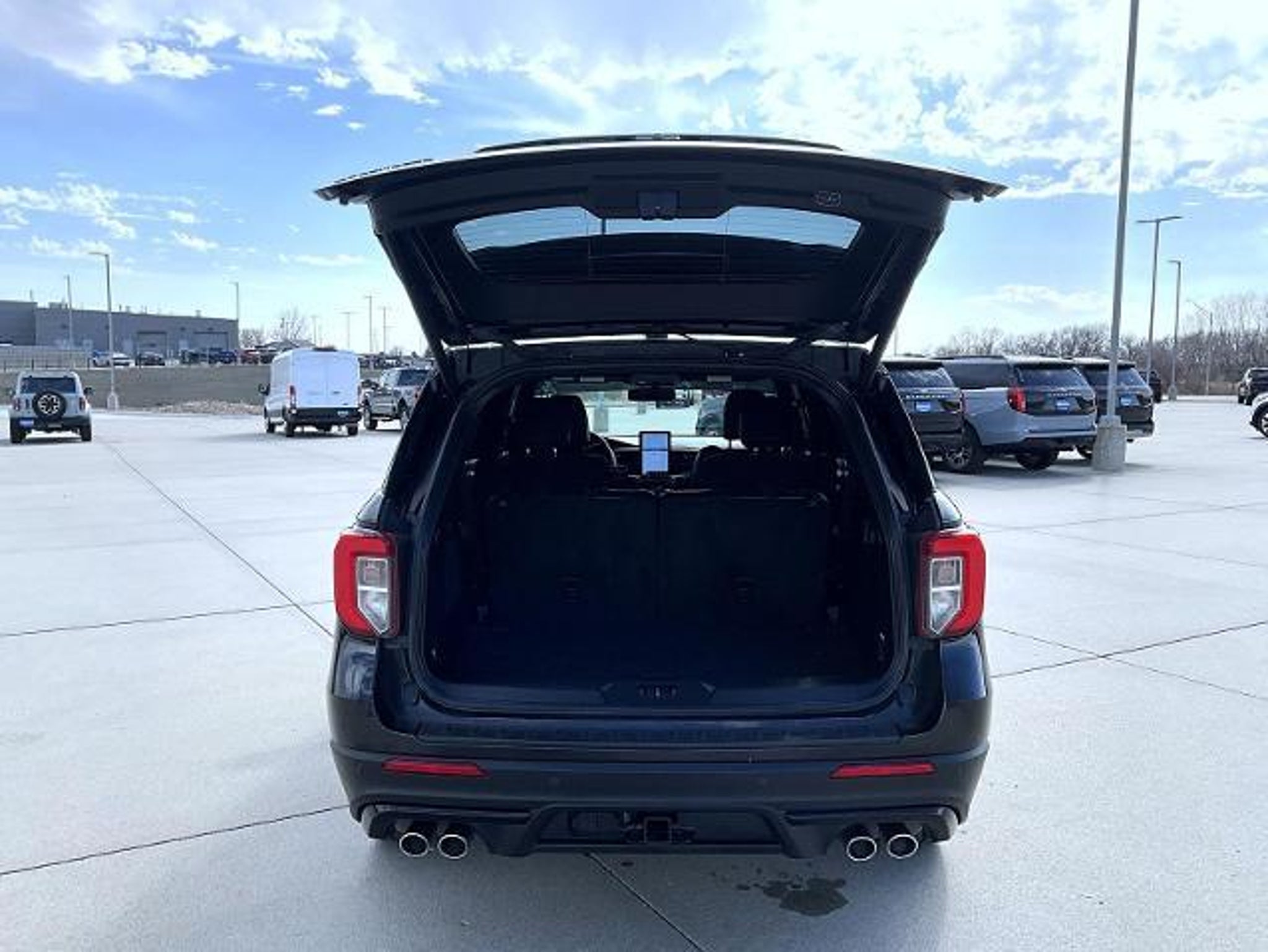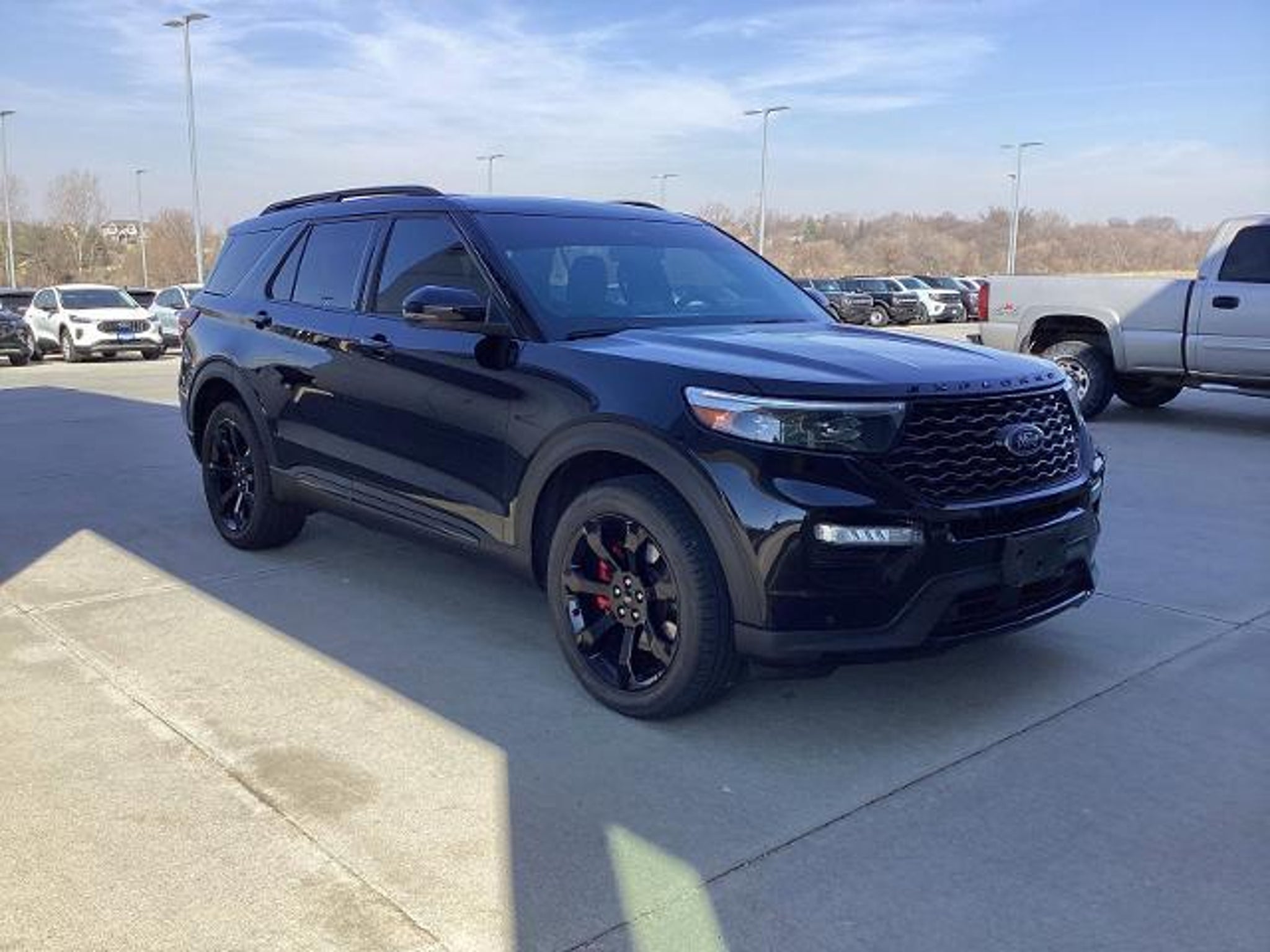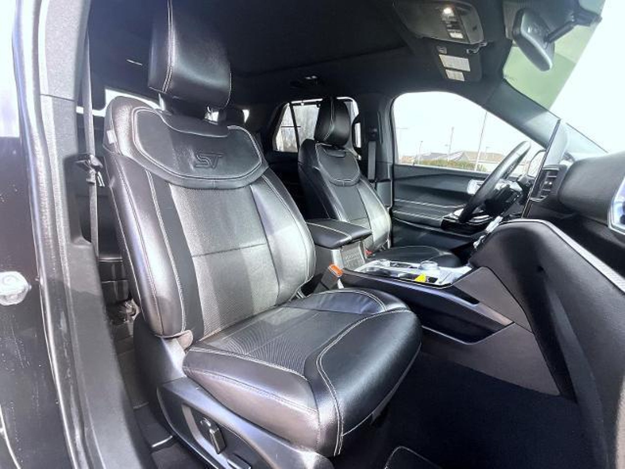 Black Metallic 2024 Ford Explorer ST 4WD 10-Speed Automatic 3.0L 6 cylinder 4WD, 10.1 LCD Capacitive Portrait Touchscreen, 110V/150W AC Power Outlet, 2 Additional Speakers, 20 Machined Aluminum w/Painted Pockets Wheels, 3.58 Non-Limited-Slip Rear Axle Ratio, 360-Degree Camera Credit, 360-Degree Camera w/Split View, 3rd row seats: bench, 4-Wheel Disc Brakes, 4G LTE Wi-Fi Hotspot Credit, 6 Speakers, ABS brakes, Air Conditioning, Alloy wheels, AM/FM radio: SiriusXM, AM/FM Stereo, Auto High-beam Headlights, Auto-Dimming Rearview Mirror (Interior), Automatic temperature control, Brake assist, Bumpers: body-color, Compass, Delay-off headlights, Driver door bin, Driver vanity mirror, Dual front impact airbags, Dual front side impact airbags, Electronic Stability Control, Emergency communication system: SYNC 3 911 Assist, Equipment Group 401A, Evasive Steering Assist, Exterior Parking Camera Rear, Ford Co-Pilot360 Assist, FordPass Connect, Four wheel independent suspension, Front anti-roll bar, Front Bucket Seats, Front Center Armrest, Front dual zone A/C, Front fog lights, Front License Plate Bracket, Front Parking Sensors, Front Rain-Sensing Wipers, Front reading lights, Fully automatic headlights, Heated door mirrors, Heated front seats, Heated steering wheel, Illuminated entry, Intelligent Adaptive Cruise Control, Knee airbag, Leather Htd/Ventilated Sport Captain's Chairs, Leather steering wheel, Low tire pressure warning, Memory Driver's Seat, Memory seat, Occupant sensing airbag, Outside temperature display, Overhead airbag, Overhead console, Panic alarm, Passenger door bin, Passenger vanity mirror, Performance Front & Rear Brakes, Power door mirrors, Power driver seat, Power Liftgate, Power passenger seat, Power steering, Power Tilt/Telescoping Steering Column, Power windows, Radio: B&O Sound System by Bang & Olufsen, Rear air conditioning, Rear anti-roll bar, Rear reading lights, Rear window defroster, Rear window wiper, Remote keyless entry, Reverse Brake Assist, Reverse Brake Assist Credit, Second Row Heated Seats, Security system, SelectShift Capability w/Paddle Shifters, Sideview Mirrors w/Gloss Black Caps, Speed control, Speed Sign Recognition, Speed-sensing steering, Speed-Sensitive Wipers, Split folding rear seat, Spoiler, Sport steering wheel, ST High Package, ST High-Performance Pack, ST Street Pack, Steering wheel mounted audio controls, SYNC 3 Communications & Entertainment System, SYNC 3/Apple CarPlay/Android Auto, Tachometer, Technology Package, Telescoping steering wheel, Third Row PowerFol