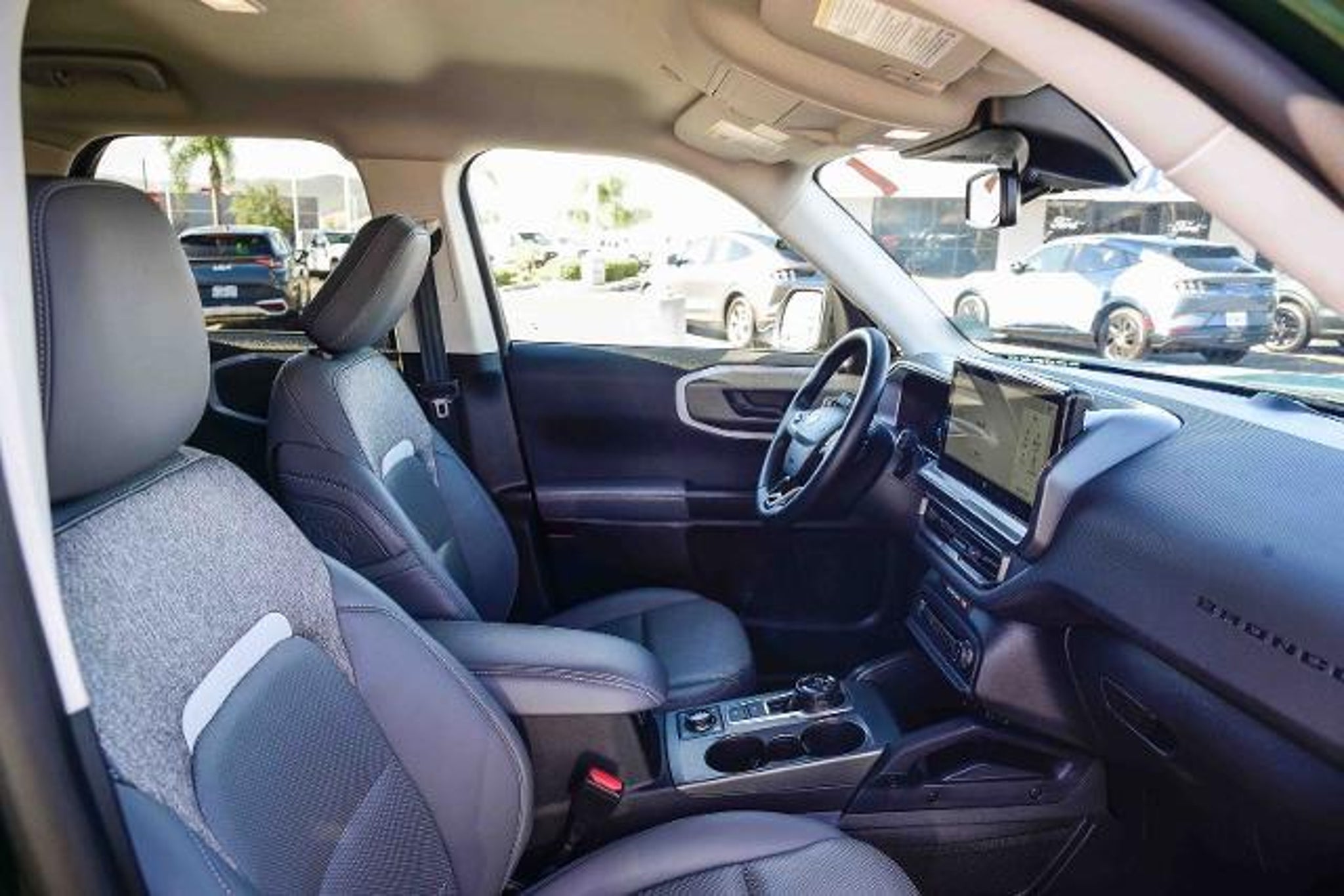 CARFAX One-Owner. Clean CARFAX. 21/27 City/Highway MPG Equipment Group 400A, 4-Wheel Disc Brakes, 6 Speakers, ABS brakes, Air Conditioning, Alloy wheels, AM/FM radio: SiriusXM, AM/FM Stereo, Auto High-beam Headlights, Auto-dimming Rear-View mirror, Automatic temperature control, Brake assist, Compass, Delay-off headlights, Driver door bin, Driver vanity mirror, Dual front impact airbags, Dual front side impact airbags, Electronic Stability Control, Emergency communication system: SYNC 4 911 Assist, Four wheel independent suspension, Front anti-roll bar, Front Bucket Seats, Front Center Armrest, Front fog lights, Front License Plate Bracket, Front reading lights, Fully automatic headlights, Garage door transmitter, Heated door mirrors, Heated front seats, Heated steering wheel, Illuminated entry, Knee airbag, Leather Trimmed Front Bucket Seats, Low tire pressure warning, Memory seat, Occupant sensing airbag, Outside temperature display, Overhead airbag, Overhead console, Panic alarm, Passenger door bin, Passenger vanity mirror, Power door mirrors, Power driver seat, Power passenger seat, Power steering, Power windows, Radio data system, Rear anti-roll bar, Rear reading lights, Rear seat center armrest, Rear window defroster, Rear window wiper, Remote keyless entry, Security system, SiriusXM, Speed control, Speed-sensing steering, Speed-Sensitive Wipers, Split folding rear seat, Steering wheel mounted audio controls, SYNC 4 w/Enhanced Voice Recognition, Tachometer, Telescoping steering wheel, Tilt steering wheel, Traction control, Trip computer, Variably intermittent wipers, and Wheels: 17 Matte Black-Painted Aluminum. Welcome to Gosch Ford Temecula Located in Temecula, CA, Gosch Ford Temecula is proud to be one of the premier dealerships in the area. From the moment you walk into our showroom, you'll know our commitment to Customer Service is second to none. We strive to make your experience with Gosch Ford Temecula a good one ? for the life of your vehicle. Whether you need to Purchase, Finance, or Service a New or Pre-Owned Ford, you?ve come to the right place. 2025 Ford Bronco Sport Badlands Green Metallic