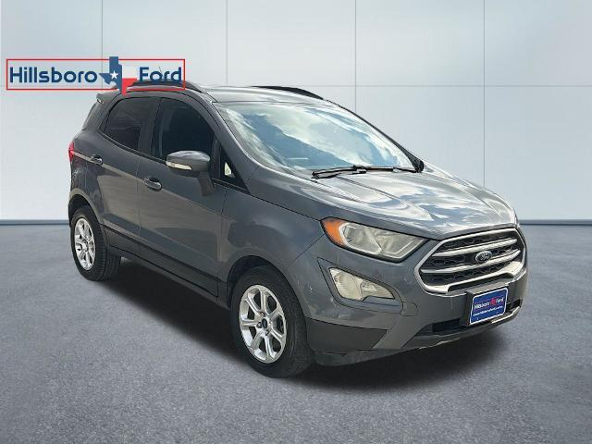 Hillsboro Ford is located 35 miles North of Waco, South of Waxahachie, and right off Interstate 35. Folks from Hillsboro, Whitney, West, Waco, Aquilla, Cleburne, Waxahachie, and Corsicana have been doing business with Hillsboro Ford for decades. Come see about the best customer service experience in Central Texas today. This 2019 Ford EcoSport SE offers an impressive array of features that make it an exceptional value. Highlights include: - Equipment Group 200A - SYNC 3 Communications & Entertainment System - Power moonroof - Rear Parking Sensors - Exterior Parking Camera Rear - Heated front seats - Unique Cloth Heated Front Bucket Seats The EcoSport's turbocharged 1.0L EcoBoost engine delivers an impressive 27 city/29 highway MPG, providing both power and efficiency. With its compact size and nimble handling, this SUV is perfect for navigating city streets and tight parking spaces, yet it still offers ample cargo space and passenger room for your everyday adventures. The sleek, modern exterior styling of the EcoSport turns heads wherever it goes, while the well-appointed interior provides a comfortable and tech-savvy driving experience. Enjoy the convenience of features like the SYNC 3 infotainment system with Apple CarPlay and Android Auto, as well as the available power moonroof that lets you soak in the sunshine. Safety is also a top priority, with a suite of advanced driver-assist technologies like the Rear Parking Sensors and Exterior Parking Camera Rear to help you maneuver with confidence. The EcoSport's strong unibody construction and comprehensive airbag system provide excellent protection for you and your passengers. Whether you're looking for a practical daily driver or a versatile weekend warrior, this 2019 Ford EcoSport SE has the features and capabilities to meet your needs. With its impressive fuel efficiency, modern amenities, and confident driving dynamics, this SUV is sure to impress. We invite you to experience the EcoSport for yourself. Visit Hillsboro Ford today and let our knowledgeable sales team demonstrate how this exceptional vehicle can enhance your driving experience. Vehicle may have an additional $1,495 in adds, see dealer and addendum for details.