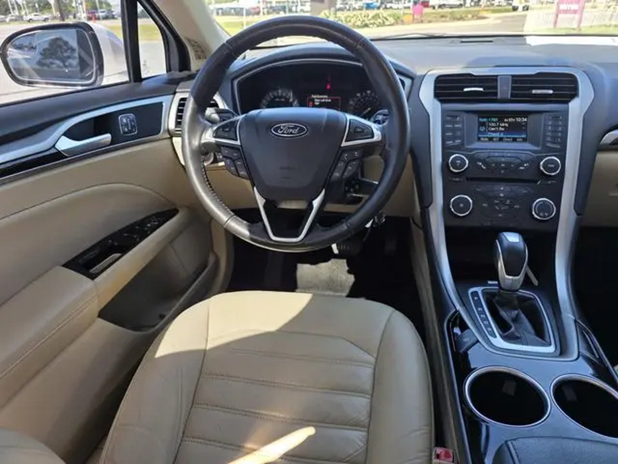 6-Speed Automatic, 17 Aluminum Wheels, 18 Premium Painted Luxury Wheels, 4-Wheel Disc Brakes, 6 Speakers, ABS brakes, Air Conditioning, Alloy wheels, AM/FM radio: SiriusXM, AM/FM Stereo w/MP3/CD Player, Brake assist, Bumpers: body-color, CD player, Cloth Front Bucket Seats, Compass, Delay-off headlights, Driver door bin, Driver vanity mirror, Dual front impact airbags, Dual front side impact airbags, Electrochromic Exterior Mirrors, Electrochromic Rear-View Mirror, Electronic Stability Control, Equipment Group 205B, Fog Lamps, Four wheel independent suspension, Front anti-roll bar, Front Bucket Seats, Front Center Armrest, Front License Plate Bracket, Front reading lights, Fully automatic headlights, Heated door mirrors, Heated Leather Front Bucket Seats, Illuminated entry, Knee airbag, Leather Wrapped Gearshift Knob, Leather-Wrapped Steering Wheel, Low tire pressure warning, Luxury Package, Occupant sensing airbag, Outside temperature display, Overhead airbag, Overhead console, Panic alarm, Passenger door bin, Passenger vanity mirror, Power door mirrors, Power driver seat, Power steering, Power windows, Radio data system, Rear anti-roll bar, Rear reading lights, Rear seat center armrest, Rear window defroster, Remote keyless entry, Security system, Speed control, Speed-sensing steering, Speed-Sensitive Wipers, Split folding rear seat, Steering wheel mounted audio controls, Tachometer, Telescoping steering wheel, Tilt steering wheel, Traction control, Trip computer, Turn signal indicator mirrors, Variably intermittent wipers, 6-Speed Automatic. 22/33 City/Highway MPG Odometer is 33040 miles below market average! Reviews: * Whether you want a midsize sedan that's value-oriented, engaging to drive, or boasts the highest fuel economy in its class, there is probably a version of the 2013 Fusion that fits your requirements. Source: KBB.com * Fuel-efficient turbocharged engines; sharp handling; composed ride; quiet cabin; advanced technology and safety features; eye-catching styling; available all-wheel drive. Source: Edmunds Awards: * Ward's 10 Best Engines * 2013 KBB.com 10 Best New Sedans Under $25,000 * 2013 KBB.com 10 Best Family Cars * 2013 KBB.com Best Resale Value Awards * Green Car Journal 2013 Green Car of the Year * 2013 KBB.com Brand Image Awards Based on 2017 EPA mileage ratings. Use for comparison purposes only. Your mileage will vary depending on how you drive and maintain your vehicle, driving conditions and other factors.