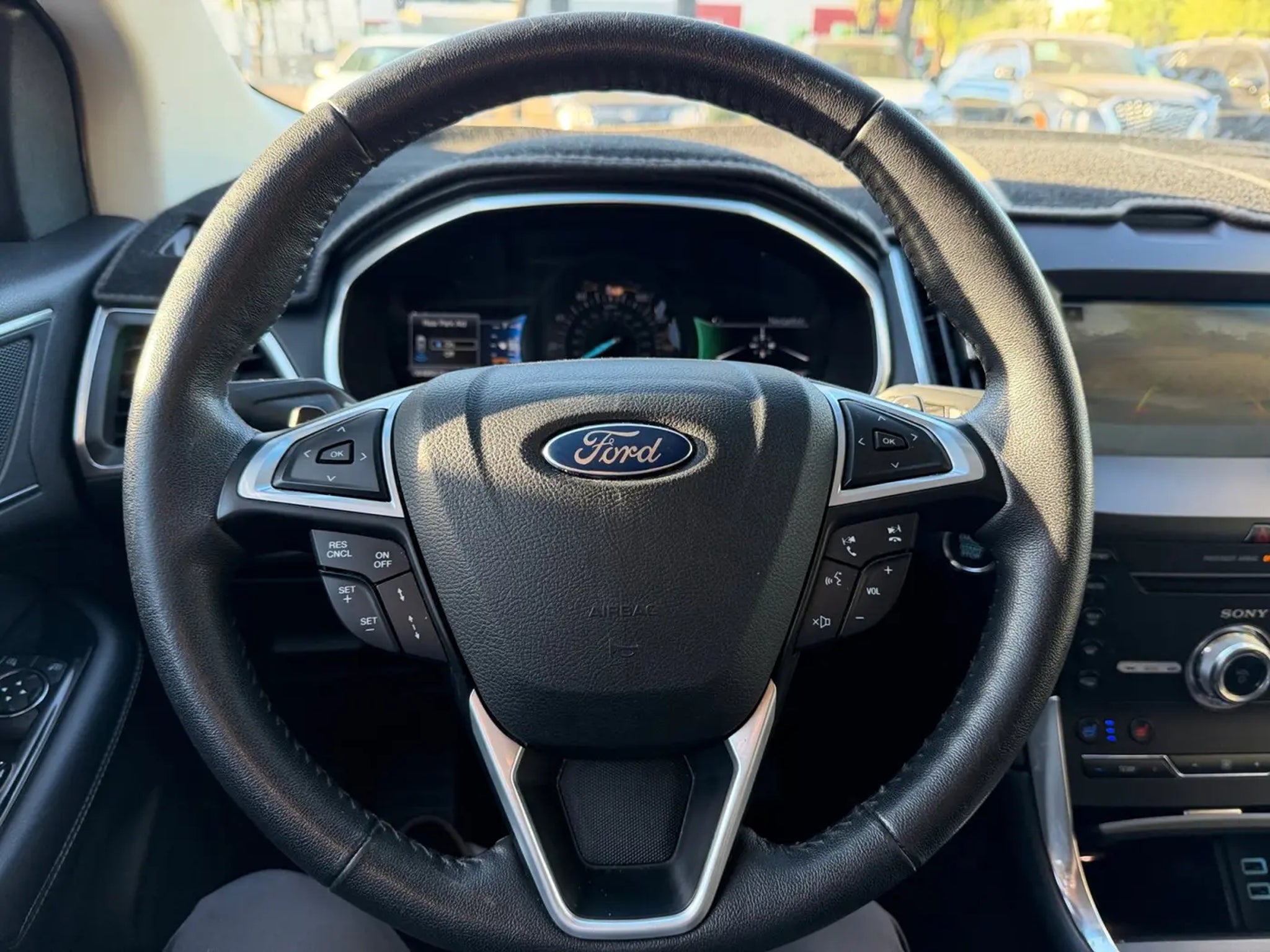 This 2017 Ingot Silver Ford Edge Titanium FWD is well equipped and includes these features and benefits: Cargo Accessory Package (Cargo Mat, Rear Bumper Protector, and Retractable Cargo Area Cover), Driver's Package (Adaptive Cruise Control & Fwd Collision Warning, Adaptive Steering, and Power Tilt/Telescoping Steering Column w/Memory), Equipment Group 301A (Heated Rear-Seats, Panoramic Vista Roof, and Perforated Leather Trimmed Heated/Cooled Buckets), Technology Package (110V/400W AC Power Outlet, Auto-Dimming Driver's Sideview Mirror, BLIS Blind Spot Information System, Radio: AM/FM Stereo w/Single CD/Navigation, Remote Start System, SiriusXM Radio, and SiriusXM Traffic & Travel Link), 12 Speakers, 4-Wheel Disc Brakes, ABS brakes, Air Conditioning, Alloy wheels, AM/FM radio: SiriusXM, AM/FM Stereo w/Single CD Player, Auto-dimming Rear-View mirror, Automatic temperature control, Axle Ratio: TBD, Brake assist, Bumpers: body-color, CD player, Compass, Delay-off headlights, Driver door bin, Driver vanity mirror, Dual front impact airbags, Dual front side impact airbags, Electronic Stability Control, Emergency communication system: SYNC 3 911 Assist, Exterior Parking Camera Rear, Four wheel independent suspension, Front anti-roll bar, Front Bucket Seats, Front Center Armrest w/Storage, Front dual zone A/C, Front License Plate Bracket, Front reading lights, Fully automatic headlights, Garage door transmitter, Heated door mirrors, Heated front seats, Illuminated entry, Knee airbag, Leather Shift Knob, Leather-Trimmed Heated Sport Bucket Seats, Low tire pressure warning, Memory seat, Occupant sensing airbag, Outside temperature display, Overhead airbag, Overhead console, Panic alarm, Passenger door bin, Passenger vanity mirror, Power door mirrors, Power driver seat, Power Liftgate, Power passenger seat, Power steering, Power windows, Premium audio system: Sony, Rear anti-roll bar, Rear Parking Sensors, Rear reading lights, Rear seat center armrest, Rear window defroster, Rear window wiper, Remote keyless entry, Security system, Speed control, Speed-Sensitive Wipers, Split folding rear seat, Spoiler, Steering wheel mounted audio controls, SYNC 3, Tachometer, Telescoping steering wheel, Tilt steering wheel, Traction control, Trip computer, Turn signal indicator mirrors, Variably intermittent wipers, and Wheels: 19 Nickel-Painted Aluminum. 110V/400W AC Power Outlet, 12 Speakers, 4-Wheel Disc Brakes, ABS brakes, Adaptive Cruise Control & Fwd Collision Warning, Adaptive Steering, Air Conditioning, Alloy wheels, AM/FM radio: SiriusXM, AM/FM Stereo w/Single CD Player, Auto-Dimming Driver's Sideview Mirror, Auto-dimming Rear-View mirror, Automatic temperature control, Axle Ratio: TBD, BLIS Blind Spot Information System, Brake assist, Bumpers: body-color, Cargo Accessory Package, Cargo Mat, CD player, Compass, Delay-off headlights, Driver door bin, Driver vanity mirror, Driver's Package, Dual front impact airbags, Dual front side impact airbags, Electronic Stability Control, Emergency communication system: SYNC 3 911 Assist, Equipment Group 301A, Exterior Parking Camera Rear, Four wheel independent suspension, Front anti-roll bar, Front Bucket Seats, Front Center Armrest w/Storage, Front dual zone A/C, Front License Plate Bracket, Front reading lights, Fully automatic headlights, Garage door transmitter, Heated door mirrors, Heated front seats, Heated Rear-Seats, Illuminated entry, Knee airbag, Leather Shift Knob, Leather-Trimmed Heated Sport Bucket Seats, Low tire pressure warning, Memory seat, Occupant sensing airbag, Outside temperature display, Overhead airbag, Overhead console, Panic alarm, Panoramic Vista Roof, Passenger door bin, Passenger vanity mirror, Perforated Leather Trimmed Heated/Cooled Buckets, Power door mirrors, Power driver seat, Power Liftgate, Power passenger seat, Power steering, Power Tilt/Telescoping Steering Column w/Memory, Power windows, Premium audio system: Sony, Radio: AM/FM Stereo w/Single CD/Navigation, Rear