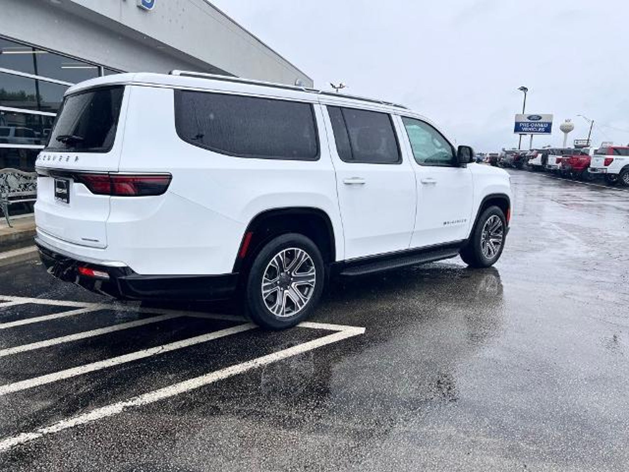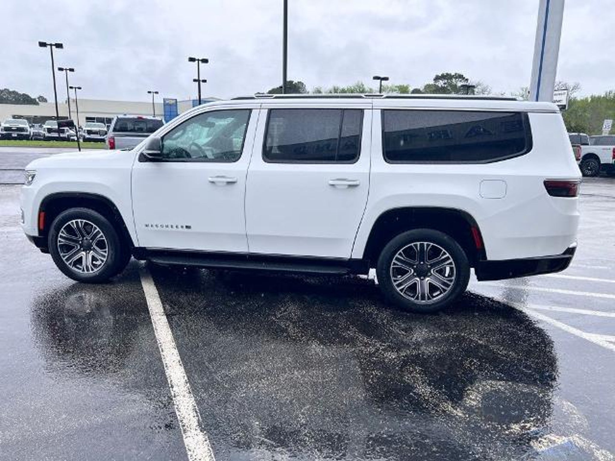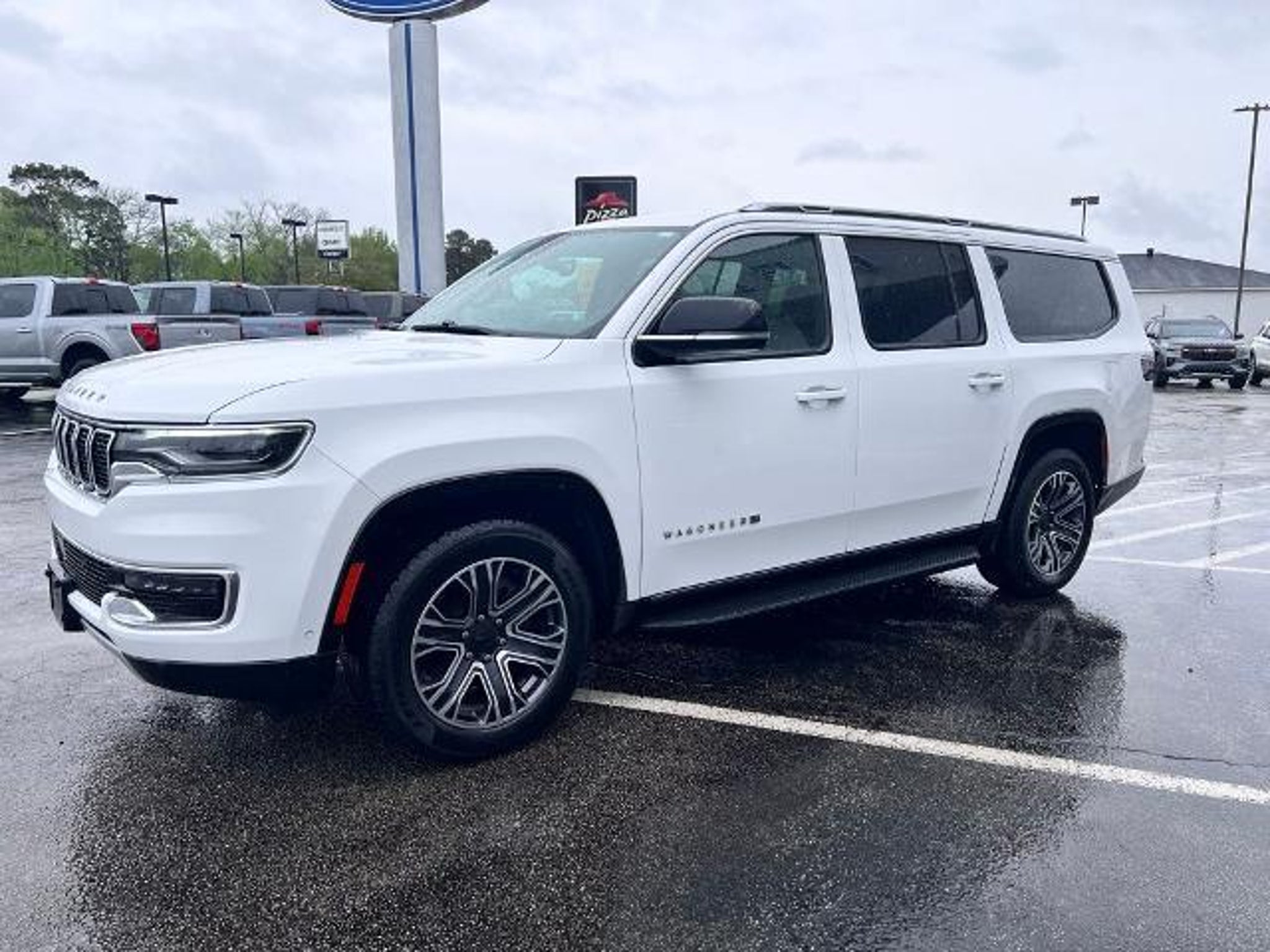 This 2024 Jeep Wagoneer L Series II in Bright White Clearcoat comes with the following features: 3.0L I6 8-Speed Automatic RWD Quick Order Package 25J, 10 Speakers, 3.55 Rear Axle Ratio, 3rd row seats: bench, 4-Wheel Disc Brakes, ABS brakes, Adjustable pedals, Air Conditioning, Alloy wheels, AM/FM radio: SiriusXM with 360L, Anti-whiplash front head restraints, Apple CarPlay/Android Auto, Audio memory, Auto-dimming door mirrors, Auto-dimming Rear-View mirror, Auto-leveling suspension, Automatic temperature control, Brake assist, Bumpers: body-color, Compass, Delay-off headlights, Driver door bin, Driver vanity mirror, Driver's Seat Mounted Armrest, Dual front impact airbags, Dual front side impact airbags, Electronic Stability Control, Emergency communication system: Wagoneer Connect, Exterior Parking Camera Rear, Four wheel independent suspension, Front anti-roll bar, Front Bucket Seats, Front Center Armrest w/Storage, Front dual zone A/C, Front fog lights, Front reading lights, Fully automatic headlights, Garage door transmitter, Genuine wood console insert, Genuine wood dashboard insert, Genuine wood door panel insert, Heated door mirrors, Heated front seats, Heated steering wheel, Illuminated entry, Knee airbag, Leather Trimmed Bucket Seats, Low tire pressure warning, Memory seat, Navigation System, Normal Duty Suspension, Occupant sensing airbag, Outside temperature display, Overhead airbag, Overhead console, Panic alarm, Passenger door bin, Passenger seat mounted armrest, Passenger vanity mirror, Pedal memory, Power adjustable front head restraints, Power door mirrors, Power driver seat, Power Liftgate, Power passenger seat, Power steering, Power windows, Radio data system, Radio: Uconnect 5 Nav w/10.1 Display, Rain sensing wipers, Rear air conditioning, Rear anti-roll bar, Rear reading lights, Rear seat center armrest, Rear window defroster, Rear window wiper, Reclining 3rd row seat, Remote keyless entry, Security system, Speed control, Speed-sensing steering, Speed-Sensitive Wipers, Split folding rear seat, Steering wheel memory, Steering wheel mounted audio controls, Tachometer, Telescoping steering wheel, Tilt steering wheel, Traction control, Trip computer, Turn signal indicator mirrors, Variably intermittent wipers, Ventilated front seats, Voltmeter, and Wheels: 20 x 9.0 Premium 2 Aluminum. Recent Arrival! Odometer is 10471 miles below market average! CARFAX One-Owner. Clean CARFAX.