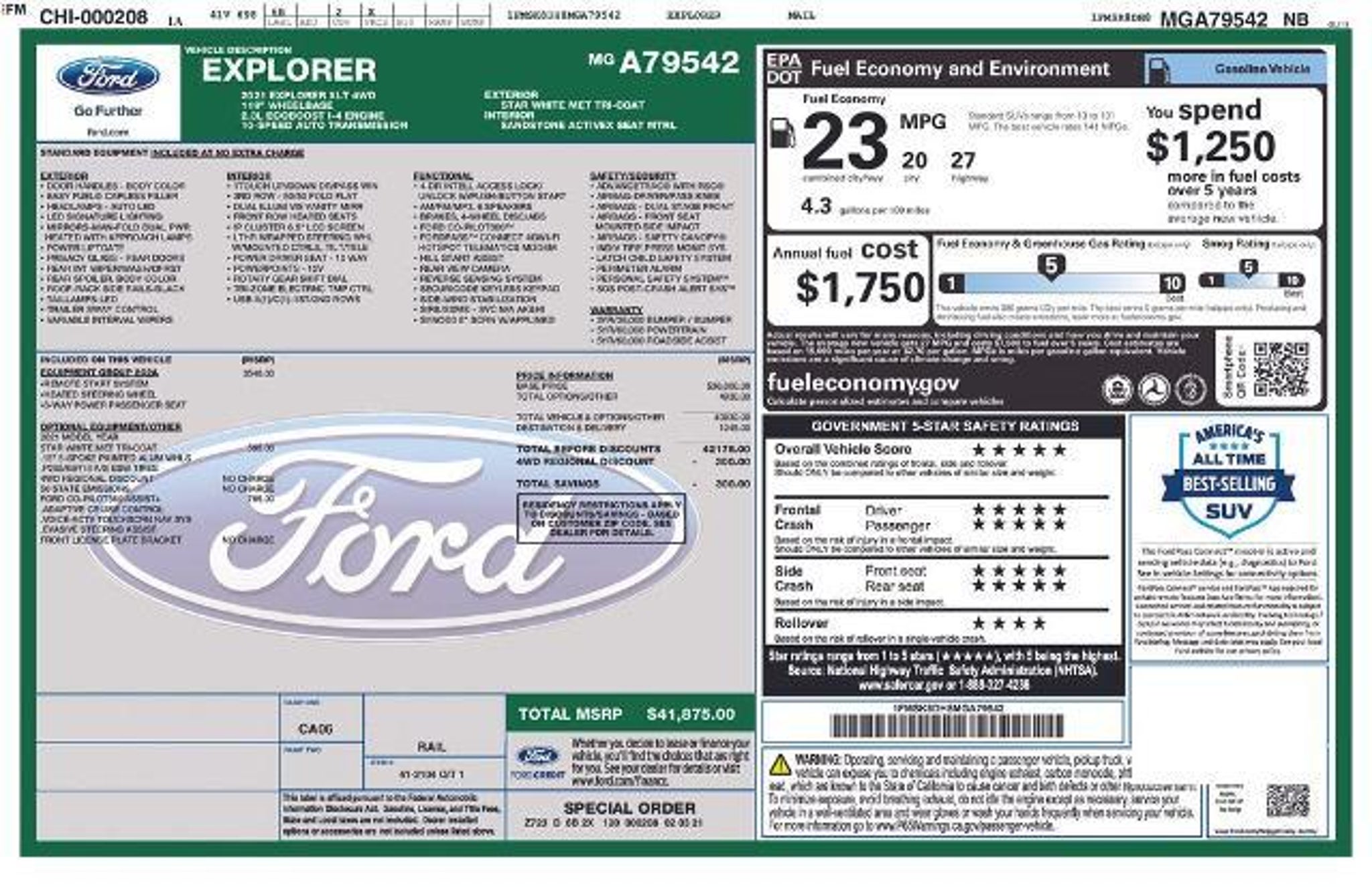 **ONE OWNER** **CLEAN AUTOCHECK HISTORY REPORT** **FORD CO-PILOT360 ASSIST PLUS** **202A EQUIPMENT GROUP** **NAVIGATION** **ADAPTIVE CRUISE CONTROL** **HEATED SEATS & STEERING WHEEL** **REMOTE START** **POWER LIFTGATE** **18 5-SPOKE ALUMINUM WHEELS**