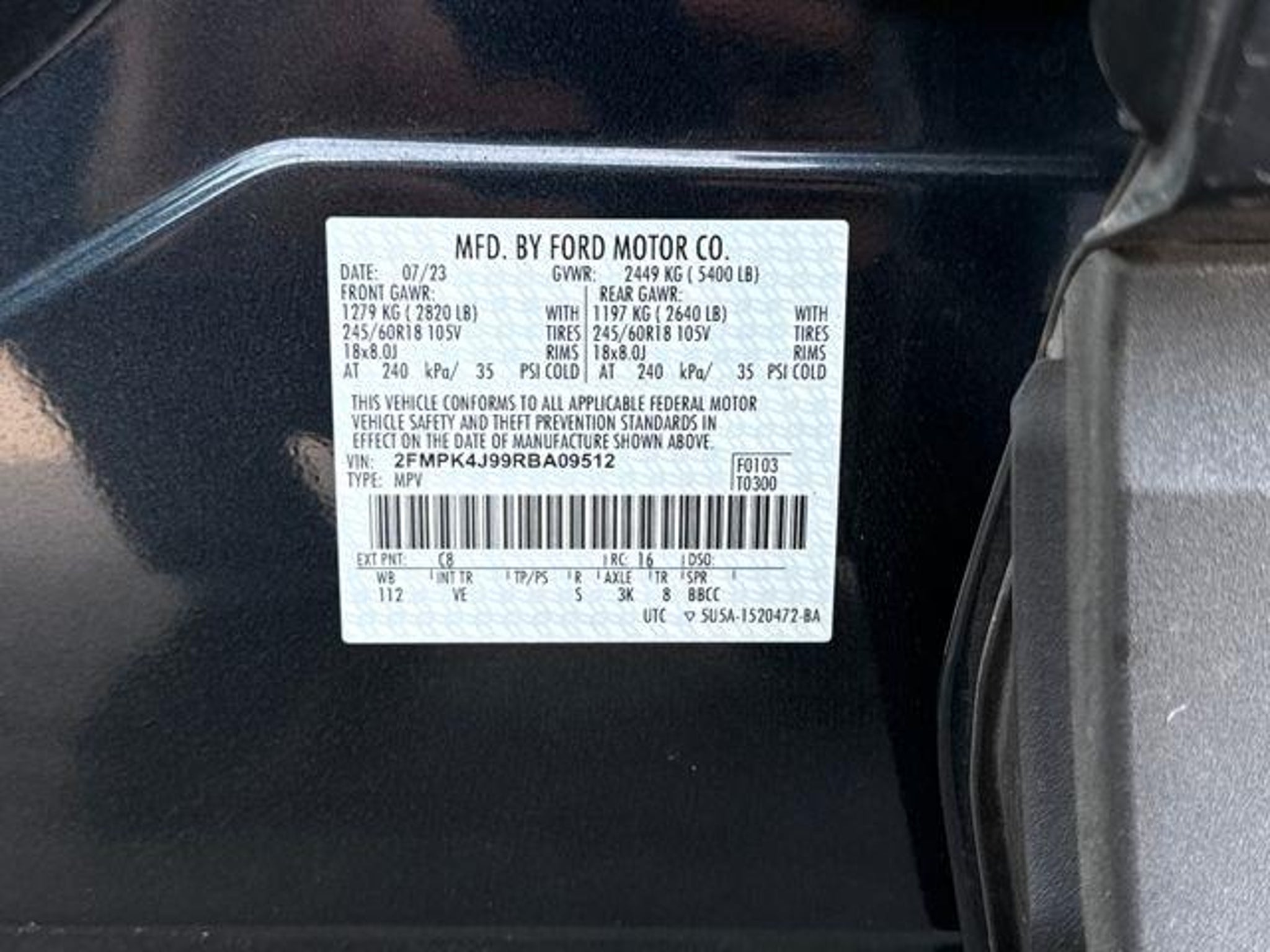 VIN 2FMPK4J99RBA09512