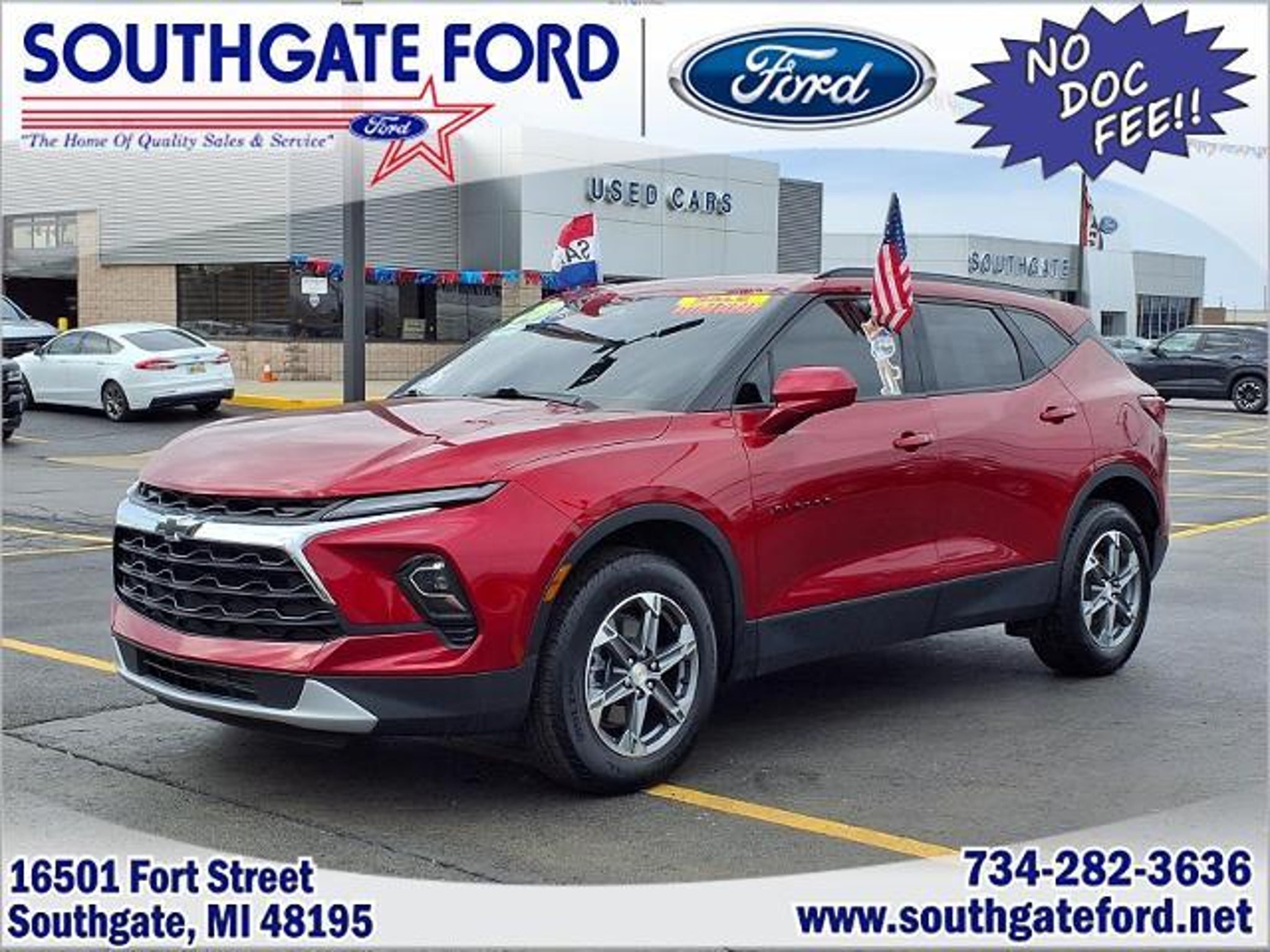 Details > 2023 Chevrolet Blazer LT 4DR SUV W/2LT For Sale in Southgate, MI Private Party Sellers Click here to place your ad now! You auta tell them you saw the ad in AutaBuy when you call or email. 1/28 2/28 3/28 4/28 5/28 6/28 7/28 8/28 9/28 10/28 11/28 12/28 13/28 14/28 15/28 16/28 17/28 18/28 19/28 20/28 21/28 22/28 23/28 24/28 25/28 26/28 27/28 28/28 View 28 Photos View All Add to My Garage Parked in Your Garage! Southgate Ford Contact Seller: I would like to: Make Offer Check Availability Ask A Question Request More Photos Check Financing Options Send a copy of this message to me Add this listing to my garage Send to Mobile Mileage 19,211 Exterior Color Radiant Red Interior Color Jet Black Doors 4 Engine 2.0L I4 Transmission 9 Speed Auto Stock # 48345 VIN 3GNKBCR46PS189614 Estimated Monthly Payment $444 mo Apply Now J.J. Best Banc & Co. 2023 Chevrolet Blazer LT 4DR SUV W/2LT Description: · Mileage: 19,211 · Color: Radiant Red Price: $25,495. Mileage 19,211 Exterior Color Radiant Red Interior Color Jet Black Doors 4 Engine 2.0L I4 Transmission 9 Speed Auto Stock # 48345 VIN 3GNKBCR46PS189614 Estimated Monthly Payment $444 mo Apply Now J.J. Best Banc & Co. Add to My Garage Parked in Your Garage! Message Seller Southgate Ford Contact Seller: I would like to: Make Offer Check Availability Ask A Question Request More Photos Check Financing Options Send a copy of this message to me Add this listing to my garage Offered for sale by Southgate Ford SOUTHGATE, MI Price: $25,495. Offered for sale by Southgate Ford SOUTHGATE, MI [entire inventory] Ask Auta Intelligence The first collector-car AI built directly into a classic car marketplace What trim levels were available for this model? How many Blazers were produced in Red? How many passengers can this seat comfortably? What safety features does this model offer? How many of these were produced? What transmission options did these offer? What does this VIN number tell me? What engine options did these come with? When was this model first introduced? How far is this from me? Tell me about this model What colors did these come in? Can you show me more suvs for a similar price? What kind of mileage do these get? What factory options were available on this model? Where is this located? How easy are parts to find for this model? Do you have a similar car to sell? List It Now! Questions about this car? Ask Auta Intelligence for production numbers, available options, etc. · Subscribe to AutaBuy! · Send a Gift Subscription Notice to a Friend