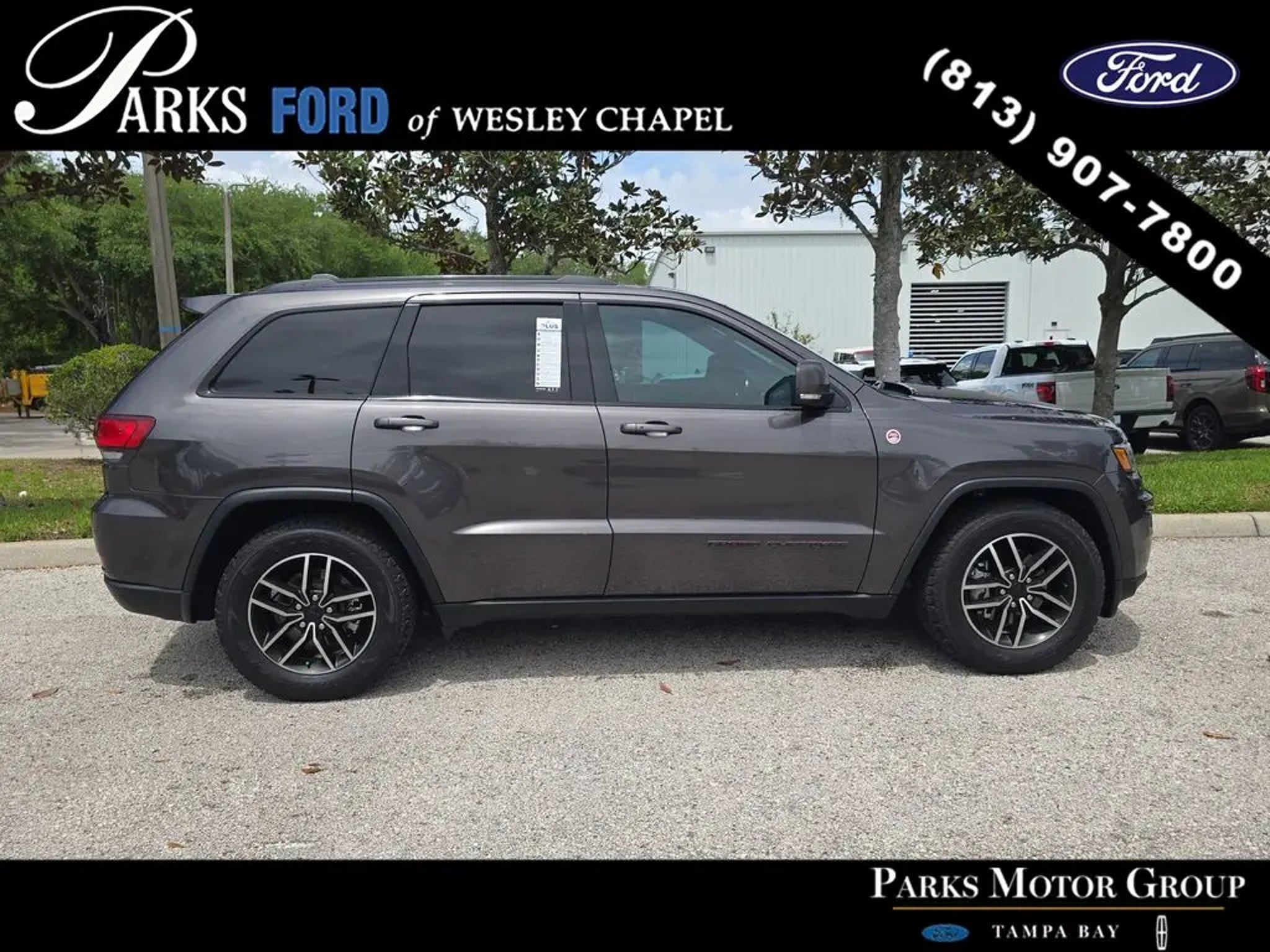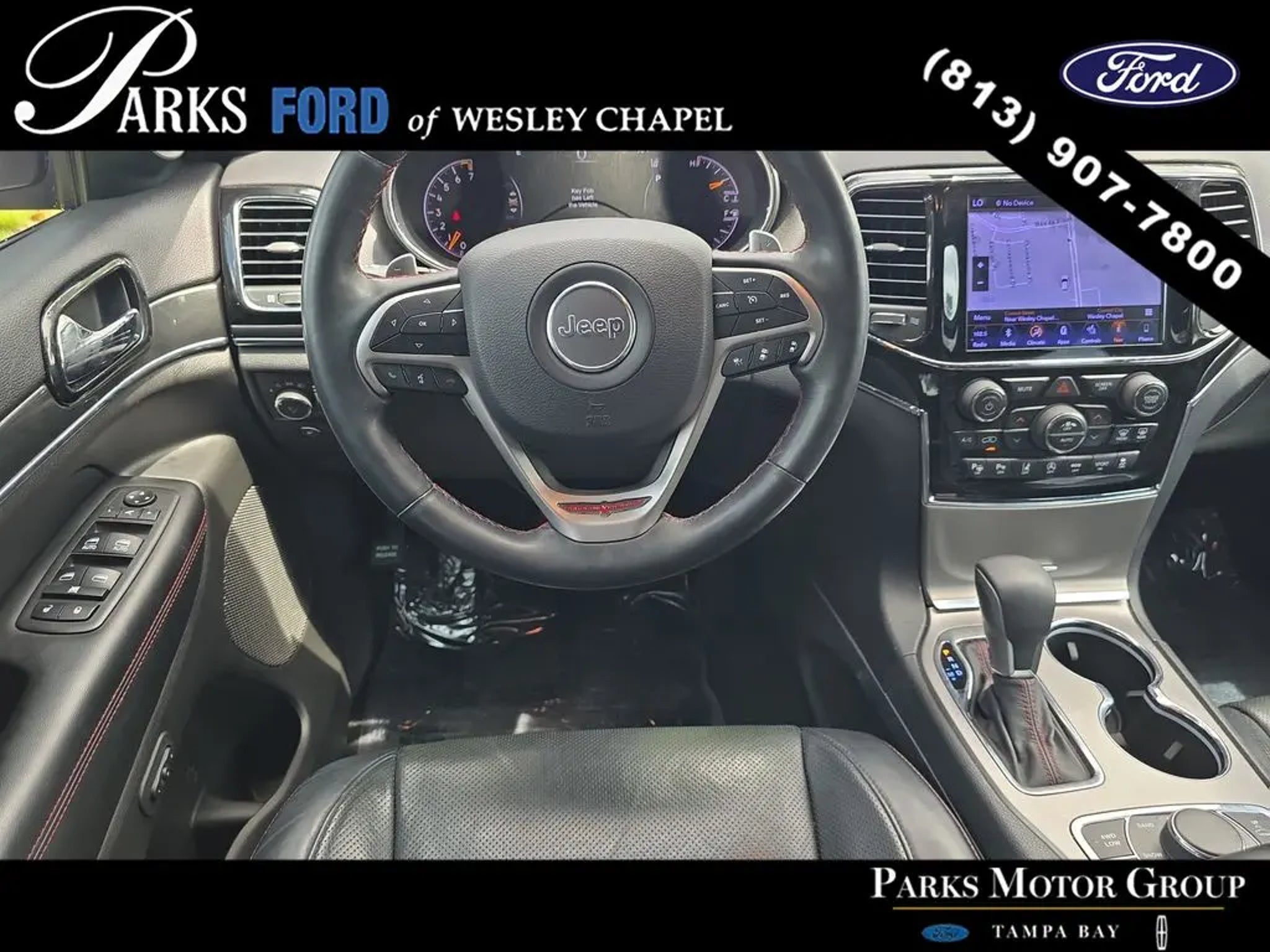 Rugged off-road capability, premium comfort, and proven Jeep performance come together in this 2019 Jeep Grand Cherokee Trailhawk 4x4 finished in Granite Crystal Metallic with a Black and Ruby Red leather interior. With 82,732 miles and Ford Blue Certified status, this highly capable SUV delivers advanced 4x4 systems, upscale features, and the versatility to handle both daily driving and serious off-road conditions. Under the hood is the 3.6L V6 engine paired with an 8-speed automatic transmission. This powertrain delivers strong, reliable performance with smooth shifting and solid capability, making it ideal for commuting, road trips, and off-road adventures throughout the Tampa Bay area. This Trailhawk stands out with Jeep's advanced off-road technology. The Quadra-Drive II 4x4 system, Quadra-Lift air suspension, Selec-Terrain system, electronic limited-slip differential, and Selec-Speed control work together to provide exceptional traction and control across a wide range of terrain"”from pavement to mud, sand, and rocky trails. The exterior reflects its off-road-focused design with 18-inch off-road wheels, all-terrain tires, signature red tow hooks, skid plates, LED taillamps, and a distinctive hood decal. These features are built not just for looks, but for real-world durability and capability. Inside, the cabin blends rugged functionality with premium comfort. Leather-trimmed seating with perforations, heated and ventilated front seats, heated second-row seats, and a heated steering wheel create a comfortable environment for all passengers. The spacious interior and flexible cargo area make it easy to adapt for passengers, gear, or both. Technology is a major highlight with the Uconnect 4C NAV system featuring an 8.4-inch touchscreen, Apple CarPlay and Android Auto compatibility, built-in navigation, a premium audio system, and a Wi-Fi hotspot capability, keeping you connected on every drive. This model is also equipped with the Trailhawk Luxury Group and Advanced Active Safety Group, adding features like a dual-pane panoramic sunroof, adaptive cruise control, forward collision warning, lane departure warning, automatic high beams, and park assist, enhancing both comfort and safety. Safety features include blind spot monitoring, rear cross-path detection, ParkView rear backup camera, ParkSense rear park assist, multiple airbags, and advanced stability control systems, helping provide confidence in a variety of driving conditions. This Grand Cherokee Trailhawk is built for drivers who want more than just an SUV. It delivers real off-road capability, premium interior features, and everyday usability in one highly capable package. As a Ford Blue Certified vehicle, this Grand Cherokee has passed a comprehensive multi-point inspection and includes limited warranty coverage and roadside assistance backed by Ford's nationwide dealer network. Every vehicle at Parks Ford also includes the Parks Plus program. From protective coatings for your paint, headlights and interior surfaces to anti-theft VIN etching, on demand roadside assistance, ID theft protection and restoration, $2,500 stolen vehicle assistance and collision loyalty credit, cabin sanitizer and antimicrobial protectant, and a Nationwide Lifetime Warranty, Parks Plus delivers long-term value and peace of mind. If you're searching for a capable and well-equipped SUV in the Tampa Bay area"”including Wesley Chapel, Tampa, Land O' Lakes, Brandon, Clearwater, and St. Petersburg"”this Jeep Grand Cherokee Trailhawk delivers off-road performance, comfort, and versatility in one standout package.