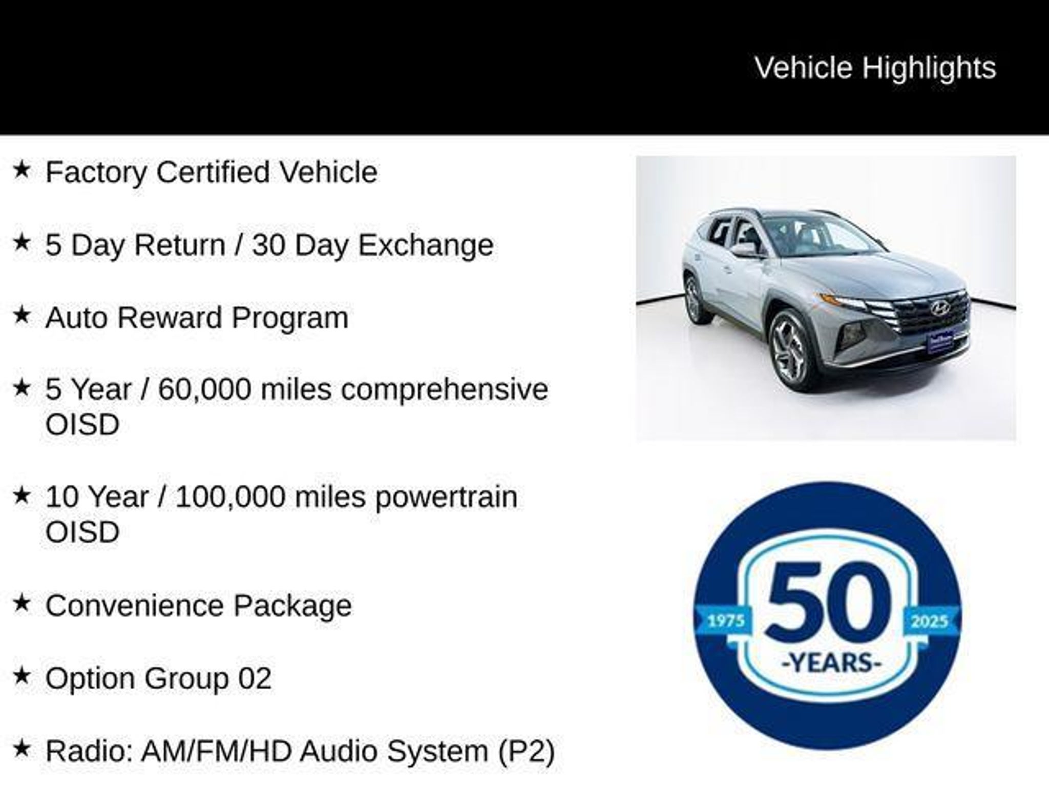 Details > 2024 Hyundai Tucson AWD SEL 4DR SUV For Sale in Langhorne, PA Private Party Sellers Click here to place your ad now! You auta tell them you saw the ad in AutaBuy when you call or email. 1/27 2/27 3/27 4/27 5/27 6/27 7/27 8/27 9/27 10/27 11/27 12/27 13/27 14/27 15/27 16/27 17/27 18/27 19/27 20/27 21/27 22/27 23/27 24/27 25/27 26/27 27/27 View 27 Photos View All Add to My Garage Parked in Your Garage! Fred Beans Hyundai of Langhorne Contact Seller: I would like to: Make Offer Check Availability Ask A Question Request More Photos Check Financing Options Send a copy of this message to me Add this listing to my garage Send to Mobile Mileage 17,929 Exterior Color Hampton Gray Interior Color Black Doors 4 Engine 2.5L I4 Transmission 8 Speed Auto Stock # HL6086R VIN 5NMJFCDE6RH369663 Estimated Monthly Payment $440 mo Apply Now J.J. Best Banc & Co. 2024 Hyundai Tucson AWD SEL 4DR SUV Description: Fred Beans Hyundai of Langhorne · Mileage: 17,929 · Color: Hampton Gray Price: $25,314. Mileage 17,929 Exterior Color Hampton Gray Interior Color Black Doors 4 Engine 2.5L I4 Transmission 8 Speed Auto Stock # HL6086R VIN 5NMJFCDE6RH369663 Estimated Monthly Payment $440 mo Apply Now J.J. Best Banc & Co. Add to My Garage Parked in Your Garage! Message Seller Fred Beans Hyundai of Langhorne Contact Seller: I would like to: Make Offer Check Availability Ask A Question Request More Photos Check Financing Options Send a copy of this message to me Add this listing to my garage Offered for sale by Fred Beans Hyundai of Langhorne LANGHORNE, PA Price: $25,314. Offered for sale by Fred Beans Hyundai of Langhorne LANGHORNE, PA [entire inventory] Ask Auta Intelligence The first collector-car AI built directly into a classic car marketplace What engine options did these come with? How many passengers can this seat comfortably? When was this model first introduced? How many Tucsons were produced in Gray? How far is this from me? What transmission options did these offer? What colors did these come in? What does this VIN number tell me? What kind of mileage do these get? Tell me the history on this model Can you show me more suvs for a similar price? Where is this located? What safety features does this model offer? What trim levels were available for this model? How many of these were produced? What factory options were available on this model? How easy are parts to find for this model? Do you have a similar car to sell? List It Now! Questions about this car? Ask Auta Intelligence for production numbers, available options, etc. · Subscribe to AutaBuy! · Send a Gift Subscription Notice to a Friend