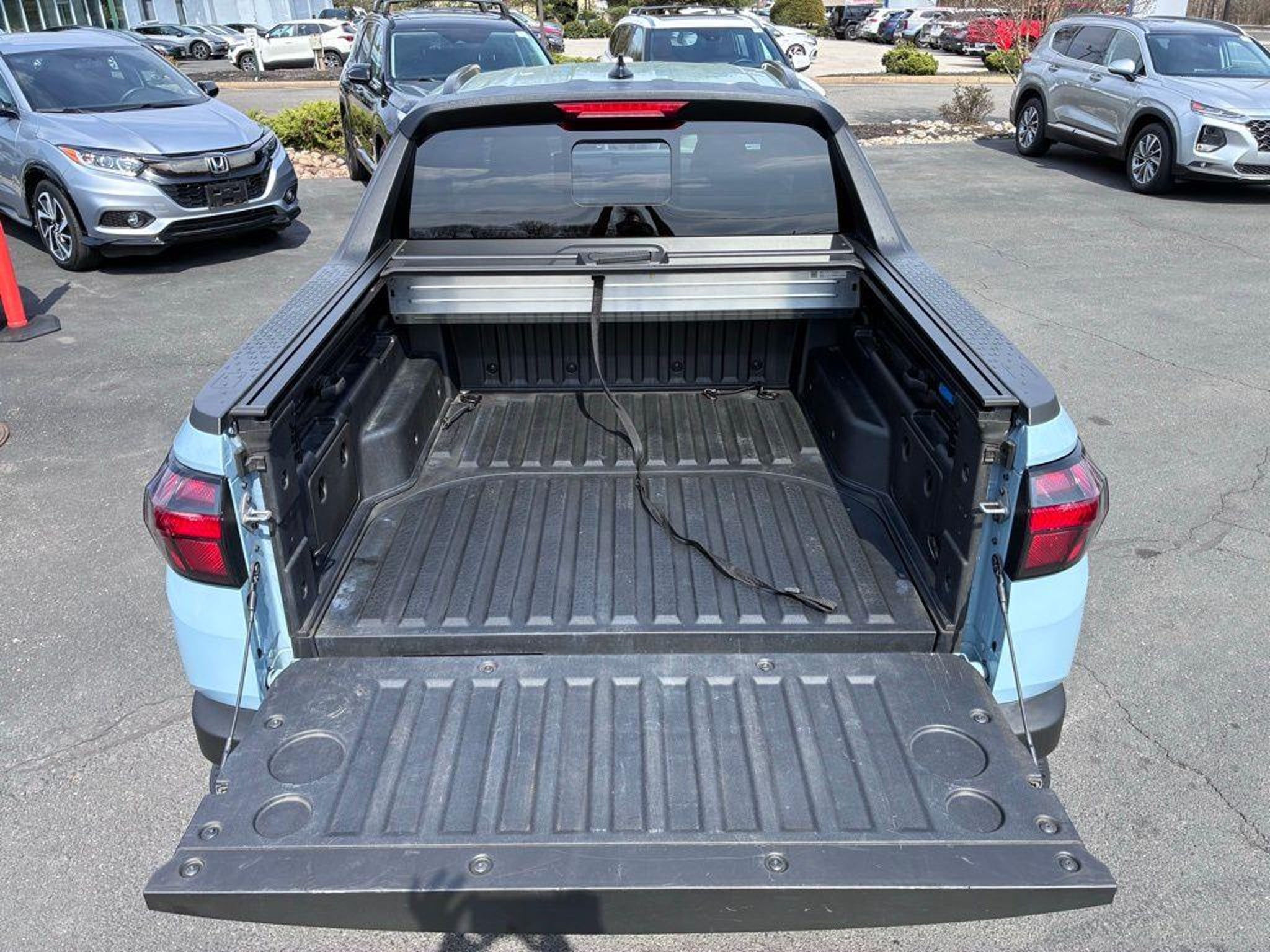 Discover the perfect blend of utility and style with the 2024 Hyundai Santa Cruz SEL. This versatile and well-equipped crossover utility vehicle is designed to elevate your driving experience, whether you're tackling the daily commute or embarking on your next adventure. - Activity Package: Includes Roof Side Rails, Rear Sliding Glass Window with Defroster, LED Bed Lighting, 115V AC Power Inverter in Bed, 15W Wireless Phone Charging, Conventional Power Sunroof, LED Front & Rear Interior Lights, Integrated Tonneau Cover, and more. - Sliding Bed Divider - Camera Mount - Fender Flares - 10.25 Digital Instrument Cluster - Apple CarPlay & Android Auto - Carpeted Floor Mats Powered by a 2.5L I4 engine and equipped with an 8-Speed Automatic transmission with SHIFTRONIC and all-wheel drive, the Santa Cruz SEL delivers a responsive and confident driving experience. With an EPA-estimated 21 MPG in the city and 25 MPG on the highway, this crossover utility vehicle offers impressive fuel efficiency to keep you on the road longer. The Santa Cruz SEL's striking exterior design is enhanced by the Activity Package, which includes Roof Side Rails, Rear Sliding Glass Window with Defroster, and an Integrated Tonneau Cover, providing both style and functionality. Inside, the spacious cabin features a 10.25 Digital Instrument Cluster, Apple CarPlay and Android Auto integration, and premium Stain & Odor Resistant Cloth Seat Trim, ensuring your comfort and convenience. Safety is a top priority in the Santa Cruz SEL, with features like Automatic Emergency Braking, Lane Keeping Assist, and a Rearview Camera with Dynamic Parking Guidelines to help keep you and your passengers secure on the road. Whether you're tackling your daily commute, hauling gear for your next outdoor adventure, or simply enjoying the open road, the 2024 Hyundai Santa Cruz SEL is the perfect companion. Experience the perfect blend of utility, technology, and style "“ visit our showroom today to take this remarkable crossover utility vehicle for a test drive.