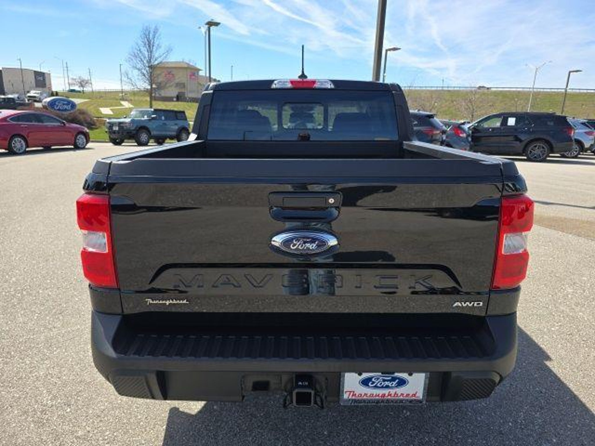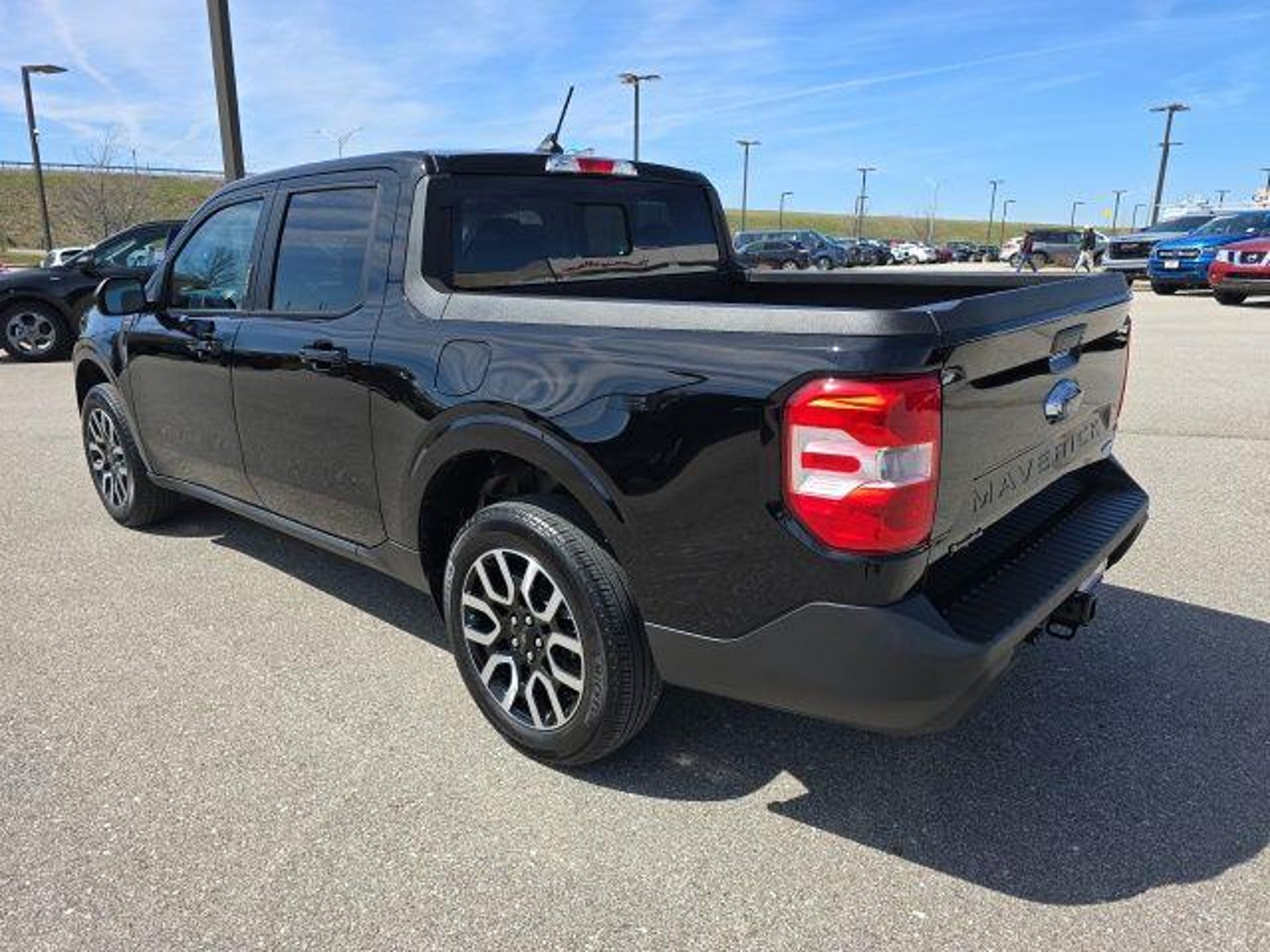 Shadow Black 2023 Ford Maverick Lariat AWD 8-Speed Automatic EcoBoost 2.0L I4 GTDi DOHC Turbocharged VCT 4-Way Front Headrest, 400W Inverter w/USB Console Rear, Bed Tie Down Locking Rails, BLIS Blind Spot Info System w/Cross-Traffic Alert, Electronic Brake Boost, Ford Co-Pilot360, Heated Mirror, Heated Seats, Heated Steering Wheel, Lane Centering, Lane-Keeping System, Lariat Luxury Package, LED Box Lighting, Power Moonroof, Radio: B&O Sound System by Bang & Olufsen, SiriusXM Radio, SYNC 3 Communications & Entertainment System, Trailer Hitch Receiver w/4-Pin Connector, Voice-Activated Touchscreen Navigation System, Windshield Wiper De-Icer, Wireless Charging Pad. Odometer is 15870 miles below market average! 22/28 City/Highway MPG