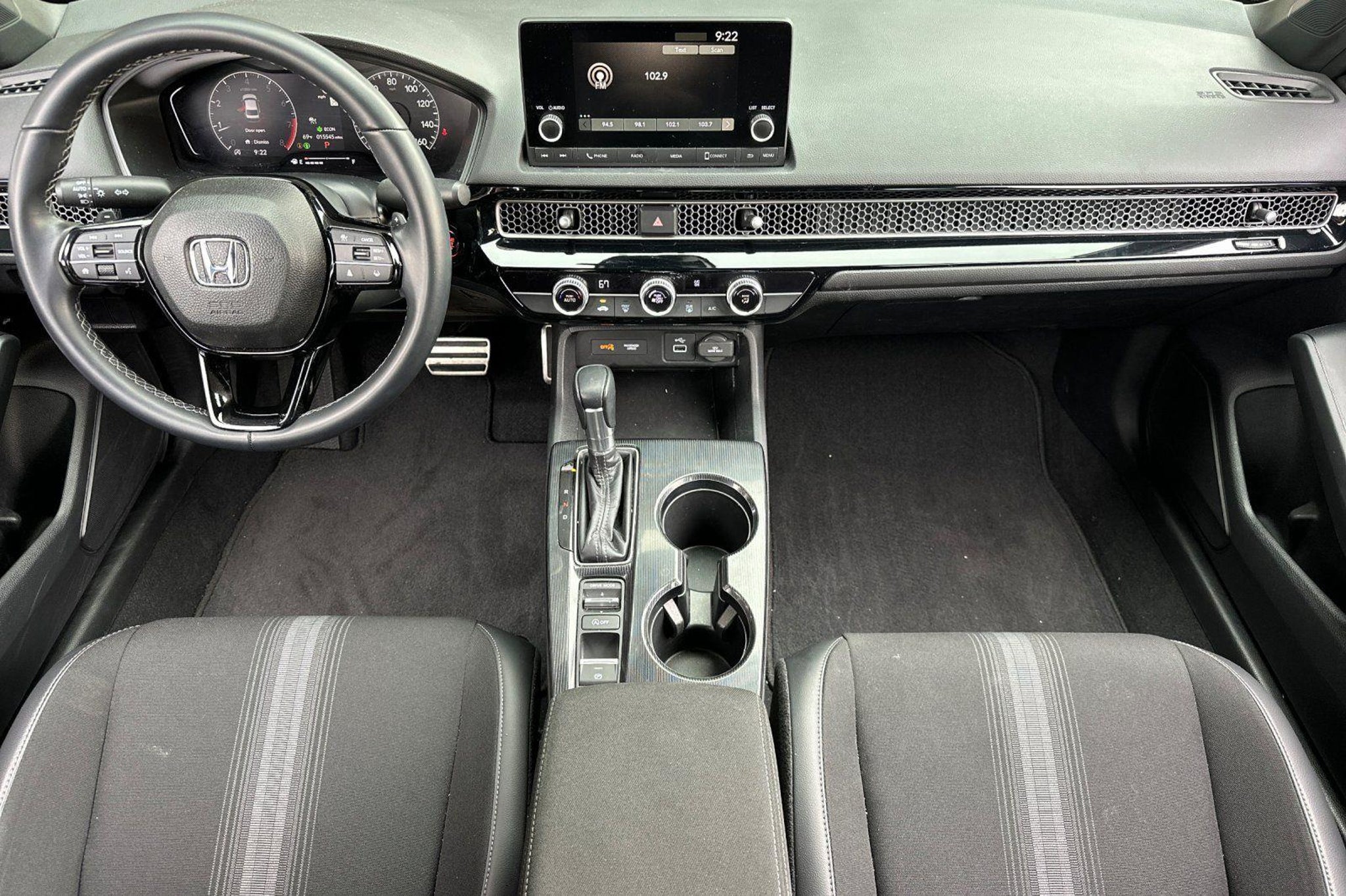 Discover the exceptional 2022 Honda Civic Sport, a testament to Honda's commitment to engineering excellence. This captivating sedan boasts a striking Gray exterior, complemented by a refined and well-appointed interior that exudes style and sophistication. Highlighted by a - 2.0L I4 DOHC 16V i-VTEC engine, this Civic Sport delivers a thrilling driving experience with its responsive acceleration and impressive fuel efficiency, achieving an EPA-estimated 30 city/37 highway MPG. Elevate your commute with features such as: - Adaptive Cruise Control: Adaptive Cruise Control (ACC) with Low-Speed Follow - Collision Mitigation Braking System (CMBS) FCW mitigation - Apple CarPlay/Android Auto - Leather-Wrapped Steering Wheel and Shift Knob - Automatic Climate Control - Power Windows and Keyless Entry Designed with your safety in mind, the 2022 Civic Sport comes equipped with a comprehensive suite of advanced safety technologies, including Airbags, Anti-Lock Brakes, and Electronic Stability Control, ensuring you and your loved ones can travel with confidence. Boasting a spacious and well-appointed cabin, this Civic Sport offers ample room for passengers and cargo, making it the perfect companion for your daily adventures or weekend getaways. The 18' Gloss Black Alloy wheels add a touch of sophistication, while the premium sound system with 8 speakers provides an immersive audio experience. Whether you're seeking a reliable daily driver or a stylish and versatile sedan, the 2022 Honda Civic Sport is the perfect choice. Its exceptional performance, advanced safety features, and premium amenities make it a standout in its class. We invite you to experience the exceptional craftsmanship and uncompromising quality of this remarkable vehicle. Visit our showroom today and let us demonstrate how the 2022 Civic Sport can exceed your expectations.
