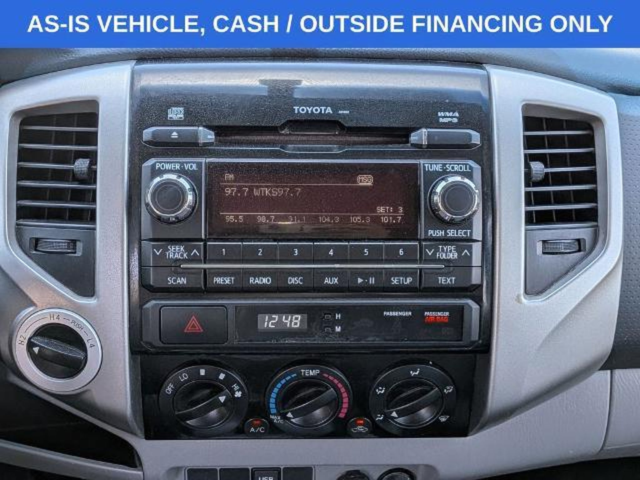 Last Chance Lane presents a vehicle that drove here as a daily driver for the customer who traded. We represent this vehicle with ZERO warranty. This vehicle HAS mechanical / cosmetic problems sold AS-IS just how it was traded. Please review our safety inspection and do your own. No delivery, no holds, AS-IS. If you purchase this vehicle, you are purchasing any/all the problems that go along with a WHOLESALE vehicle. Reverse/Backup Camera, Fabric Front Sport Seats, Sliding Rear Window, Leather-Wrapped Steering Wheel & Shift Knob, Cruise Control, TRD Sport Graphics, 4WD, 115V/400W Deck Powerpoint, 130 Amp Alternator, 17 x 7.5J 30 Aluminum Wheels, 7-Pin Connector w/Converter, AM/FM/CD w/7 Speakers, Class IV Hitch, Color-Keyed Bumpers, Dual Sunvisors w/Mirrors & Extenders, Front Fog & Driving Lamps, Overhead Console, Remote Keyless Entry System, Supplemental Oil Cooler, Towing Package, TRD Sport Extra Value Package, Variable Speed Wipers. Savannah, GA ? J.C. Lewis Ford Built Ford Tough. In Savannah and throughout the Lowcountry, we believe in doing things right ? with integrity, value, and a handshake that means something. That?s why we include over 20 photos and a full walkaround video, so you can take a close look before ever stepping on the lot. At J.C. Lewis Ford in Savannah, we offer transparent deals and dependable vehicles, whether you're headed downtown or back to the farm. We?re happy to provide an AutoCheck or CARFAX report at no charge. Come see us at 9505 Abercorn Street, Savannah, GA 31406, or call (912) 925-0234 ? and find out why our customers keep coming back generation after generation. Recent Arrival!