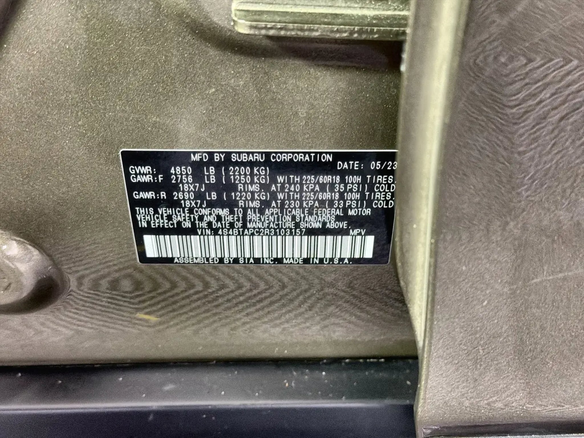 RECALL NOTICE: Some vehicles offered for sale may be subject to unrepaired manufacturer safety recalls. To determine the recall status of a vehicle, visit https:// Arrival! 2024 Subaru Outback Touring Autumn Green MetallicAll-Weather Floor Liners, AM/FM radio: SiriusXM, Auto High-beam Headlights, Auto-Dimming Exterior Mirror w/Approach Light, Automatic temperature control, Autumn Green Metallic Body Side Molding, Brake assist, Dual front impact airbags, Electronic Stability Control, Exterior Parking Camera Rear, Front dual zone A/C, Front fog lights, Fully automatic headlights, Garage door transmitter: HomeLink, harman/kardon® Speakers, Heated & Ventilated Front Bucket Seats, Heated front seats, Heated steering wheel, Leather steering wheel, Memory seat, Navigation system: TomTom Navigation w/what3words, Occupant sensing airbag, Overhead airbag, Overhead console, Power Liftgate, Power moonroof, Power steering, Radio: Subaru STARLINK 11.6 Multimedia Nav System, Split folding rear seat, Standard Model, Steering wheel mounted audio controls, Tilt steering wheel, Variably intermittent wipers, Ventilated front seats, 12 Speakers, 3.90 Axle Ratio, 4-Wheel Disc Brakes, ABS brakes, Air Conditioning, Alloy wheels, Auto-dimming Rear-View mirror, Bumpers: body-color, Compass, Door Projector Light, Driver door bin, Driver vanity mirror, Dual front side impact airbags, Emergency communication system: STARLINK Safety Plus (3-year free trial), Four wheel independent suspension, Front anti-roll bar, Front Bucket Seats, Front Center Armrest w/Storage, Front reading lights, Heated door mirrors, HVAC memory, Illuminated entry, Knee airbag, Leather Shift Knob, LED Upgrade, Low tire pressure warning, Outside temperature display, Panic alarm, Passenger door bin, Passenger vanity mirror, Perforated Nappa Leather-Trimmed Upholstery, Power door mirrors, Power driver seat, Power passenger seat, Power windows, Rear anti-roll bar, Rear Bumper Cover, Rear seat center armrest, Rear window defroster, Rear window wiper, Remote CD player, Remote keyless entry, Roof rack, Security system, Speed control, Speed-sensing steering, Spoiler, Tachometer, Telescoping steering wheel, Traction control, Trip computer, Turn signal indicator mirrors, Wheels: 18 x 7J Black Aluminum-Alloy, Wireless Charger, All-Weather Floor Liners, AM/FM radio: SiriusXM, Auto High-beam Headlights, Auto-Dimming Exterior Mirror w/Approach Light, Automatic temperature control, Autumn Green Metallic Body Side Molding, Brake assist, Dual front impact airbags, Electronic Stability Control, Exterior Parking Camera Rear, Front dual zone A/C, Front fog lights, Fully automatic headlights, Garage door transmitter: HomeLink, harman/kardon® Speakers, Heated & Ventilated Front Bucket Seats, Heated front seats, Heated steering wheel, Leather steering wheel, Memory seat, Navigation system: TomTom Navigation w/what3words, Occupant sensing airbag, Overhead airbag, Overhead console, Power Liftgate, Power moonroof, Power steering, Radio: Subaru STARLINK 11.6 Multimedia Nav System, Split folding rear seat, Standard Model, Steering wheel mounted audio controls, Tilt steering wheel, Variably intermittent wipers, Ventilated front seats.RECALL NOTICE: Some vehicles offered for sale may be subject to unrepaired manufacturer safety recalls. To determine the recall status of a vehicle, visit https:// or click here. We make every effort to provide accurate information, but please verify options and price before purchasing. All vehicles are subject to prior sale. All financing is subject to approved credit. All prices exclude tax, tags, title, registration, electronic filing fee and processing fee of $995. Prices include all applicable rebates and incentives. Additional rebates and incentives may apply to those who qualify. Pricing may not be compatible with special factory financing. Prices are valid based on manufacturer incentive program time periods, which vary. MSRP is the Manufacturer's Suggested Retail Price (MSRP) only and actual dealer pricing may vary. Due to availability, some images and options shown may be stock images