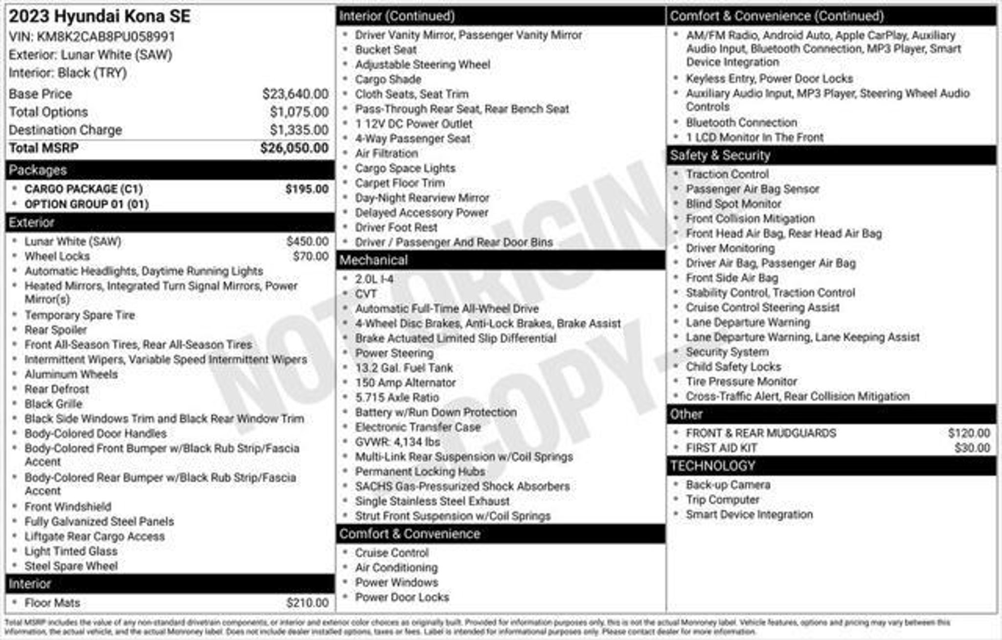 Details > 2023 Hyundai Kona AWD SE 4DR Crossover For Sale in Hartford, CT Private Party Sellers Click here to place your ad now! You auta tell them you saw the ad in AutaBuy when you call or email. 1/26 2/26 3/26 4/26 5/26 6/26 7/26 8/26 9/26 10/26 11/26 12/26 13/26 14/26 15/26 16/26 17/26 18/26 19/26 20/26 21/26 22/26 23/26 24/26 25/26 26/26 View 26 Photos View All Add to My Garage Parked in Your Garage! Lia Hyundai Contact Seller: I would like to: Make Offer Check Availability Ask A Question Request More Photos Check Financing Options Send a copy of this message to me Add this listing to my garage Send to Mobile Mileage 12,268 Exterior Color Lunar White Interior Color Black Doors 4 Engine 2.0L I4 Stock # PU058991T VIN KM8K2CAB8PU058991 Estimated Monthly Payment $348 mo Apply Now J.J. Best Banc & Co. 2023 Hyundai Kona AWD SE 4DR Crossover Description: Lia Hyundai of Hartford · Mileage: 12,268 · Color: Lunar White Price: $19,995. Mileage 12,268 Exterior Color Lunar White Interior Color Black Doors 4 Engine 2.0L I4 Stock # PU058991T VIN KM8K2CAB8PU058991 Estimated Monthly Payment $348 mo Apply Now J.J. Best Banc & Co. Add to My Garage Parked in Your Garage! Message Seller Lia Hyundai Contact Seller: I would like to: Make Offer Check Availability Ask A Question Request More Photos Check Financing Options Send a copy of this message to me Add this listing to my garage Offered for sale by Lia Hyundai HARTFORD, CT Price: $19,995. Offered for sale by Lia Hyundai HARTFORD, CT [entire inventory] Ask Auta Intelligence The first collector-car AI built directly into a classic car marketplace What colors did these come in? When was this model first introduced? Tell me more about this model What does this VIN number tell me? How many Konas were produced in White? What kind of mileage do these get? How many of these were produced? Can you show me more suvs for a similar price? What safety features does this model offer? What transmission options did these offer? What factory options were available on this model? What engine options did these come with? How far is this from me? What trim levels were available for this model? How many passengers can this seat comfortably? How easy are parts to find for this model? Where is this located? Do you have a similar car to sell? List It Now! Questions about this car? Ask Auta Intelligence for production numbers, available options, etc. · Subscribe to AutaBuy! · Send a Gift Subscription Notice to a Friend
