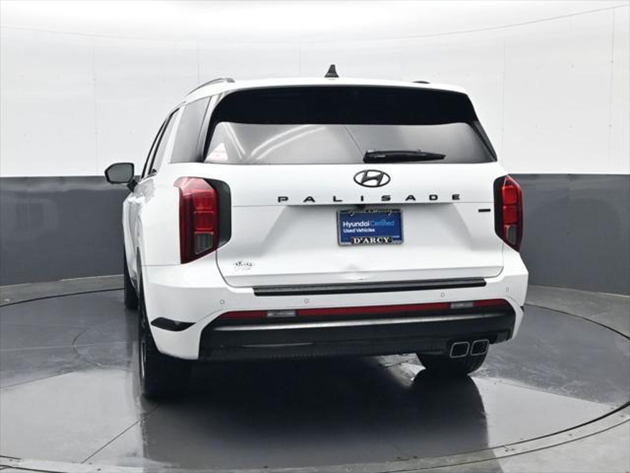 CARFAX One-Owner. ONE OWNER LOCAL TRADE!, LOW MILES!, GREAT VEHICLE HISTORY!, REMAINING FULL FACTORY WARRANTY!, NAVIGATION!, SUNROOF!, LEATHER!, BOUGHT HERE SERVICED HERE!, HYUNDAI CERTIFIED!, FULLY SERVICED AND READY TO GO!. Certified. Recent Arrival! Hyper White 2024 Hyundai Palisade Calligraphy Night Edition AWD 8-Speed Automatic with SHIFTRONIC V6 Hyundai Certified Used Vehicles Details: * Includes 10-year/Unlimited Mileage Roadside Assistance with Rental Car and Trip Interruption Reimbursement; Please See Dealers for Specific Vehicle Eligibility Requirements. 10-Year/100,000 Mile Hybrid/EV Battery Warranty. 3-Months SiriusXM Trial Subscription. Complimentary 1 Year (Connected Care & Remote Pkgs). * Warranty Deductible: $50 * Roadside Assistance * 173 Point Inspection * Limited Warranty: 60 Month/60,000 Mile (whichever comes first) from original in-service date * Powertrain Limited Warranty: 120 Month/100,000 Mile (whichever comes first) from original in-service date * Vehicle History Discover the D'Arcy Difference! We care - we are here and we are ready to help! Stop by today to see up to date information, including showroom and service hours, and how to make an appointment or schedule delivery. D'Arcy Motors has been serving Joliet and its surrounding communities for over 25 years. Our business philosophy, which is to sell cars one car at a time and to make the guest the most important part of the process, has remained the same since 1991. Contact us today to experience the D'Arcy Difference! Pulse® Safer Braking Technology for $399 added to all inventory "“ The rear-end collision deterrent that rapidly pulses your third brake light four times before going solid when you press the brake pedal. This feature enhances safety by helping alert trailing drivers. Discover the D'Arcy Difference! We care - we are here and we are ready to help! Stop by today to see up to date information, including showroom and service hours, and how to make an appointment or schedule delivery. D'Arcy Motors has been serving Joliet and its surrounding communities for over 25 years. Our business philosophy, which is to sell cars one car at a time and to make the guest the most important part of the process, has remained the same since 1991. Contact us today to experience the D'Arcy Difference! This 2024 Hyundai Palisade comes equipped with: Option Group 01, 12 Speakers, 3.648 Axle Ratio, 3rd row seats: split-bench, 4-Wheel Disc Brakes, ABS brakes, Air Conditioning, Alloy wheels, AM/FM radio: SiriusXM, Apple CarPlay & Android Auto, Auto High-beam Headlights, Auto-dimming door mirrors, Auto-dimming Rear-View mirror, Auto-leveling suspension, Automatic temperature control, Brake assist, Bumpers: body-color, Carpeted Floor Mats, Compass, Delay-off headlights, Driver door bin, Driver vanity mirror, Dual front impact airbags, Dual front side impact airbags, Electronic Stability Control, Emergency communication system, Exterior Parking Camera Rear, Four wheel independent suspension, Front anti-roll bar, Front Bucket Seats, Front Center Armrest, Front dual zone A/C, Front reading lights, Fully automatic headlights, Garage door transmitter: HomeLink, harman/kardon® Speakers, Heads-Up Display, Heated & Ventilated Front Bucket Seats, Heated door mirrors, Heated front seats, Heated rear seats, Heated steering wheel, Illuminated entry, Knee airbag, Low tire pressure warning, Memory seat, Microfiber Suede Seat Trim, Navigation System, Occupant sensing airbag, Outside temperature display, Overhead airbag, Overhead console, Panic alarm, Passenger door bin, Passenger vanity mirror, Power door mirrors, Power driver seat, Power Liftgate, Power moonroof, Power passenger seat, Power steering, Power windows, Radio data system, Radio: AM/FM/MP3 Premium Audio System, Rain sensing wipers, Rear air conditioning, Rear anti-roll bar, Rear audio controls, Rear reading lights, Rear side impact airbag, Rear