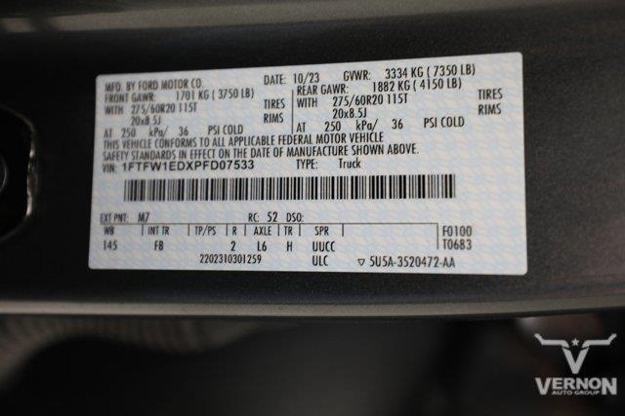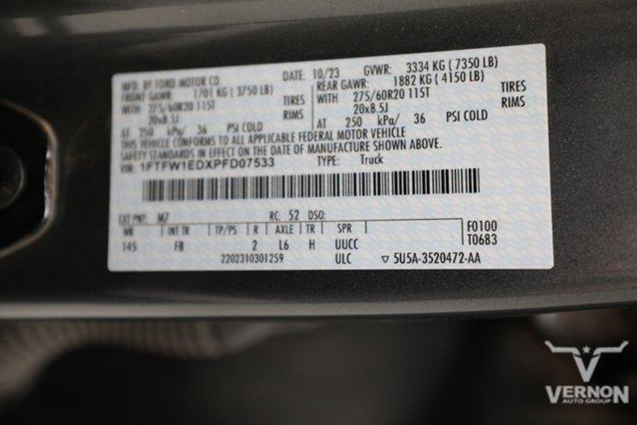 Details > 2023 Ford F-150 4X4 XL 4DR Supercrew 5.5 FT. SB For Sale in Vernon, TX Private Party Sellers Click here to place your ad now! You auta tell them you saw the ad in AutaBuy when you call or email. 1/39 2/39 3/39 4/39 5/39 6/39 7/39 8/39 9/39 10/39 11/39 12/39 13/39 14/39 15/39 16/39 17/39 18/39 19/39 20/39 21/39 22/39 23/39 24/39 25/39 26/39 27/39 28/39 29/39 30/39 31/39 32/39 33/39 34/39 35/39 36/39 37/39 38/39 39/39 View 39 Photos View All Add to My Garage Parked in Your Garage! Vernon Ford Contact Seller: I would like to: Make Offer Check Availability Ask A Question Request More Photos Check Financing Options Send a copy of this message to me Add this listing to my garage Send to Mobile Mileage 26,807 Exterior Color Gray Interior Color Charcoal Doors 4 Engine 3.5L V6 Transmission 10 Speed Auto Stock # TPFD07533 VIN 1FTFW1EDXPFD07533 Estimated Monthly Payment $800 mo Apply Now J.J. Best Banc & Co. 2023 Ford F-150 4X4 XL 4DR Supercrew 5.5 FT. SB Description: · Mileage: 26,807 · Color: Gray Price: $45,999. Mileage 26,807 Exterior Color Gray Interior Color Charcoal Doors 4 Engine 3.5L V6 Transmission 10 Speed Auto Stock # TPFD07533 VIN 1FTFW1EDXPFD07533 Estimated Monthly Payment $800 mo Apply Now J.J. Best Banc & Co. Add to My Garage Parked in Your Garage! Message Seller Vernon Ford Contact Seller: I would like to: Make Offer Check Availability Ask A Question Request More Photos Check Financing Options Send a copy of this message to me Add this listing to my garage Offered for sale by Vernon Ford VERNON, TX Price: $45,999. Offered for sale by Vernon Ford VERNON, TX [entire inventory] Ask Auta Intelligence The first collector-car AI built directly into a classic car marketplace What's the typical towing capacity in this configuration? Tell me about this model Where is this located? How easy are parts to find for this model? What trim levels were available for this model? Can you show me more pickups/trucks for a similar price? What size tires does this run from the factory? When was this model first introduced? How many of these were produced? How far is this from me? What does this VIN number tell me? What colors did these come in? What kind of mileage do these get? What engine options did these come with? What factory options were available on this model? How many F-150s were produced in Gray? What transmission options did these offer? Do you have a similar car to sell? List It Now! Questions about this car? Ask Auta Intelligence for production numbers, available options, etc. · Subscribe to AutaBuy! · Send a Gift Subscription Notice to a Friend