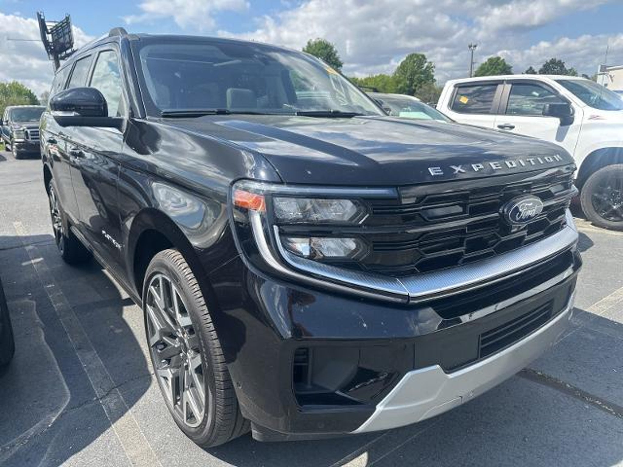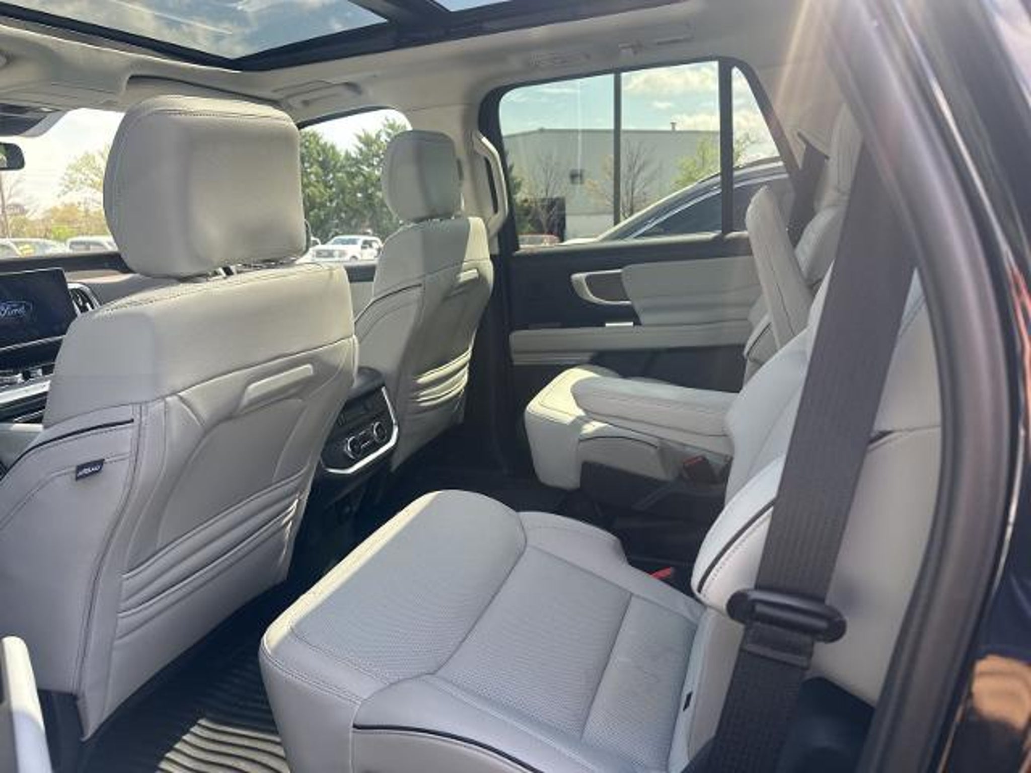 2025 Ford Expedition Platinum 4WD, 10 Speakers, 2nd Row Power-Folding Captain's Chairs, 3.73 Axle Ratio, 3rd row seats: split-bench, 4-Wheel Disc Brakes, ABS brakes, Adjustable pedals, Air Conditioning, Alloy wheels, AM/FM radio: SiriusXM with 360L, Apple CarPlay/Android Auto, Auto High-beam Headlights, Auto-dimming door mirrors, Auto-dimming Rear-View mirror, Automatic temperature control, Black Headlamp Bezel w/Satin Trim Applique, BlueCruise Equipped (1-Year Plan), Brake assist, Bumpers: body-color, Carbon Black Front Bumper w/Lit Grille Bar, Compass, Connectivity Package (One-Time Purchase), Continuous Control Damping Suspension, Cruise Control, Delay-off headlights, Driver door bin, Driver vanity mirror, Driver's Package, Dual front impact airbags, Dual front side impact airbags, Electronic Stability Control, Emergency communication system: 911 Assist, Engine Sound Enhancer, Equipment Group 600A Standard Package, Floor Liners, Front & Second Rows (Tray Style), Four wheel independent suspension, Front anti-roll bar, Front Bucket Seats, Front Center Armrest, Front Door Scuff Plates w/Met Insert & Bright Rear, Front dual zone A/C, Front reading lights, Fully automatic headlights, Garage door transmitter, Genuine wood dashboard insert, Genuine wood door panel insert, Heated & Ventilated Leather Front Captain's Chairs, Heated and Cooled Seats, Heated door mirrors, Heated rear seats, Heated steering wheel, High Flow Exhaust System, Illuminated entry, Leather steering wheel, Low tire pressure warning, Memory seat, Multicontour Active Motion Lthr Frnt Captains Chairs, Navigation System, Occupant sensing airbag, Outside temperature display, Overhead airbag, Overhead console, Panic alarm, Passenger door bin, Passenger vanity mirror, Pedal memory, Platinum Ultimate Interior Package, Platinum Ultimate Package, Polished Stainless Steel Beltline Molding, Power door mirrors, Power driver seat, Power moonroof: Vista Roof, Power passenger seat, Power steering, Power windows, Radio data system, Radio: B&O Sound System by Bang & Olufsen, Radio: B&O Unleashed Sound System by Bang & Olufsen, Rain sensing wipers, Rear air conditioning, Rear anti-roll bar, Rear reading lights, Rear Seat Radio Controls, Rear Side Windows Laminated Glass, Rear window defroster, Rear window wiper, Rearview Camera, Reclining 3rd row seat, Remote keyless entry, Satin Aluminum Expedition Lettering On Side & Hood, Satin Aluminum Platinum Badge On Tailgate, Security system, Signature Grille Lighting, SiriusXM w/360L, Speed-sensing steering, Speed