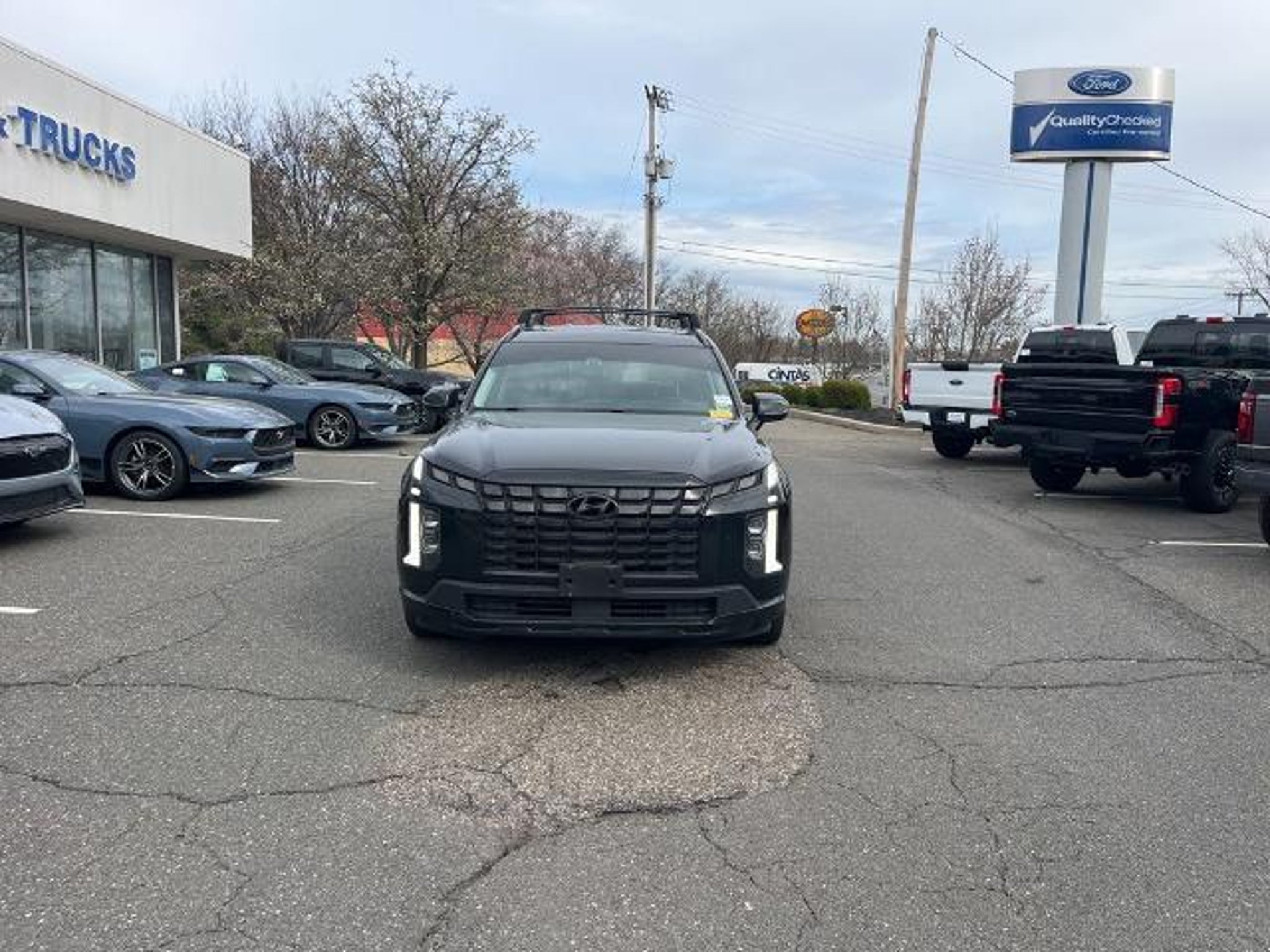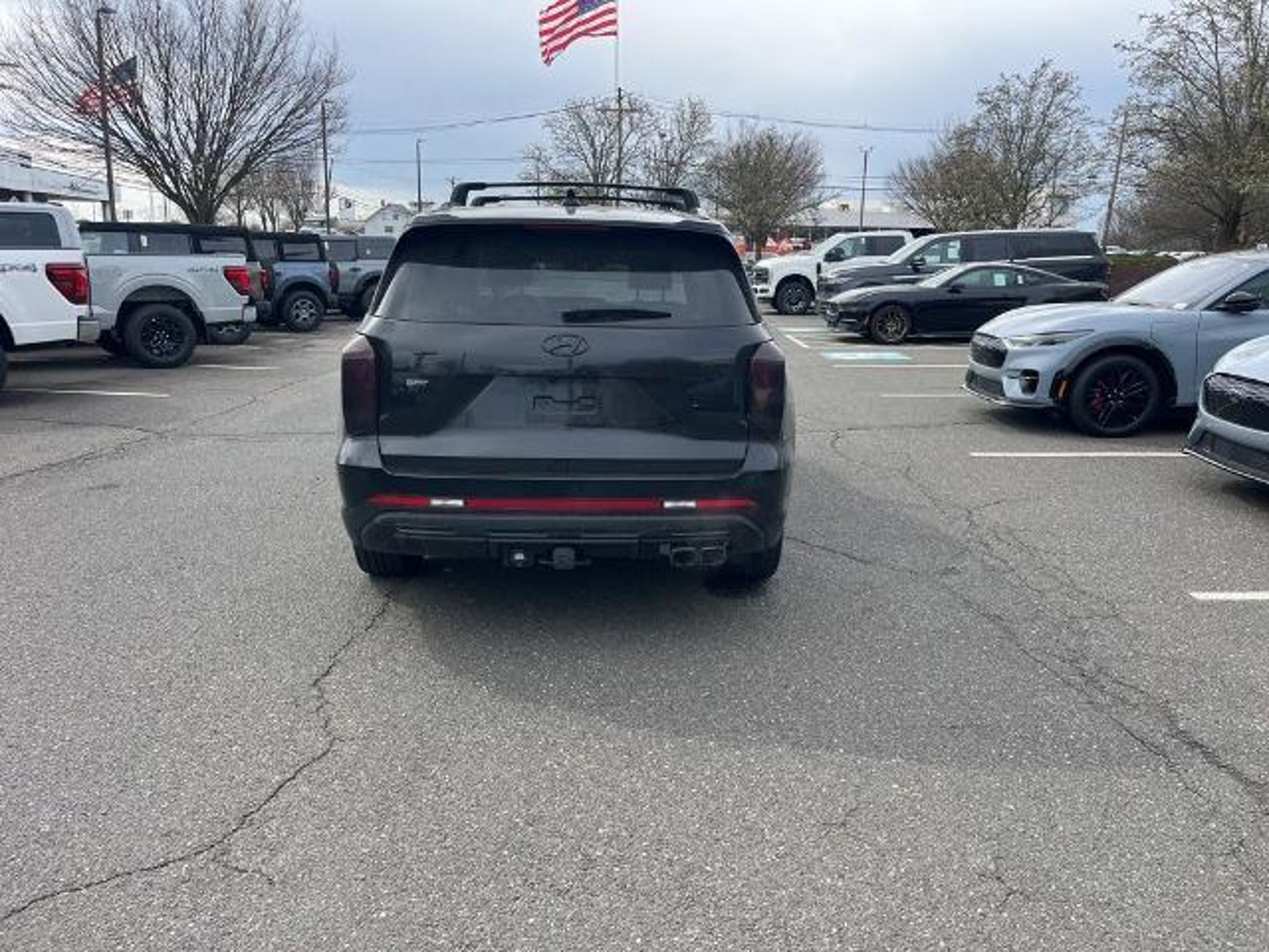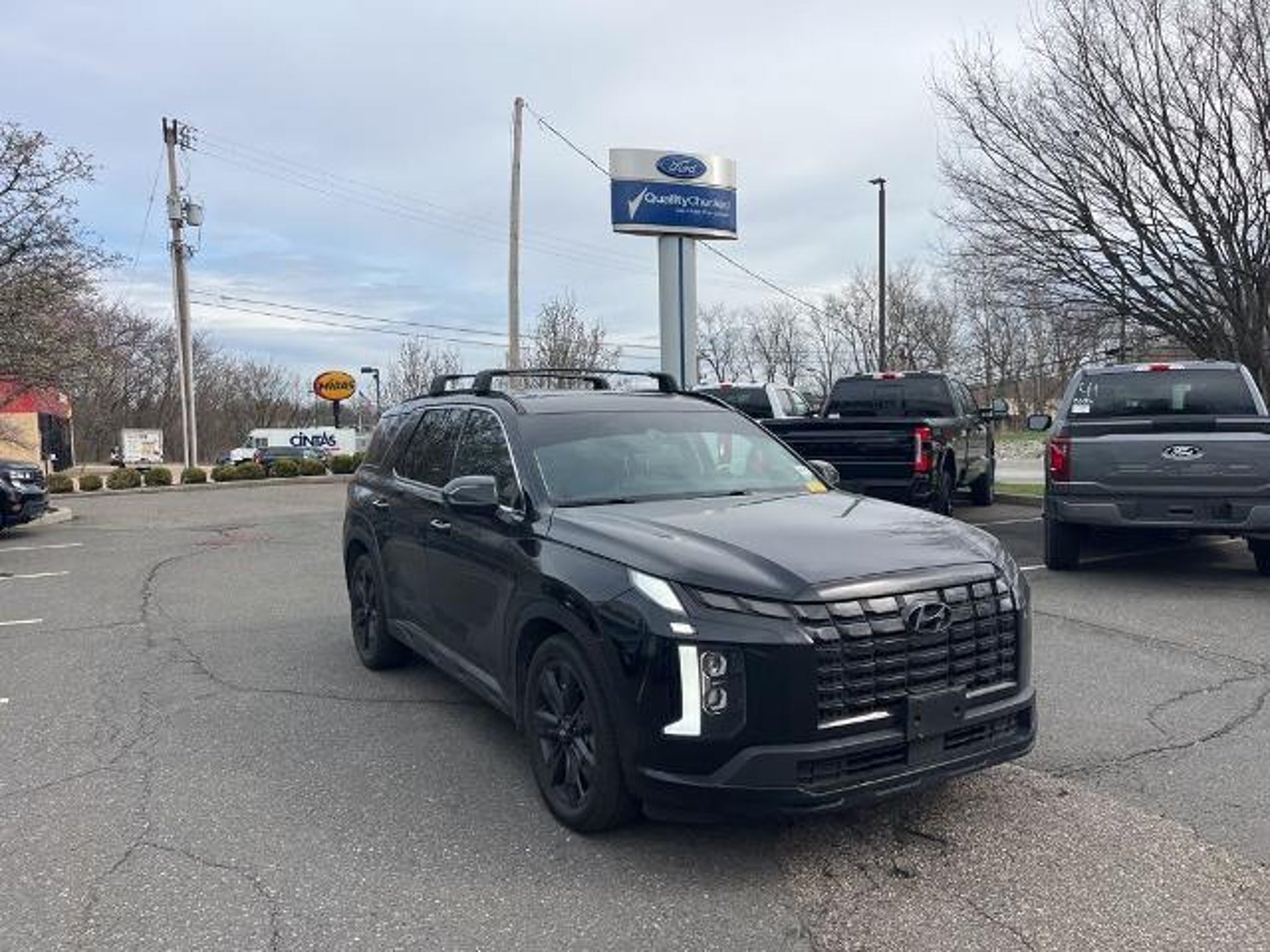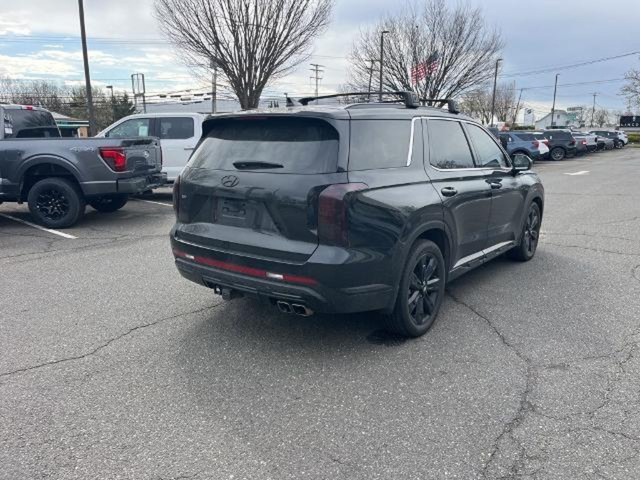2024 Hyundai Palisade XRT Abyss Black Pearl AWD 8-Speed Automatic with SHIFTRONIC V6 3.648 Axle Ratio, 3rd row seats: split-bench, 4-Wheel Disc Brakes, 6 Speakers, ABS brakes, Air Conditioning, Alloy wheels, AM/FM radio: SiriusXM, Apple CarPlay & Android Auto, Auto High-beam Headlights, Auto-dimming door mirrors, Auto-dimming Rear-View mirror, Auto-leveling suspension, Automatic temperature control, Brake assist, Bumpers: body-color, Cargo Cover/Screen, Cargo Net, Cargo Tray, Carpeted Floor Mats, Delay-off headlights, Driver door bin, Driver vanity mirror, Dual front impact airbags, Dual front side impact airbags, Electronic Stability Control, Emergency communication system, Exterior Parking Camera Rear, Four wheel independent suspension, Front anti-roll bar, Front Bucket Seats, Front Center Armrest, Front dual zone A/C, Front reading lights, Fully automatic headlights, H-Tex Leatherette Seat Trim, Heated door mirrors, Heated Front Bucket Seats, Heated front seats, Illuminated entry, Knee airbag, Low tire pressure warning, Mudguards, Navigation System, Occupant sensing airbag, Option Group 01, Outside temperature display, Overhead airbag, Overhead console, Panic alarm, Passenger door bin, Passenger vanity mirror, Power door mirrors, Power driver seat, Power Liftgate, Power moonroof, Power passenger seat, Power steering, Power windows, Radio data system, Radio: AM/FM/MP3 Audio System, Rear air conditioning, Rear anti-roll bar, Rear audio controls, Rear reading lights, Rear side impact airbag, Rear window defroster, Rear window wiper, Reclining 3rd row seat, Remote keyless entry, Roof rack, Security system, Speed control, Speed-sensing steering, Split folding rear seat, Spoiler, Steering wheel mounted audio controls, Tachometer, Telescoping steering wheel, Tilt steering wheel, Traction control, Trip computer, Turn signal indicator mirrors, Variably intermittent wipers, Wheel Locks, Wheels: 20 x 7.5J Dark Alloy w/Rugged Styling.