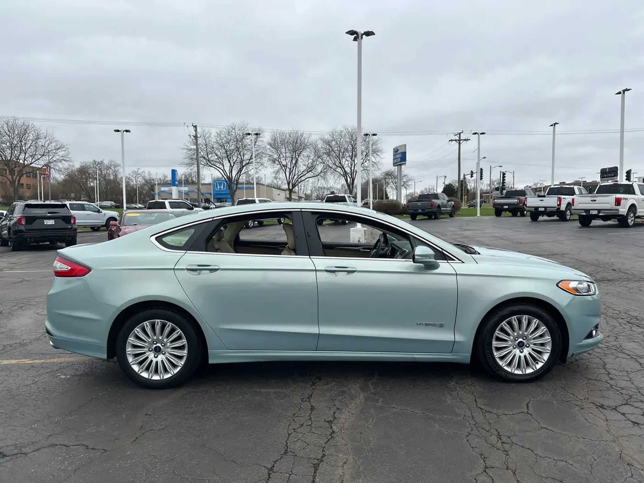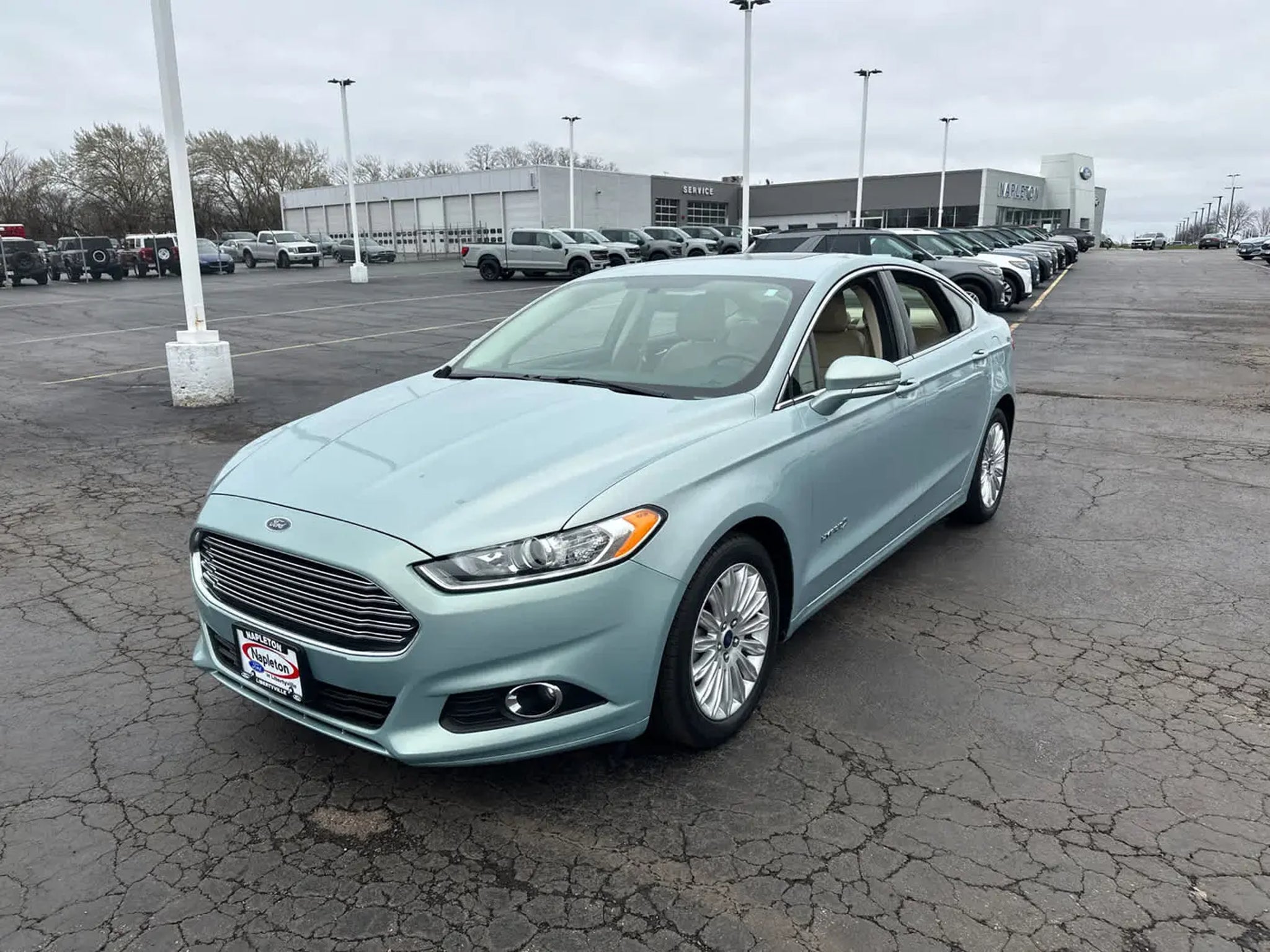 Auto Check One Owner! SE Hybrid trim, Ice Storm Metallic exterior and Dune interior. FUEL EFFICIENT 41 MPG Hwy/44 MPG City! Moonroof, Nav System, CD Player, Bluetooth?, Satellite Radio, Aluminum Wheels, Hybrid, VOICE-ACTIVATED NAVIGATION SYSTEM, EQUIPMENT GROUP 502A, SE MYFORD TOUCH TECHNOLOGY PACKAGE, MOONROOF. WHY BUY FROM US At Napleton Ford in Libertyville,our business philosophy is a simple one: It centers around your expectations of how a customer should be treated when purchasing or servicing your vehicle. From our brand-new facility to our wide range of stunning Ford cars, trucks and SUVs, there are a long list of reasons to love the shopping experience here at Napleton Ford. Whether youre here to buy your first vehicle or get service on the car youve owned for years, were excited youve chosen our dealership! OPTION PACKAGES EQUIPMENT GROUP 502A Luxury Package, Electrochromic Exterior Mirrors, memory, Leather Wrapped Gearshift Knob, Electrochromic Rearview Mirror, Leather-Wrapped Steering Wheel, Chrome Moldings Around Window, Warm Interior Accents, LED Rear Combination Lamps Ford High (Full Circle), Fog Lamps, MOONROOF Universal Garage Door Opener, SE MYFORD TOUCH TECHNOLOGY PACKAGE Rear View Camera, 110V Power Outlet, SYNC w/MyFord Touch, 2 driver configurable 4.2 LCD displays in cluster, 8 LCD touch-screen in center-stack, media hub w/USB Ports (2), SD card reader & RCA video input jacks, 5-way controls located on steering wheel and SYNC services (traffic reports, GPS based turn-by-turn directions 911 assist, VHR and information services) EXPERTS REPORT With its impressive refinement, well-rounded performance and high-tech features, the 2014 Fusion Hybrid puts Ford at the top of the hybrid sedan class. -Edmunds.com. Fuel economy calculations based on original manufacturer data for trim engine configuration.