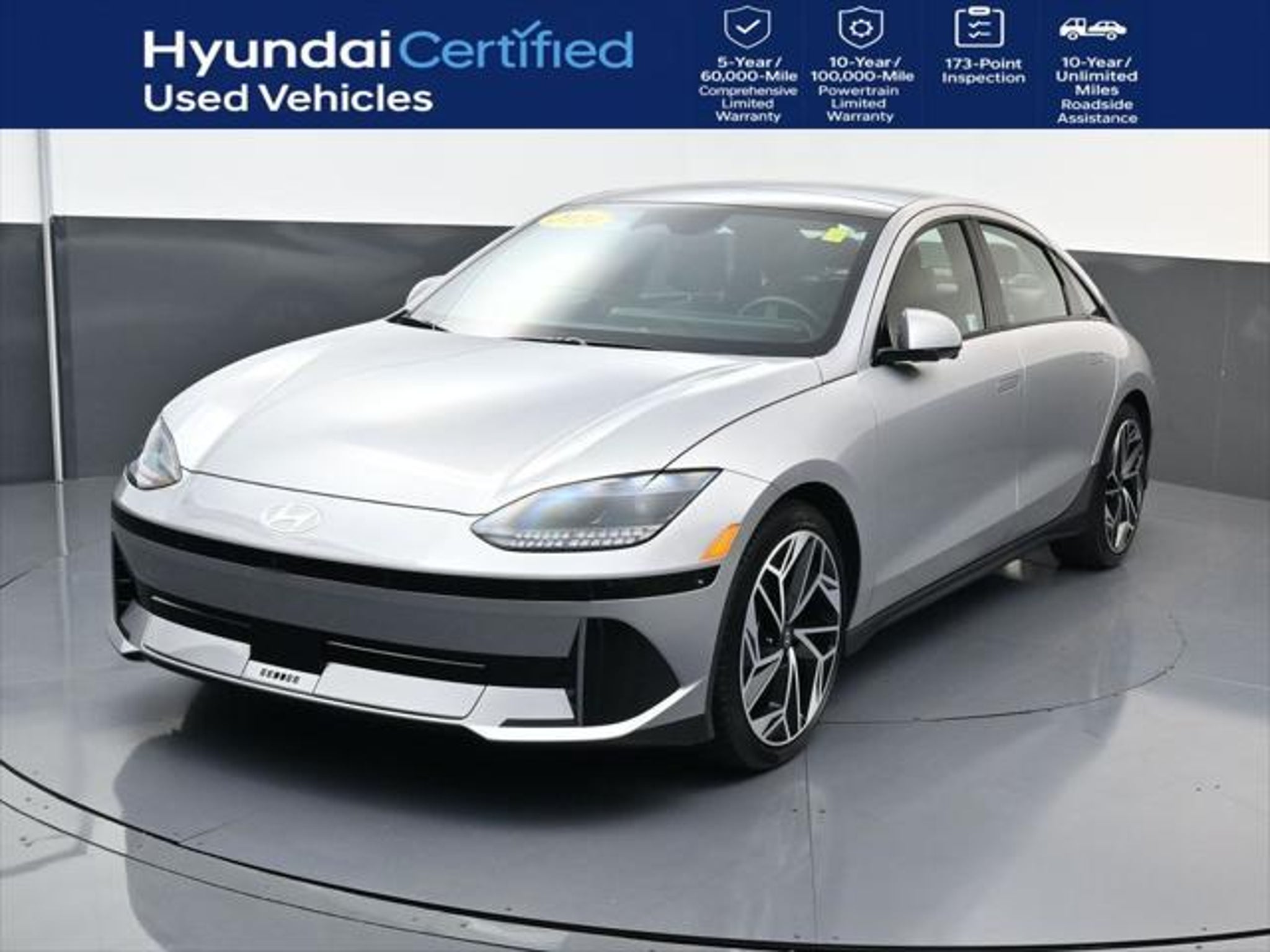 Discover the future of electric driving with the exceptional 2024 Hyundai IONIQ 6 Limited. This stunning electric sedan boasts an impressive EPA-estimated 129 MPGe in the city and 105 MPGe on the highway, ensuring you can enjoy the thrill of electric power while reducing your environmental impact. - Navigation System - Option Group 01 - 8 Speakers - Air Conditioning - Power Driver Seat - Power Moonroof: Vision Sunroof - Apple CarPlay & Android Auto - Heated & Ventilated Front Bucket Seats Designed with both style and substance in mind, the IONIQ 6 Limited offers a captivating exterior in a sleek Silver finish, complemented by a spacious and well-appointed interior. Experience the epitome of modern luxury and cutting-edge technology, all while embracing the future of sustainable transportation. Hyundai's commitment to quality and innovation is evident in the IONIQ 6 Limited. As a Hyundai Certified Used Vehicle, this car has undergone a rigorous 173 point inspection, ensuring you can drive with confidence. Backed by a comprehensive warranty and Roadside Assistance program, you can enjoy peace of mind and the assurance of Hyundai's renowned reliability. Discover the perfect balance of performance, efficiency, and sophistication with the 2024 Hyundai IONIQ 6 Limited. Experience the thrill of electric driving and the convenience of advanced features that will elevate your daily commute and weekend adventures. Visit our showroom today and let us demonstrate why the IONIQ 6 Limited is the perfect choice for your next vehicle. - 173 Point Inspection - Roadside Assistance - Warranty Deductible: $50 - Vehicle History - Limited Warranty: 60 Month/60,000 Mile (whichever comes first) from original in-service date - Powertrain Limited Warranty: 120 Month/100,000 Mile (whichever comes first) from original in-service date - Includes 10-year/Unlimited Mileage Roadside Assistance with Rental Car and Trip Interruption Reimbursement; Please See Dealers for Specific Vehicle Eligibility Requirements. 10-Year/100,000 Mile Hybrid/EV Battery Warranty. 3-Months SiriusXM Trial Subscription. Complimentary 1 Year (Connected Care & Remote Pkgs).