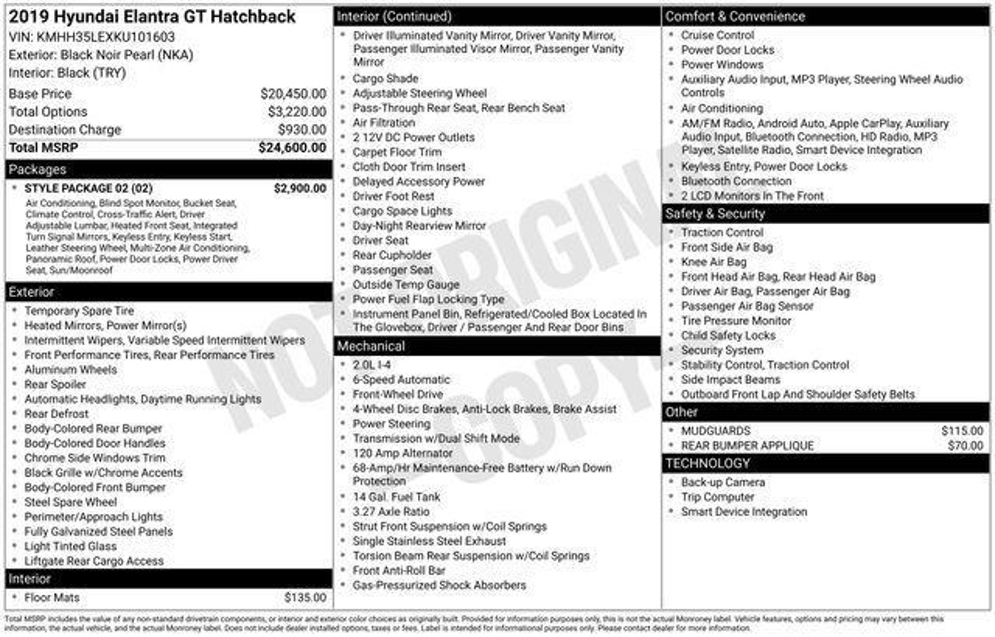 Experience the ultimate in style and sophistication with this stunning 2019 Hyundai Elantra GT Base. This sleek and modern hatchback is the perfect blend of performance, technology, and comfort, making it the ideal choice for the discerning driver. - 3 Month / 4,000 Mile Comprehensive Warranty - 5 Day Return / 30 Day Exchange - Auto Rewards Program - Bought & Serviced at Fred Beans - Great Service History - Local Trade - Triton Certified Classic Vehicle - Style Package 02 - Carpeted Floor Mats - Mudguards - Rear Bumper Applique Boasting a robust 2.0L DOHC engine and a smooth 6-Speed Automatic with Shiftronic transmission, this Elantra GT delivers an exhilarating driving experience while maintaining an impressive 25 city / 32 highway MPG. The striking black exterior is complemented by the sleek and stylish design, turning heads wherever you go. Step inside and be captivated by the premium features that elevate the driving experience. The panoramic sunroof floods the cabin with natural light, while the leather-wrapped steering wheel and shift knob provide a touch of elegance. Dual automatic temperature control and a clean air ionizer ensure your comfort, while the heated front bucket seats and power driver's seat with lumbar support offer unparalleled relaxation. The advanced technology in this Elantra GT keeps you connected and in control. Enjoy seamless integration with your smartphone through Apple CarPlay and Android Auto, and stay aware of your surroundings with the Blind Spot Collision Warning and Rear Cross-Traffic Collision Warning systems. The Proximity Key with Push-Button Start and Driver's Auto-Up/Down Window add to the convenience and sophistication of this remarkable vehicle. This Elantra GT has been meticulously inspected and certified by our team of experts, giving you the peace of mind that comes with a trusted and reliable vehicle. With its exceptional features, impressive performance, and stunning appearance, this Hyundai Elantra GT Base is the perfect choice for the discerning driver who demands the best. Don't miss your chance to experience the ultimate in style, technology, and driving enjoyment. Schedule a test drive today and discover why this Elantra GT is the perfect addition to your lifestyle.