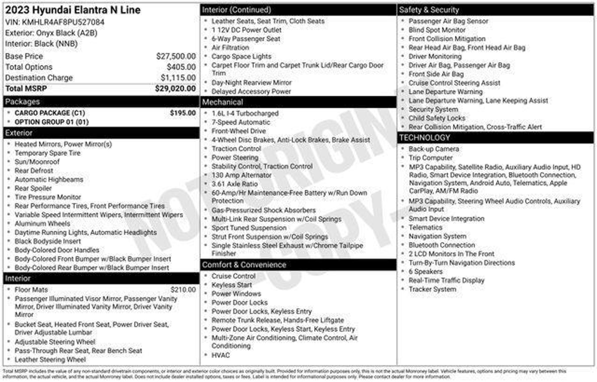 Elevate your driving experience with this exceptional 2023 Hyundai Elantra N Line. Boasting a sleek black exterior and a powerful I4 engine paired with a 7-Speed Dual Clutch DCT, this vehicle delivers an exhilarating performance that will leave you eager to hit the open road. Key features that make this Elantra N Line stand out: - 5 Day Return / 30 Day Exchange - Auto Rewards Program - Bought & Serviced at Fred Beans - Factory Certified Vehicle - Great Service History - Local Trade - Cargo Package with Reversible Cargo Tray, Cargo Net, and Cargo Block - Carpeted Floor Mats This Elantra N Line is packed with premium amenities that elevate your driving experience, including: - Radio: AM/FM/HD/SiriusXM Display Audio - Front dual zone A/C - Power driver seat - Remote keyless entry - Steering wheel mounted audio controls - Auto High-beam Headlights - Fully automatic headlights - Heated door mirrors - Power door mirrors - Apple CarPlay & Android Auto - Illuminated entry - Leather Shift Knob - Leather steering wheel - Navigation System - Exterior Parking Camera Rear - Combination Cloth & Leather Seating Surfaces - Heated front seats - Power moonroof - 18 x 7.5J Alloy Wheels As a Hyundai Certified Used Vehicle, this Elantra N Line has undergone a rigorous 173 point inspection and comes with an impressive warranty package: - Roadside Assistance - Warranty Deductible: $50 - Limited Warranty: 60 Month/60,000 Mile (whichever comes first) from original in-service date - Powertrain Limited Warranty: 120 Month/100,000 Mile (whichever comes first) from original in-service date - Includes 10-year/Unlimited Mileage Roadside Assistance with Rental Car and Trip Interruption Reimbursement - 10-Year/100,000 Mile Hybrid/EV Battery Warranty - 3-Months SiriusXM Trial Subscription - Complimentary 1 Year (Connected Care & Remote Pkgs) This Elantra N Line is a testament to Hyundai's commitment to quality and innovation. With its exceptional performance, premium features, and comprehensive warranty coverage, it's the perfect choice for the discerning driver who demands the best. Visit our showroom today and experience the thrill of driving this remarkable vehicle.
