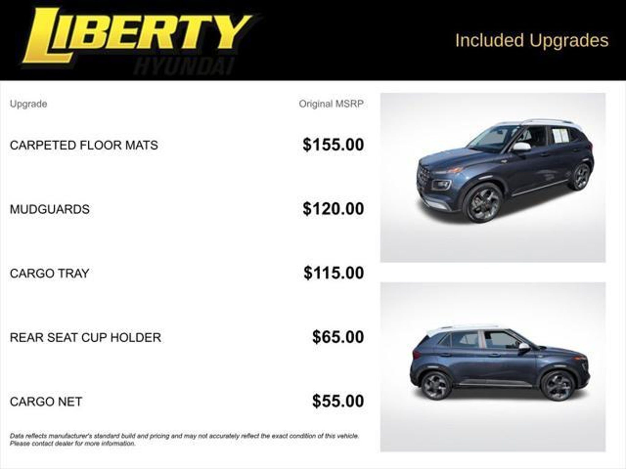 Details > 2021 Hyundai Venue Denim 4DR Crossover For Sale in Mahwah, NJ Private Party Sellers Click here to place your ad now! You auta tell them you saw the ad in AutaBuy when you call or email. 1/31 2/31 3/31 4/31 5/31 6/31 7/31 8/31 9/31 10/31 11/31 12/31 13/31 14/31 15/31 16/31 17/31 18/31 19/31 20/31 21/31 22/31 23/31 24/31 25/31 26/31 27/31 28/31 29/31 30/31 31/31 View 31 Photos View All Add to My Garage Parked in Your Garage! Liberty Hyundai Contact Seller: I would like to: Make Offer Check Availability Ask A Question Request More Photos Check Financing Options Send a copy of this message to me Add this listing to my garage Send to Mobile Mileage 57,010 Exterior Color Denim Interior Color Denim Doors 4 Engine 1.6L I4 Stock # 23508A VIN KMHRC8A39MU106138 Estimated Monthly Payment $278 mo Apply Now J.J. Best Banc & Co. 2021 Hyundai Venue Denim 4DR Crossover Description: Liberty Hyundai · Mileage: 57,010 · Color: Denim Price: $15,995. Mileage 57,010 Exterior Color Denim Interior Color Denim Doors 4 Engine 1.6L I4 Stock # 23508A VIN KMHRC8A39MU106138 Estimated Monthly Payment $278 mo Apply Now J.J. Best Banc & Co. Add to My Garage Parked in Your Garage! Message Seller Liberty Hyundai Contact Seller: I would like to: Make Offer Check Availability Ask A Question Request More Photos Check Financing Options Send a copy of this message to me Add this listing to my garage Offered for sale by Liberty Hyundai MAHWAH, NJ Price: $15,995. Offered for sale by Liberty Hyundai MAHWAH, NJ [entire inventory] Ask Auta Intelligence The first collector-car AI built directly into a classic car marketplace When was this model first introduced? What transmission options did these offer? How many passengers can this seat comfortably? What does this VIN number tell me? How many of these were produced? Where is this located? What trim levels were available for this model? How far is this from me? Tell me more about this model Can you show me more suvs for a similar price? How many Venues were produced in Denim? How easy are parts to find for this model? What safety features does this model offer? What engine options did these come with? What colors did these come in? What factory options were available on this model? What kind of mileage do these get? Do you have a similar car to sell? List It Now! Questions about this car? Ask Auta Intelligence for production numbers, available options, etc. · Subscribe to AutaBuy! · Send a Gift Subscription Notice to a Friend