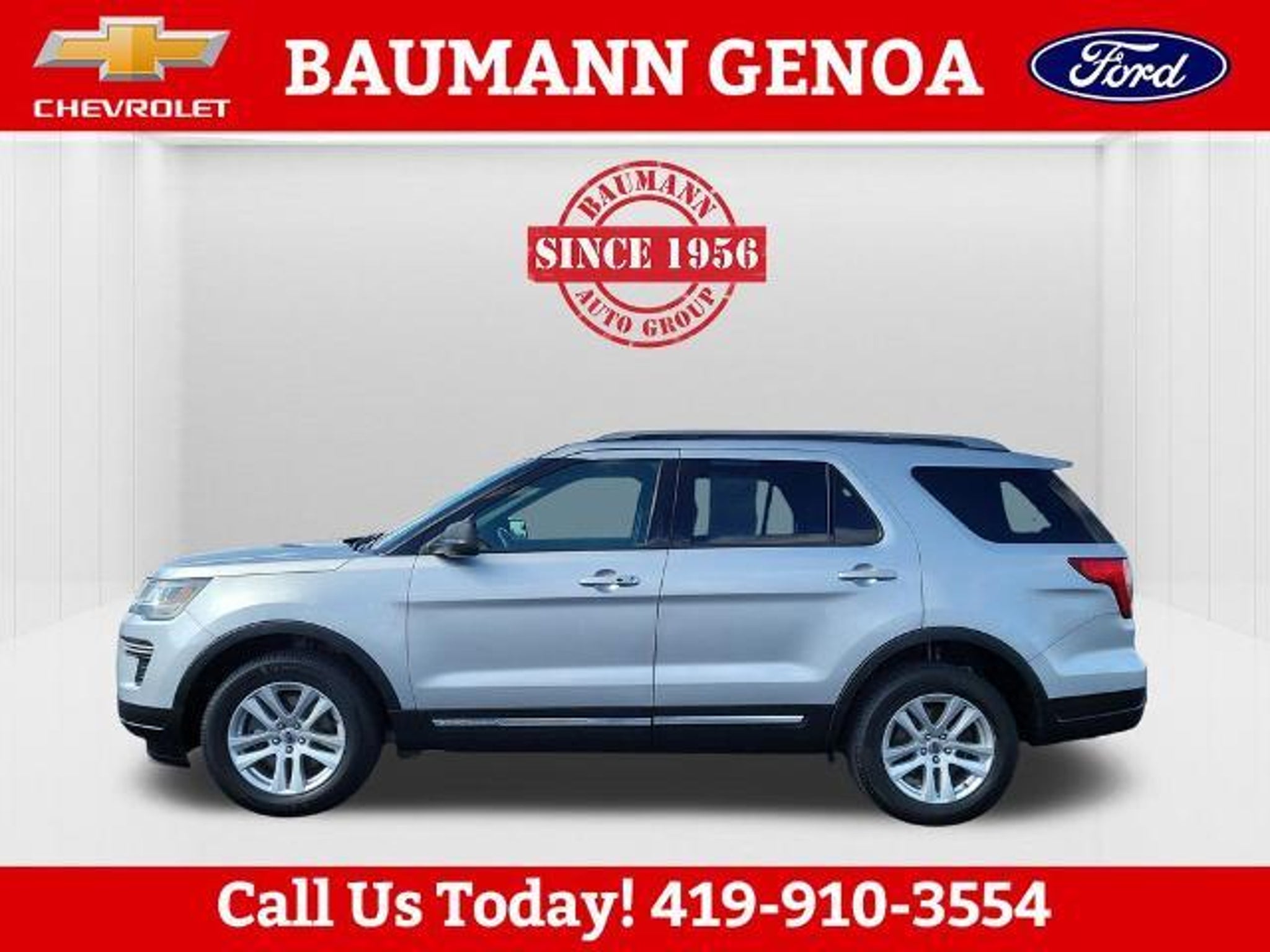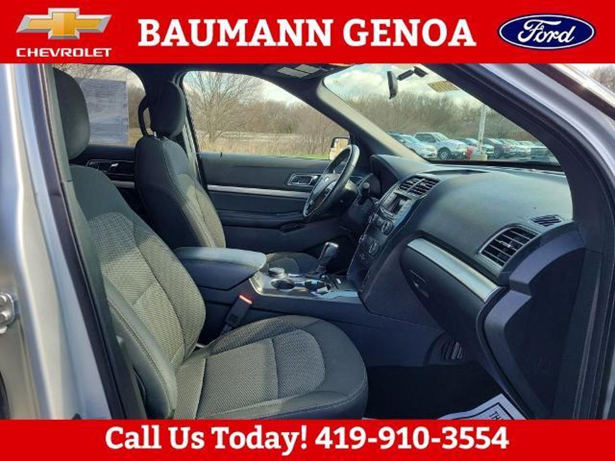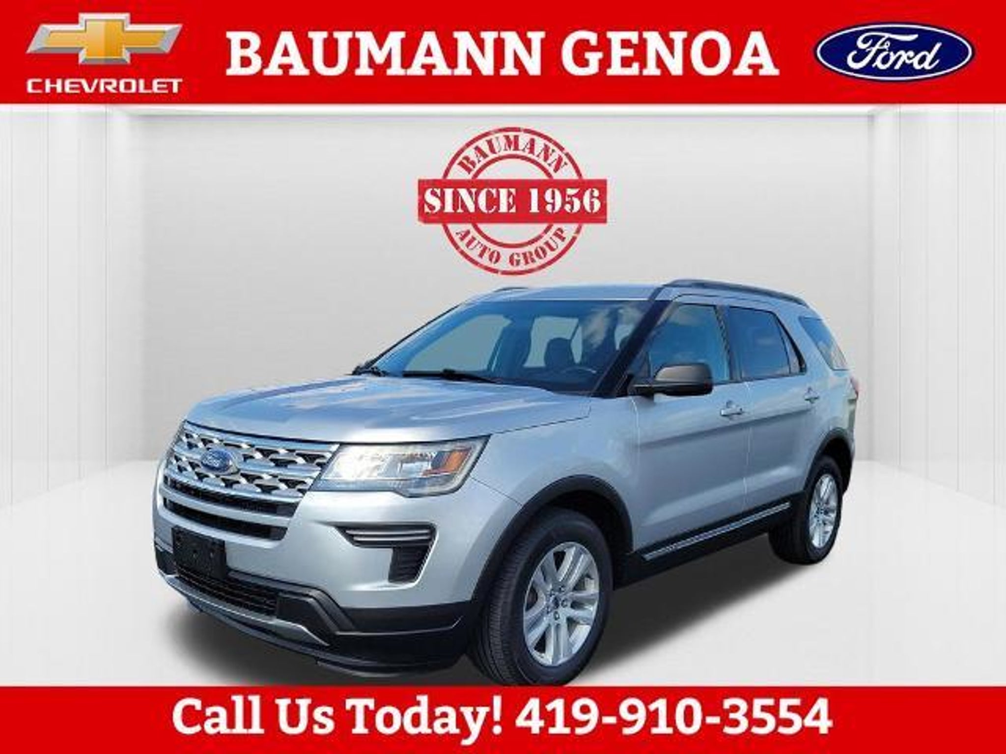 CARFAX One-Owner. Ingot Silver 2019 Ford Explorer XLT 4D Sport Utility 3.5L 6-Cylinder SMPI DOHC 6-Speed Automatic with Select-Shift 4WD BAUMANN AUTO GROUP GENOA - 419.855.8366. We Make Car Buying Fun, Fast, and HASSLE FREE. ONE OWNER, CLEAN CARFAX REPORT, 4WD, Class III Trailer Tow Package, Equipment Group 200A, 3.65 Non-Limited Slip Axle Ratio, 3rd row seats: split-bench, 4-Wheel Disc Brakes, 6 Speakers, ABS brakes, Air Conditioning, Alloy wheels, AM/FM radio: SiriusXM, AM/FM Stereo, Brake assist, Bumpers: body-color, Compass, Delay-off headlights, Driver door bin, Driver vanity mirror, Dual front impact airbags, Dual front side impact airbags, Electronic Stability Control, Emergency communication system: 911 Assist, Exterior Parking Camera Rear, Four wheel independent suspension, Front anti-roll bar, Front Bucket Seats, Front Center Armrest, Front reading lights, Fully automatic headlights, Heated door mirrors, Illuminated entry, Knee airbag, Leather steering wheel, Low tire pressure warning, Occupant sensing airbag, Outside temperature display, Overhead airbag, Overhead console, Panic alarm, Passenger door bin, Passenger vanity mirror, Power door mirrors, Power driver seat, Power passenger seat, Power steering, Power windows, Rear air conditioning, Rear anti-roll bar, Rear Parking Sensors, Rear reading lights, Rear seat center armrest, Rear window defroster, Rear window wiper, Remote keyless entry, Roof rack: rails only, Security system, Speed control, Speed-sensing steering, Speed-Sensitive Wipers, Split folding rear seat, Spoiler, Steering wheel mounted audio controls, SYNC Communication & Entertainment System, Tachometer, Telescoping steering wheel, Tilt steering wheel, Traction control, Trip computer, Unique Cloth Bucket Seats, Variably intermittent wipers, Wheels: 18 5-Split-Spoke Sparkle Silver-Painted, 4WD, Class III Trailer Tow Package, Equipment Group 200A.
