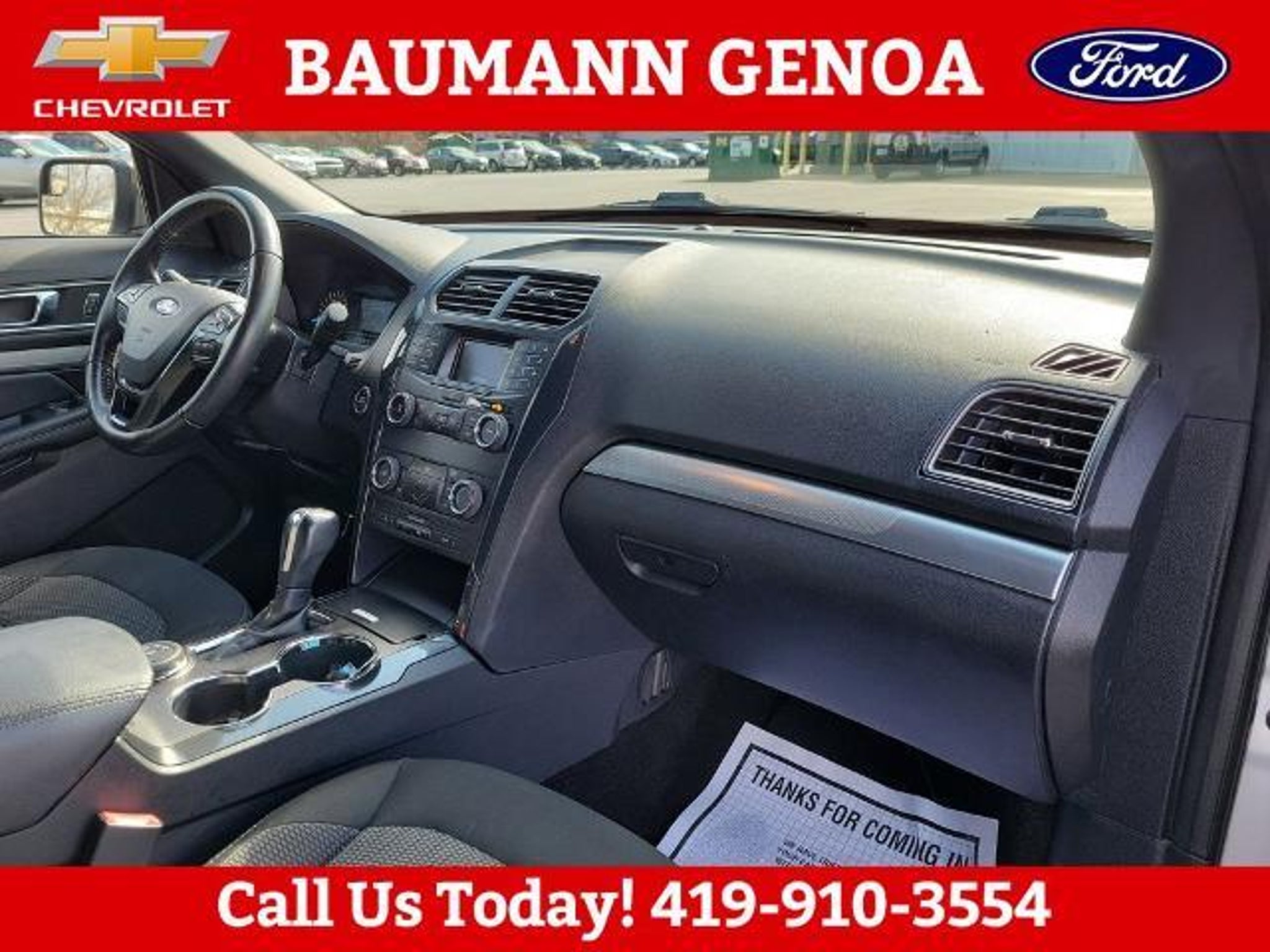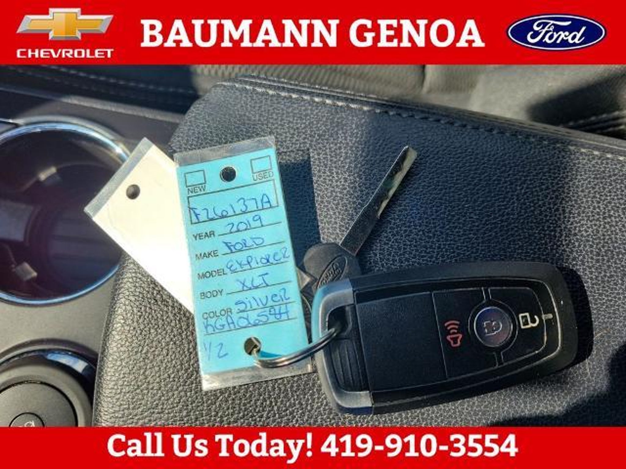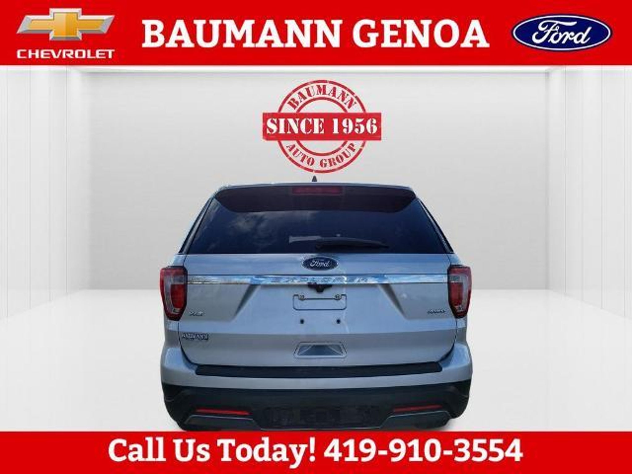 CARFAX One-Owner. Ingot Silver 2019 Ford Explorer XLT 4D Sport Utility 3.5L 6-Cylinder SMPI DOHC 6-Speed Automatic with Select-Shift 4WD BAUMANN AUTO GROUP GENOA - 419.855.8366. We Make Car Buying Fun, Fast, and HASSLE FREE. ONE OWNER, CLEAN CARFAX REPORT, 4WD, Class III Trailer Tow Package, Equipment Group 200A, 3.65 Non-Limited Slip Axle Ratio, 3rd row seats: split-bench, 4-Wheel Disc Brakes, 6 Speakers, ABS brakes, Air Conditioning, Alloy wheels, AM/FM radio: SiriusXM, AM/FM Stereo, Brake assist, Bumpers: body-color, Compass, Delay-off headlights, Driver door bin, Driver vanity mirror, Dual front impact airbags, Dual front side impact airbags, Electronic Stability Control, Emergency communication system: 911 Assist, Exterior Parking Camera Rear, Four wheel independent suspension, Front anti-roll bar, Front Bucket Seats, Front Center Armrest, Front reading lights, Fully automatic headlights, Heated door mirrors, Illuminated entry, Knee airbag, Leather steering wheel, Low tire pressure warning, Occupant sensing airbag, Outside temperature display, Overhead airbag, Overhead console, Panic alarm, Passenger door bin, Passenger vanity mirror, Power door mirrors, Power driver seat, Power passenger seat, Power steering, Power windows, Rear air conditioning, Rear anti-roll bar, Rear Parking Sensors, Rear reading lights, Rear seat center armrest, Rear window defroster, Rear window wiper, Remote keyless entry, Roof rack: rails only, Security system, Speed control, Speed-sensing steering, Speed-Sensitive Wipers, Split folding rear seat, Spoiler, Steering wheel mounted audio controls, SYNC Communication & Entertainment System, Tachometer, Telescoping steering wheel, Tilt steering wheel, Traction control, Trip computer, Unique Cloth Bucket Seats, Variably intermittent wipers, Wheels: 18 5-Split-Spoke Sparkle Silver-Painted, 4WD, Class III Trailer Tow Package, Equipment Group 200A.