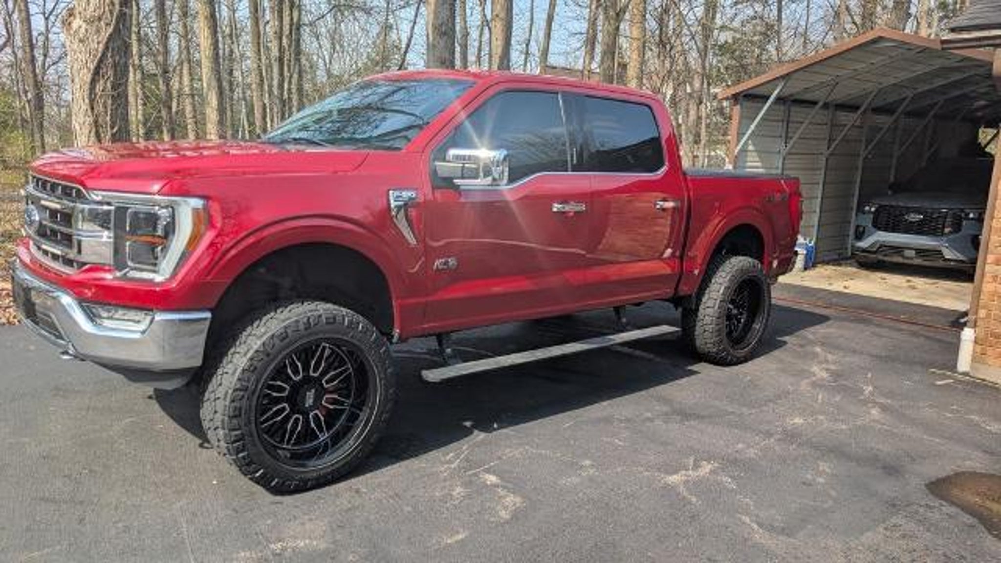 2021 Ford F-150 Lariat 4WD 2.7L V6 EcoBoost 10-Speed Automatic 2nd Row Heated Seats, Class IV Trailer Hitch Receiver, Equipment Group 502A High, Ford Co-Pilot360 Assist 2.0, Heated Steering Wheel, Integrated Trailer Brake Controller, Lariat Chrome Appearance Package, Leather-Trimmed Bucket Seats, LED Projector w/Dynamic Bending Headlamps, Onboard 400W Outlet, Power Glass Sideview Mirr w/Chrome Skull Caps, Power Tilt/Telescoping Steering Column w/Memory, Pro Trailer Backup Assist, Radio: B&O Sound System by Bang & Olufsen, Rain-Sensing Wipers, Trailer Tow Package, Universal Garage Door Opener. Check out all these great options! Equipment Group 502A High (2nd Row Heated Seats, Heated Steering Wheel, Leather-Trimmed Bucket Seats, LED Projector w/Dynamic Bending Headlamps, Onboard 400W Outlet, Power Glass Sideview Mirr w/Chrome Skull Caps, Power Tilt/Telescoping Steering Column w/Memory, Radio: B&O Sound System by Bang & Olufsen, Rain-Sensing Wipers, and Universal Garage Door Opener), Ford Co-Pilot360 Assist 2.0, Lariat Chrome Appearance Package, Trailer Tow Package (Class IV Trailer Hitch Receiver, Integrated Trailer Brake Controller, and Pro Trailer Backup Assist), GVWR: 6,600 lbs Payload Package, 18 Machined-Aluminum Wheels, 3.55 Axle Ratio, 4-Wheel Disc Brakes, 7 Speakers, ABS brakes, Adjustable pedals, Air Conditioning, Alloy wheels, AM/FM radio: SiriusXM with 360L, Auto High-beam Headlights, Auto-dimming door mirrors, Auto-dimming Rear-View mirror, Automatic temperature control, Brake assist, Bumpers: chrome, Compass, Delay-off headlights, Driver door bin, Driver vanity mirror, Dual front impact airbags, Dual front side impact airbags, Electronic Stability Control, Emergency communication system: SYNC 4 911 Assist, Exterior Parking Camera Rear, Front anti-roll bar, Front Center Armrest w/Storage, Front dual zone A/C, Front fog lights, Front reading lights, Front wheel independent suspension, Fully automatic headlights, Heated door mirrors, Heated front seats, Illuminated entry, Leather-Trimmed 40/20/40 Front Seat, Low tire pressure warning, Memory seat, Navigation system: Connected Navigation (90-Day Trial), Occupant sensing airbag, Outside temperature display, Overhead airbag, Overhead console, Panic alarm, Passenger door bin, Passenger vanity mirror, Pedal memory, Power door mirrors, Power driver seat, Power passenger seat, Power steering, Power windows, Radio data system, Radio: AM/FM SiriusXM w/360L, Rear reading lights, Rear seat center armrest, Rear step bumper, Rear window defroster, Remote keyle