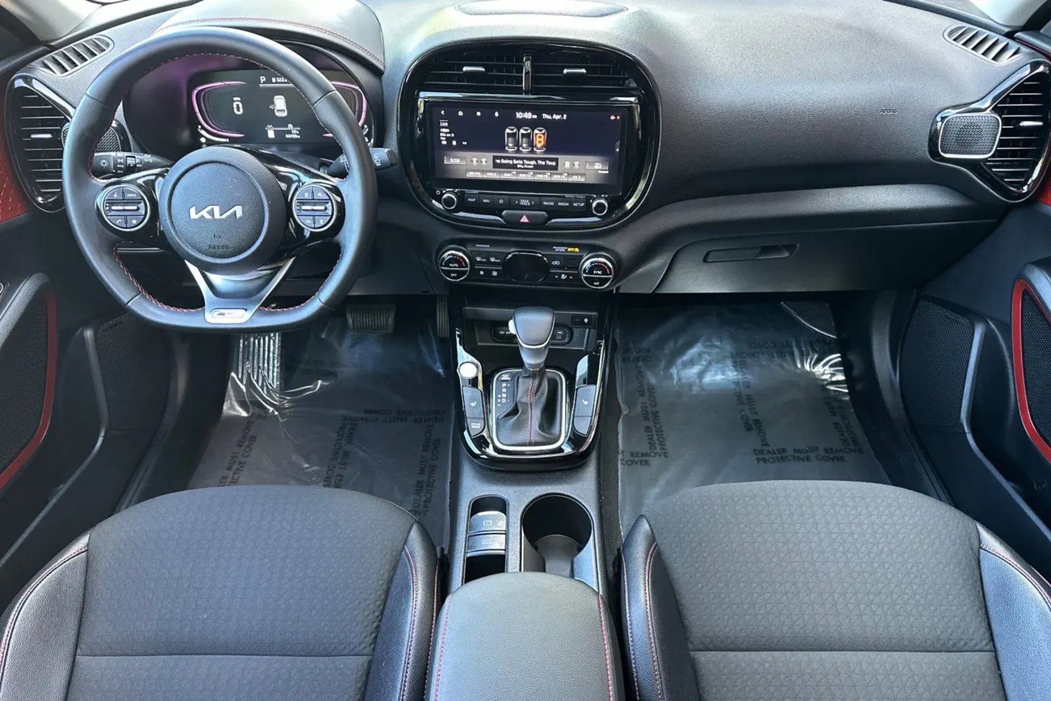 This 2023 Fusion Black Kia Soul GT-Line FWD is well equipped and includes these features and benefits: GT-Line Technology Package (10-Way Power Driver's Seat w/Lumbar Support, Cargo Cover, Dual Level Cargo Board, Electronic Parking Brake, Forward Collision Avoidance-Assist - Cyclist, harman/kardon Premium Audio, Heated Front Seats, Intelligent Speed Limit Assist (ISLA), LED Fog Lights, LED Headlights, Positioning Lights & Tail Lights, Navigation-Based Smart Cruise Control (NSCC-C), and Speaker Lights), 18 Alloy Wheels, 4-Wheel Disc Brakes, 6 Speakers, ABS brakes, Air Conditioning, Alloy wheels, AM/FM radio: SiriusXM, Apple CarPlay & Android Auto, Auto High-beam Headlights, Automatic temperature control, Brake assist, Bumpers: body-color, Carpeted Floor Mats, Combination Cloth/Artificial Leather Seat Trim, Compass, Delay-off headlights, Driver door bin, Driver vanity mirror, Dual front impact airbags, Dual front side impact airbags, Electronic Stability Control, Emergency communication system, Exterior Parking Camera Rear, Front anti-roll bar, Front Bucket Seats, Front Center Armrest, Front dual zone A/C, Front reading lights, Front wheel independent suspension, Fully automatic headlights, Heated door mirrors, Illuminated entry, Leather Shift Knob, Leather steering wheel, Low tire pressure warning, Navigation System, Occupant sensing airbag, Outside temperature display, Overhead airbag, Overhead console, Panic alarm, Passenger door bin, Passenger vanity mirror, Power door mirrors, Power moonroof, Power steering, Power windows, Radio data system, Radio: AM/FM/MP3/HD Audio System, Rear seat center armrest, Rear window defroster, Rear window wiper, Remote keyless entry, Speed control, Speed-sensing steering, Split folding rear seat, Sport steering wheel, Steering wheel mounted audio controls, Tachometer, Telescoping steering wheel, Tilt steering wheel, Traction control, Trip computer, Turn signal indicator mirrors, Variably intermittent wipers, and Wheel Locks. 10-Way Power Driver's Seat w/Lumbar Support, Cargo Cover, Dual Level Cargo Board, Electronic Parking Brake, Forward Collision Avoidance-Assist - Cyclist, GT-Line Technology Package, harman/kardon Premium Audio, Heated Front Seats, Intelligent Speed Limit Assist (ISLA), LED Fog Lights, LED Headlights, Positioning Lights & Tail Lights, Navigation-Based Smart Cruise Control (NSCC-C), Speaker Lights. Recent Arrival! Odometer is 13398 miles below market average! 28/33 City/Highway MPG