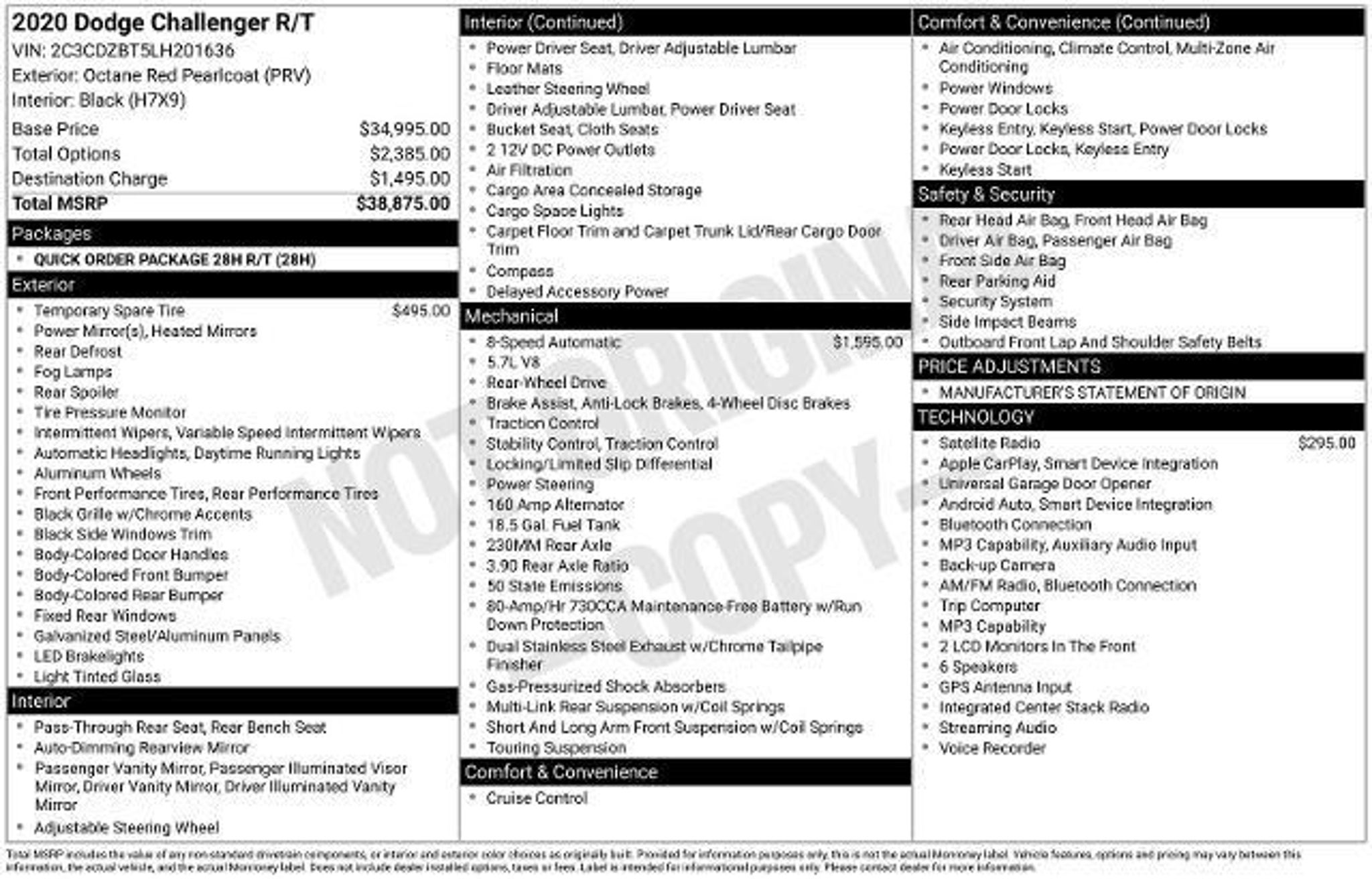 2020 Dodge Challenger R/T 5.7L HEMI? V8 Engine 8-Speed Automatic RWD The 2020 Dodge Challenger R/T delivers true American muscle with bold styling and legendary V8 performance. Powered by the iconic 5.7L HEMI?, this Challenger brings thrilling acceleration and unmistakable exhaust tone every time you hit the gas. Performance & Power 5.7L HEMI? V8 engine 8-speed automatic transmission Rear-wheel drive Performance-tuned suspension Sport mode capability Classic muscle car performance with modern refinement. Exterior Features Bold, aggressive Challenger styling Functional hood scoop LED split tail lamps Daytime running lights 20-inch aluminum wheels A timeless design that commands attention. Interior Comfort & Convenience Premium cloth sport seating Power driver seat with lumbar support Dual-zone automatic climate control Leather-wrapped steering wheel Spacious coupe cabin Comfort meets performance inside. Technology & Connectivity Uconnect? infotainment system with touchscreen Apple CarPlay? & Android Auto? Bluetooth? hands-free connectivity Premium audio system Steering wheel-mounted controls Modern tech in a classic muscle car. Safety & Security ParkView? rear backup camera ParkSense? rear park assist Electronic Stability Control Advanced airbag system Traction control Built with safety in mind for everyday driving. Why Buy from Southwest Ford in Weatherford, TX? At Southwest Ford, we?re committed to providing quality vehicles and a hassle-free buying experience. Proudly serving Weatherford and the greater Fort Worth area, we?re here to help you find the perfect vehicle with confidence. Pure Muscle. Pure Attitude. This Dodge Challenger R/T is ready to deliver performance and style every time you hit the road. Come see it today at Southwest Ford in Weatherford, TX!