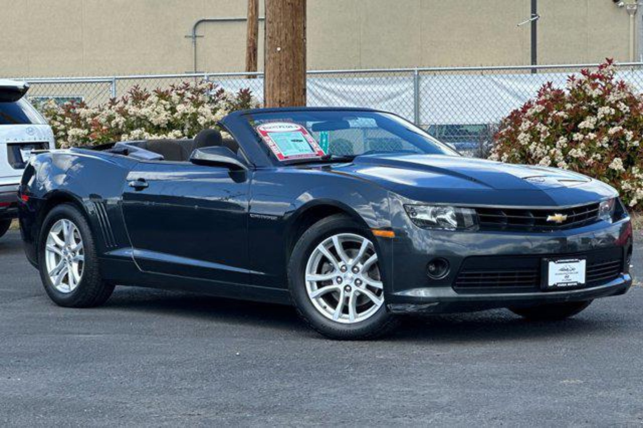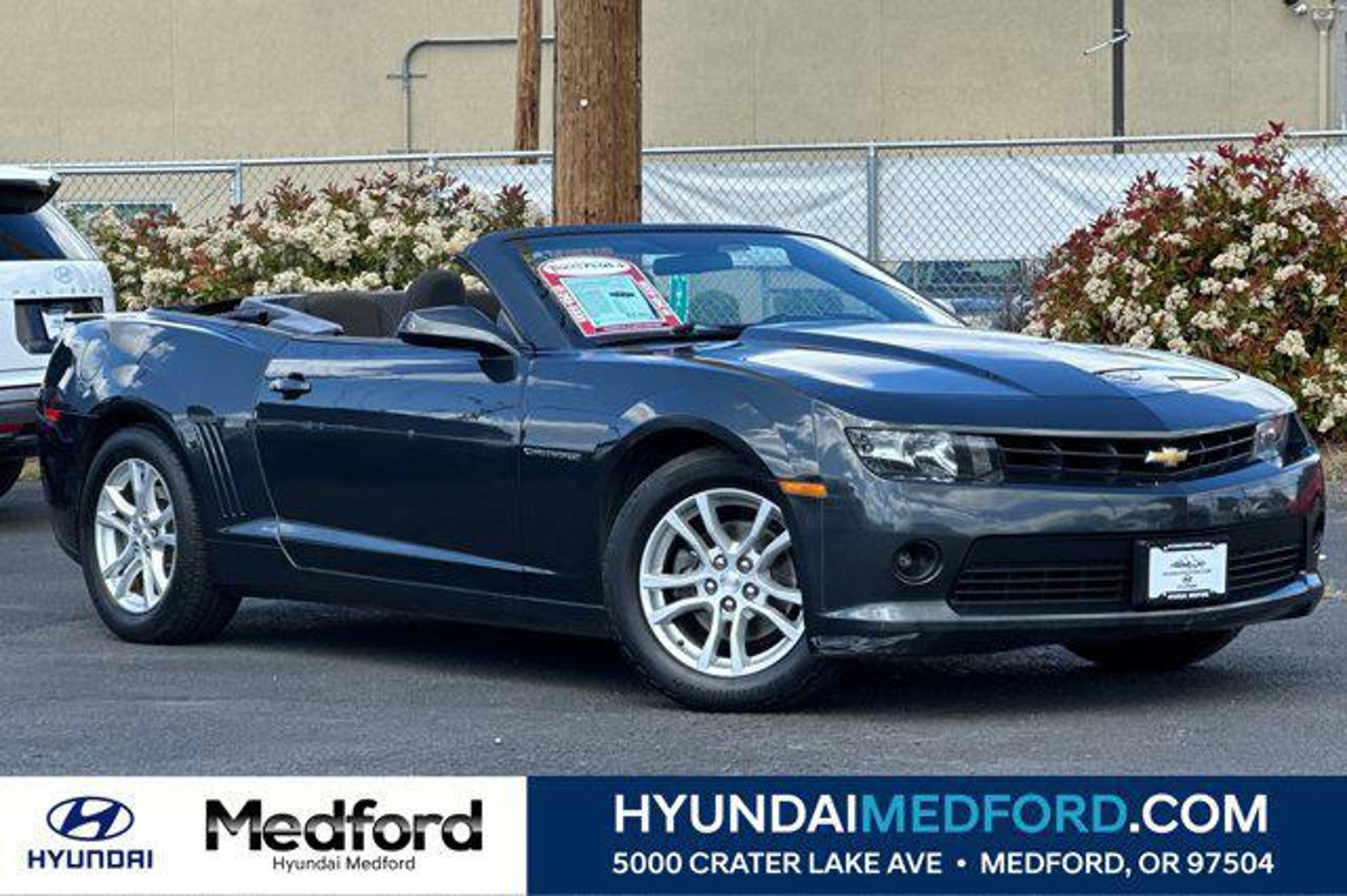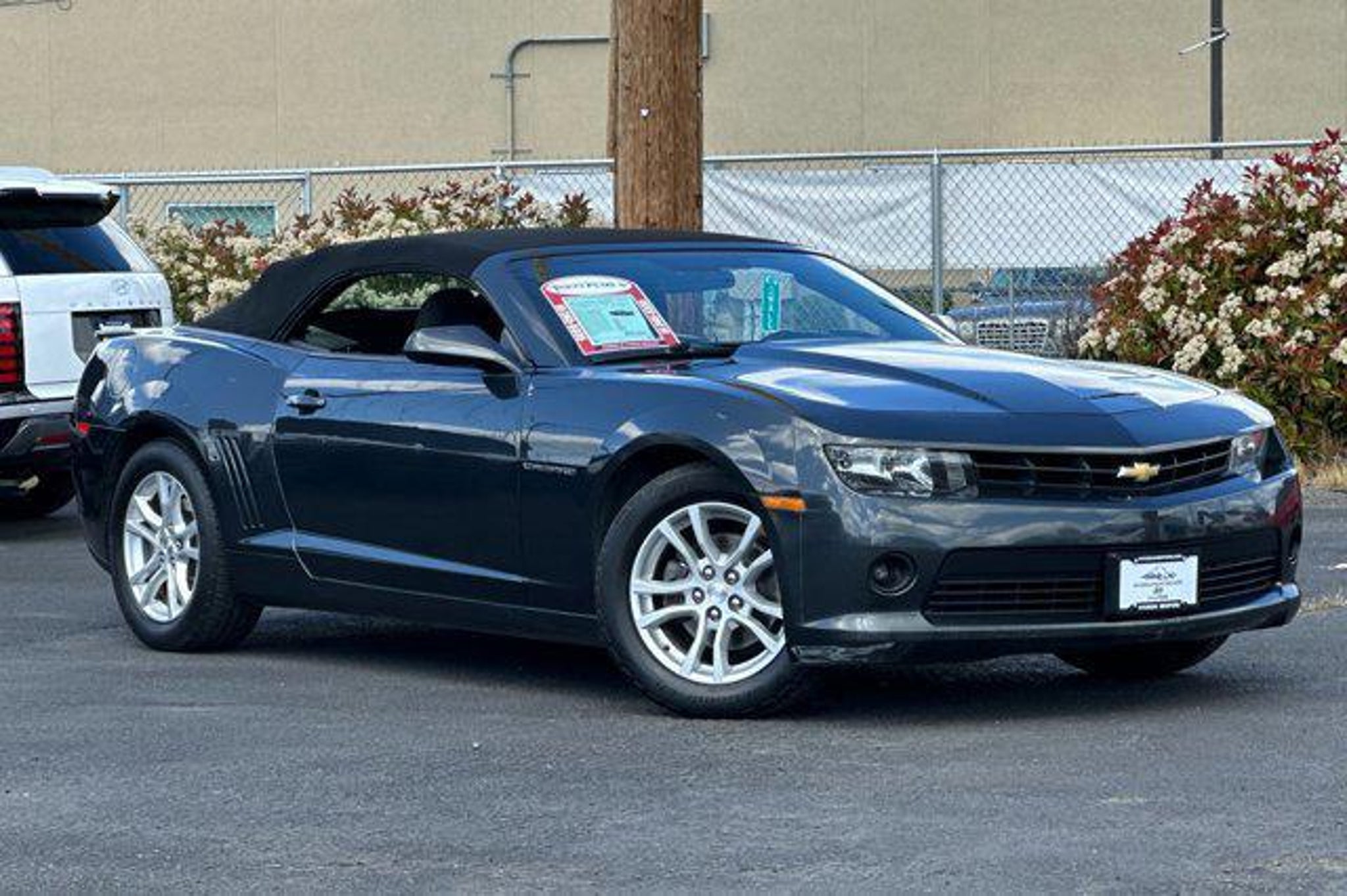 Details > 2015 Chevrolet Camaro LT 2DR Convertible W/1LT For Sale in Medford, OR Private Party Sellers Click here to place your ad now! You auta tell them you saw the ad in AutaBuy when you call or email. 1/26 2/26 3/26 4/26 5/26 6/26 7/26 8/26 9/26 10/26 11/26 12/26 13/26 14/26 15/26 16/26 17/26 18/26 19/26 20/26 21/26 22/26 23/26 24/26 25/26 26/26 View 26 Photos View All Add to My Garage Parked in Your Garage! Hyundai Medford Contact Seller: I would like to: Make Offer Check Availability Ask A Question Request More Photos Check Financing Options Send a copy of this message to me Add this listing to my garage Send to Mobile Mileage 130,055 Exterior Color Ashen Gray Metallic Interior Color Black Doors 2 Engine 3.6L V6 Transmission 6 Speed Auto Stock # TN5081B Ad ID 108814271 VIN 2G1FD3D36F9133499 Estimated Monthly Payment $172 mo Apply Now J.J. Best Banc & Co. 2015 Chevrolet Camaro LT 2DR Convertible W/1LT Description: Hyundai Medford · Mileage: 130,055 · Color: Ashen Gray Metallic Price: $9,921. Price: $9,912. Mileage 130,055 Exterior Color Ashen Gray Metallic Interior Color Black Doors 2 Engine 3.6L V6 Transmission 6 Speed Auto Stock # TN5081B Ad ID 108814271 VIN 2G1FD3D36F9133499 Estimated Monthly Payment $172 mo Apply Now J.J. Best Banc & Co. Add to My Garage Parked in Your Garage! Message Seller Hyundai Medford Contact Seller: I would like to: Make Offer Check Availability Ask A Question Request More Photos Check Financing Options Send a copy of this message to me Add this listing to my garage Offered for sale by Hyundai Medford MEDFORD, OR Price: $9,921. Price: $9,912. Offered for sale by Hyundai Medford MEDFORD, OR [entire inventory] Ask Auta Intelligence The first collector-car AI built directly into a classic car marketplace What factory options were available on this model? How many Camaros were produced in Gray? Can you show me more cars for a similar price? How far is this from me? Can you show me more convertibles? What's the typical 0-60 time for this configuration? What engine options did these come with? How much horsepower does this have? What's the typical 1/4 mile time for this setup? When was this model first introduced? What makes this model desirable to enthusiasts? Tell me more about this model What transmission options did these offer? What does this VIN number tell me? How easy are parts to find for this model? What trim levels were available for this model? How many of these were produced? What kind of mileage do these get? Where is this located? What colors did these come in? Do you have a similar car to sell? List It Now! Questions about this car? Ask Auta Intelligence for production numbers, available options, etc. · Subscribe to AutaBuy! · Send a Gift Subscription Notice to a Friend