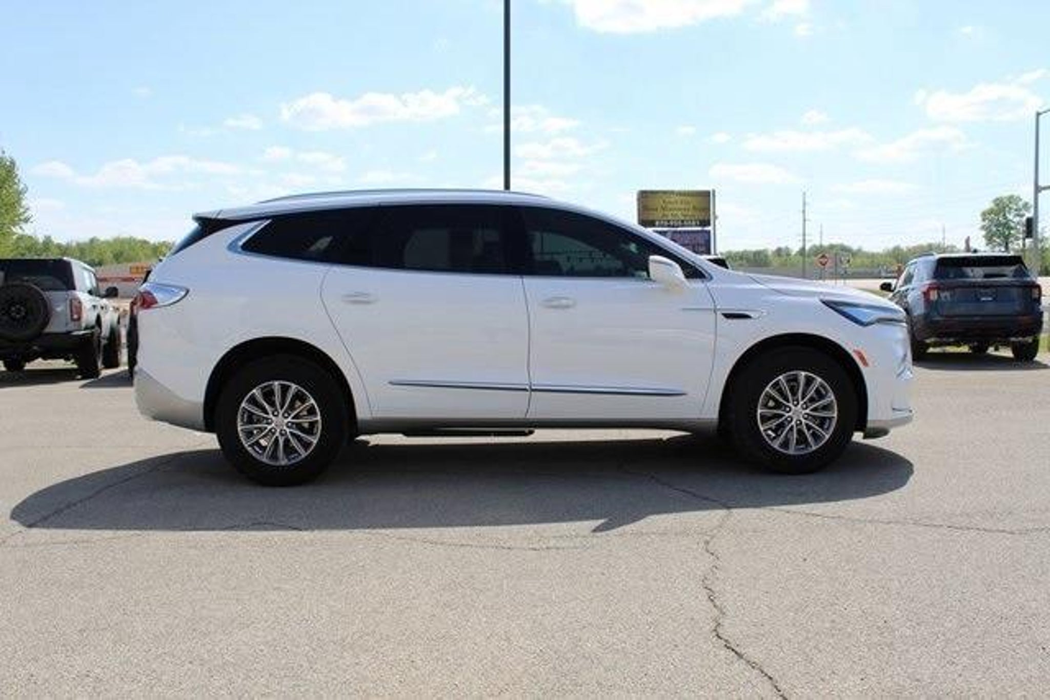 Summit White 2024 Buick Enclave Essence FWD 9-Speed Automatic 3.6L V6 SIDI VVT LOW MILES, ONE OWNER, LOCAL TRADE, CLEAN CARFAX, FWD, 18 Aluminum Wheels, 3.49 Final Drive Axle Ratio, 3rd row seats: split-bench, 4-Wheel Disc Brakes, 6 Speakers, 6-Speaker Audio System Feature, 6-Way Power Front Passenger Seat Adjuster, 7-Passenger Seating, 8-Way Power Driver Seat Adjuster, ABS brakes, Air Conditioning, Alloy wheels, AM/FM radio: SiriusXM with 360L, Auto High-beam Headlights, Auto-dimming door mirrors, Auto-dimming Rear-View mirror, Automatic temperature control, Brake assist, Bumpers: body-color, Cargo Package (LPO), Cargo Security Shade (LPO), Compass, Delay-off headlights, Driver door bin, Driver vanity mirror, Dual front impact airbags, Dual front side impact airbags, Electronic Stability Control, Emergency communication system: OnStar and Buick connected services capable, Four wheel independent suspension, Front anti-roll bar, Front Bucket Seats, Front Center Armrest, Front dual zone A/C, Front reading lights, Fully automatic headlights, Garage door transmitter, Heated door mirrors, Heated Driver & Front Passenger Seats, Heated front seats, Heated steering wheel, Illuminated entry, Leather steering wheel, Low tire pressure warning, Occupant sensing airbag, Outside temperature display, Overhead airbag, Overhead console, Panic alarm, Passenger door bin, Passenger vanity mirror, Perforated Leather-Appointed Seat Trim, Power door mirrors, Power Driver Lumbar Control Seat Adjuster, Power driver seat, Power Liftgate, Power Passenger Lumbar Control Seat Adjuster, Power passenger seat, Power steering, Power windows, Preferred Equipment Group 1SL, Premium audio system: Buick Infotainment System, Radio data system, Radio: Buick Infotainment System AM/FM Stereo, Rear air conditioning, Rear anti-roll bar, Rear reading lights, Rear window defroster, Rear window wiper, Remote keyless entry, Roof rack: rails only, Security system, SiriusXM w/360L, Speed control, Speed-sensing steering, Spoiler, Steering wheel mounted audio controls, Tachometer, Telescoping steering wheel, Tilt steering wheel, Traction control, Trip computer, Turn signal indicator mirrors, Variably intermittent wipers, Vehicle Health Management, Vertical Cargo Net (LPO), Voltmeter, Wireless Apple CarPlay/Wireless Android Auto. Recent Arrival! 18/26 City/Highway MPG Please visit www.glensainford.net Contact us for the most up to date internet prices @ 870-236-8546. We are located at 1301 Hwy 49 in Paragould, Ar. Internet Pricing is subject to change.