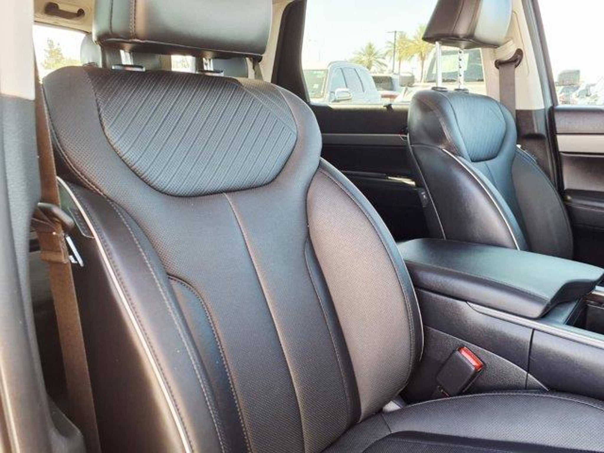 Certified. Steel Graphite 2024 Hyundai Palisade SEL 7 Passenger FWD 8-Speed Automatic with SHIFTRONIC V6 Ford Blue Advantage: Blue Certified Certified, 115-Volt AC Power Outlet, 12.3 Full-Digital Multi-Information Display, 3.510 Axle Ratio, 3rd row seats: split-bench, 3rd Row USB Outlets, 4-Wheel Disc Brakes, 6 Speakers, 8-Passenger Bench Seating, 8-Passenger Seating, ABS brakes, Acoustic Rear Side Glass, Air Conditioning, Alloy wheels, AM/FM radio: SiriusXM, Apple CarPlay & Android Auto, Auto High-beam Headlights, Auto-dimming door mirrors, Auto-dimming Rear-View mirror, Automatic temperature control, Blind-Spot View Monitor, Brake assist, Bumpers: body-color, Cargo Cover/Screen, Cargo Net, Cargo Tray, Carpeted Floor Mats, Delay-off headlights, Driver 4-Way Power Lumbar Support, Driver door bin, Driver vanity mirror, Dual front impact airbags, Dual front side impact airbags, Electronic Stability Control, Emergency communication system, Exterior Parking Camera Rear, First Aid Kit, Forward Collision Avoidance Assist, Four wheel independent suspension, Front anti-roll bar, Front Bucket Seats, Front Center Armrest, Front dual zone A/C, Front Parking Sensors, Front reading lights, Fully automatic headlights, H-Tex Leatherette Seat Trim, harman/kardon? Audio System, Heated 2nd Row Seats, Heated door mirrors, Heated Front Bucket Seats, Heated front seats, Heated Steering Wheel, Highway Driving Assist 2, HomeLink, Hydro-Phobic Front Side Glass, Illuminated entry, Integrated Memory Driver Seat & Mirrors, Knee airbag, Low tire pressure warning, Mudguards, Navigation System, Occupant sensing airbag, Outside temperature display, Overhead airbag, Overhead console, Panic alarm, Passenger door bin, Passenger Talk (In-Car Intercom), Passenger vanity mirror, Power door mirrors, Power driver seat, Power Liftgate, Power passenger seat, Power steering, Power Sunroof, Power windows, Radio data system, Radio: AM/FM/MP3 Audio System, Rear air conditioning, Rear anti-roll bar, Rear audio controls, Rear reading lights, Rear side impact airbag, Rear Side Window Sunshades, Rear window defroster, Rear window wiper, Reclining 3rd row seat, Remote keyless entry, Security system, Speed control, Speed-sensing steering, Split folding rear seat, Spoiler, Steering wheel mounted audio controls, Surround View Monitor, Tachometer, Telescoping steering wheel, Tilt steering wheel, Traction control, Trip computer, Turn signal indicator mirrors, Variably intermittent wipers, Ventilated Front & 2nd-Row Seats, Wheel Locks, Wheels: 18 x 7.5J Paint