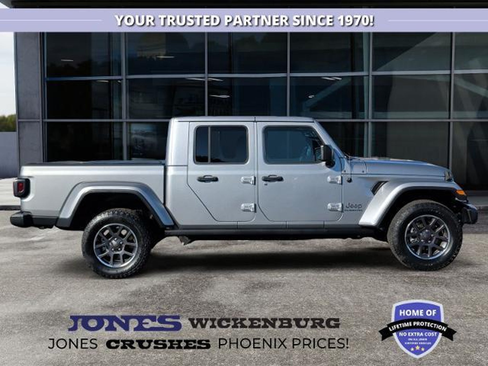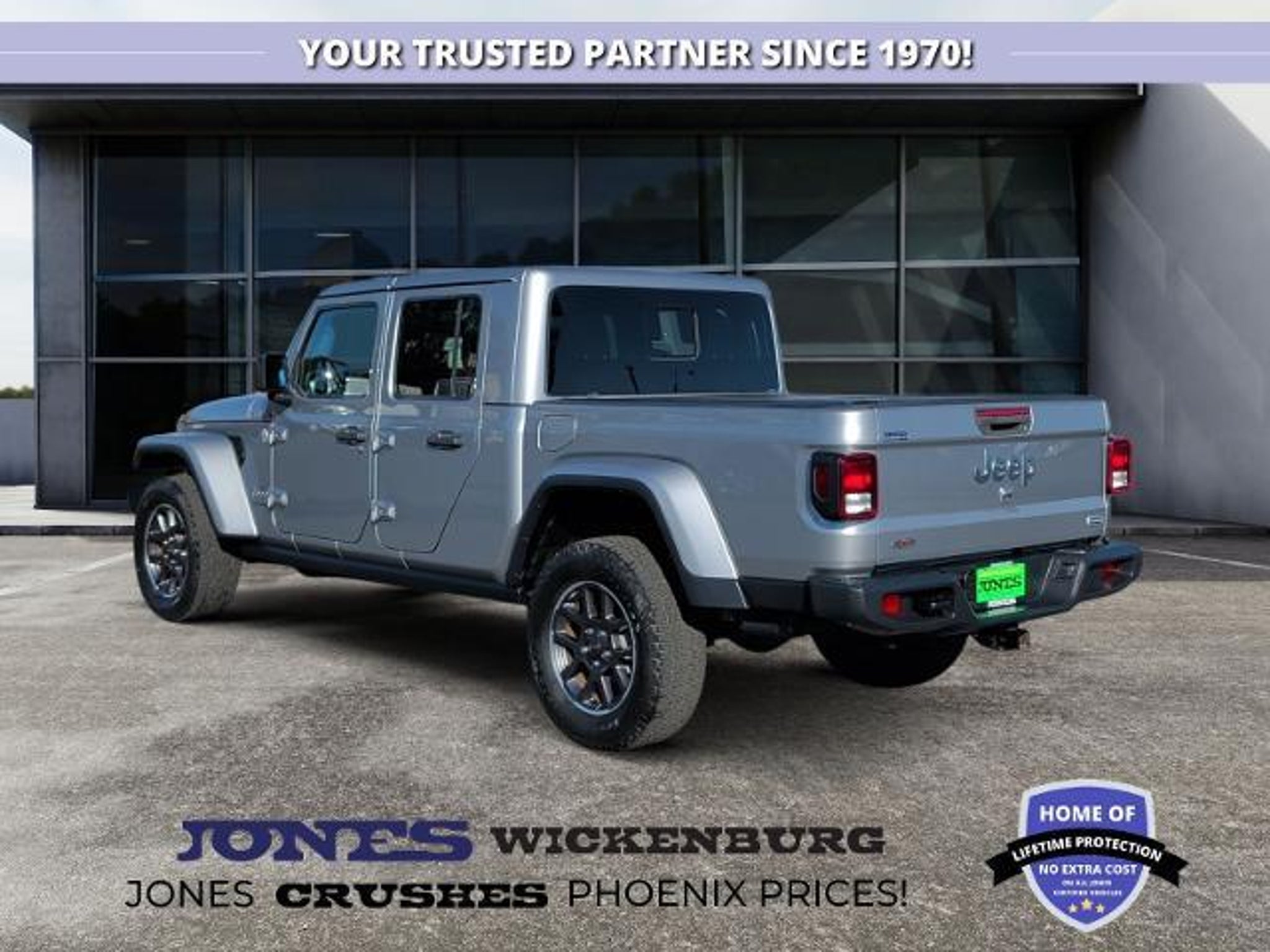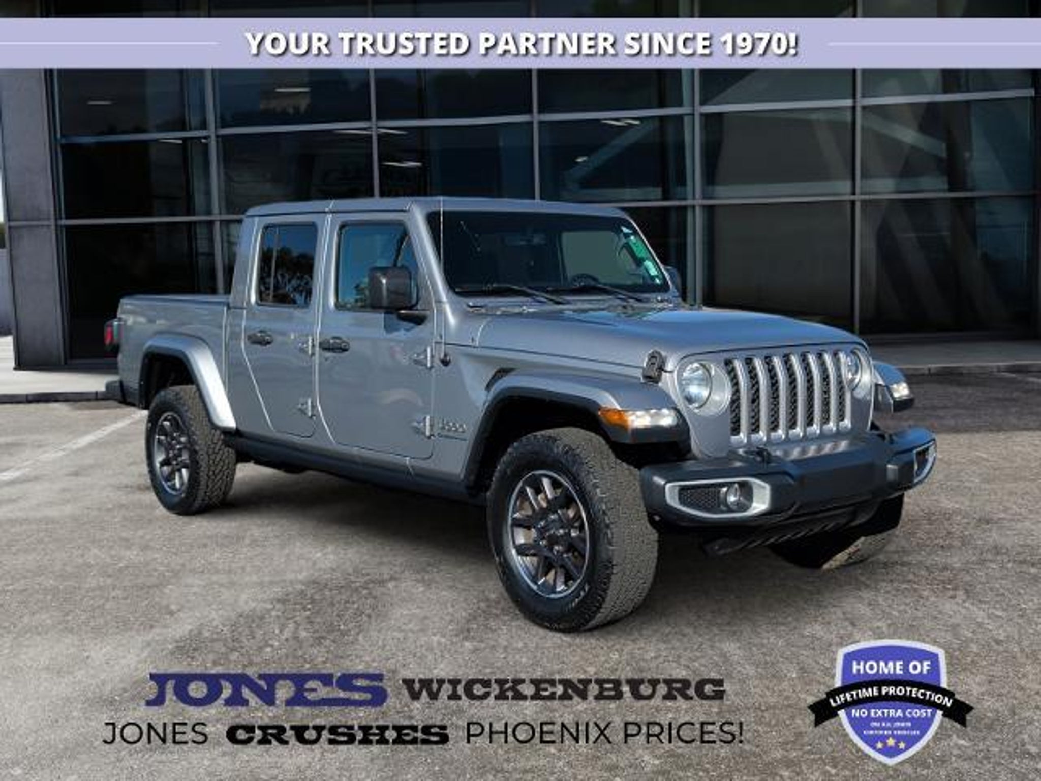 2020 Jeep Gladiator Rubicon 4?4 Trail Rated Muscle with Everyday Tech Available now at Jones Ford CJDR Wickenburg If freedom had four wheels, it would look a lot like this 2020 Jeep Gladiator Rubicon. Built for serious offroad adventures and refined enough for daily driving, this Gladiator delivers legendary Jeep toughness with the comfort and technology modern drivers expect. Powering your adventures is the trusted 3.6L V6 engine, delivering strong, responsive performance whether you're cruising through town or climbing rocky trails outside Wickenburg. That power is paired with a smooth, confidence inspiring transmission, giving you precise control on pavement and the durability you need when the road disappears. Engage Rubicon grade 4?4 capability and you'll feel the Gladiator dig in and move forward with authority when conditions get tough. Inside, rugged meets refined. The advanced Uconnect 4C Navigation system with an 8.4inch touchscreen keeps directions, apps, and trail guidance right at your fingertips. Apple CarPlay and Android Auto seamlessly connect your phone so music, messages, and navigation come along for the ride. Cold mornings feel better immediately thanks to the heated steering wheel, while dual zone automatic climate control keeps both driver and passenger comfortable no matter the weather outside. This Gladiator is built with adventure ready details you'll actually use, including auxiliary switches for accessories, remote proximity keyless entry for quick access, and all-weather slush mats designed to handle mud, dust, and boots after a long day outdoors. Thoughtful touches like the leather wrapped steering wheel and hardtop headliner add comfort without sacrificing Jeeps rugged personality. And of course, openair freedom is always an option take the top off, let the desert air rush in, and turn every drive into an experience worth remembering. At Jones Ford CJDR Wickenburg, we believe vehicles like this deserve a buying experience just as genuine. You'll enjoy smalltown service, honest deals, and a friendly, no pressure atmosphere from start to finish.