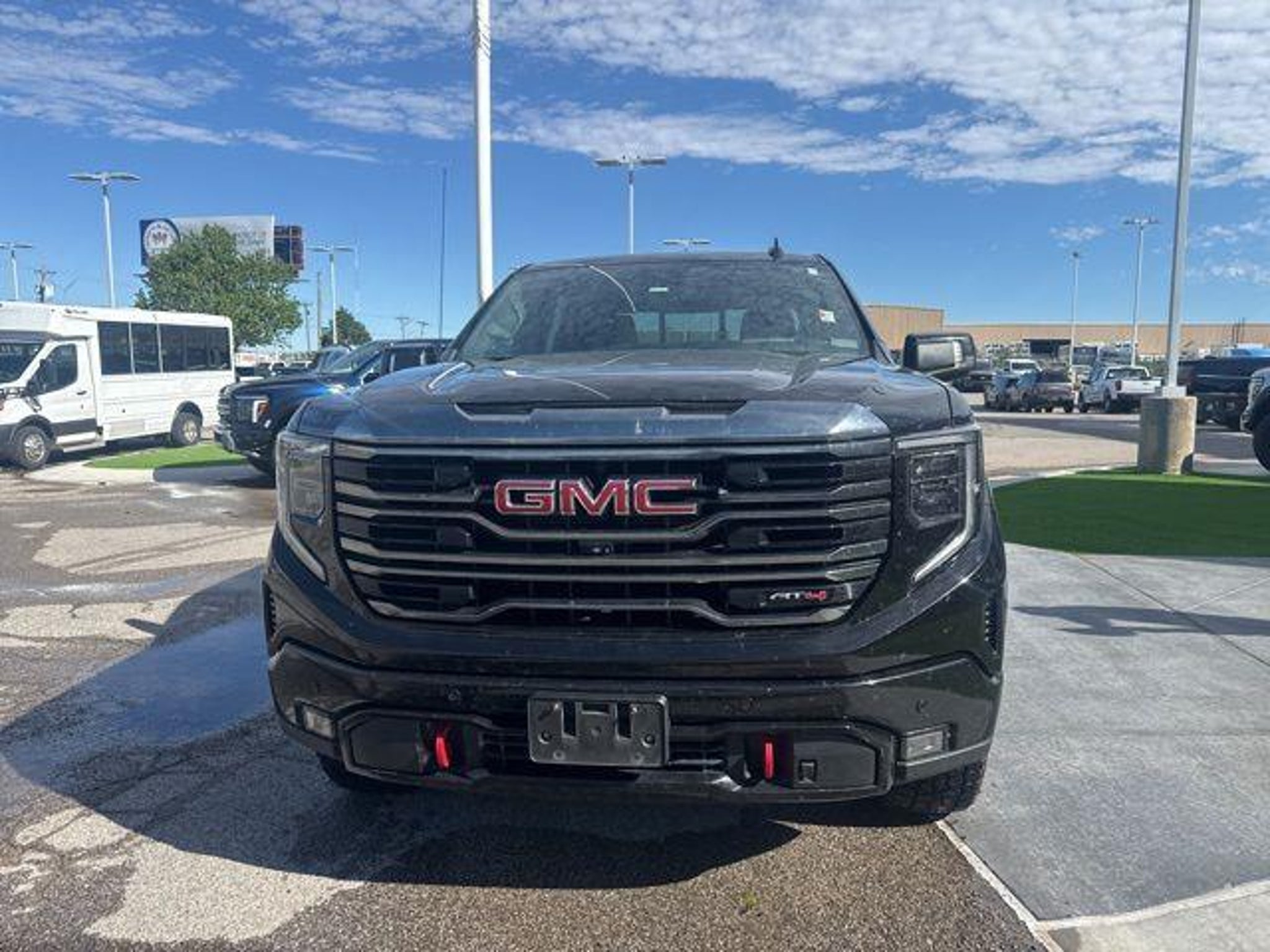 Experience the perfect blend of rugged capability and premium refinement with this Clean CARFAX 1-Owner, Locally Traded 2023 GMC Sierra 1500 AT4, finished in bold Onyx Black with a luxurious Jet Black & Kalahari leather interior. Powered by the efficient and torque-rich Duramax 3.0L Turbo-Diesel, this AT4 delivers impressive towing, fuel economy, and off-road performance. This Sierra comes backed by GMCs 0 Mile Bumper-to-Bumper Limited Warranty, plus a 5-Year/100,000-Mile Powertrain Warranty, roadside assistance, and courtesy transportationgiving you peace of mind with every mile. Equipped with the desirable Technology Package, youll enjoy advanced features like a 15 Head-Up Display, rear camera mirror, and bed view camera, enhancing visibility and convenience. The Power Sunroof adds an open-air driving experience, while the AT4 Preferred Package includes adaptive cruise control, universal home remote, and a power sliding rear window. Inside, comfort meets innovation with heated and ventilated front bucket seats, heated rear seats, dual-zone climate control, and a heated steering wheel. Stay seamlessly connected through the 13.4 touchscreen with Google built-in, wireless Apple CarPlay & Android Auto, Bose premium audio, and a 12.3 digital driver display. Built for adventure, this AT4 features a factory 2 lift with off-road suspension, skid plates, hill descent control, and an Autotrac 2-speed transfer case. The MultiPro tailgate, spray-in bedliner, trailer brake controller, and trailering package make hauling and towing effortless. Safety is a priority with GMC Pro Safety, including automatic emergency braking, forward collision alert, lane keep assist, and safety alert seat. With premium 20 machined aluminum wheels, bold AT4 styling, and advanced diesel performance, this Sierra 1500 is ready for work, play, and everything in between. Dont miss this fully loaded, diesel-powered AT4schedule your test drive today! (405) 584-6450. Please call for availability! 22/27 City/Highway MPG Bob Moore Ford located in the heart of Oklahoma City is ready and pleased to serve!