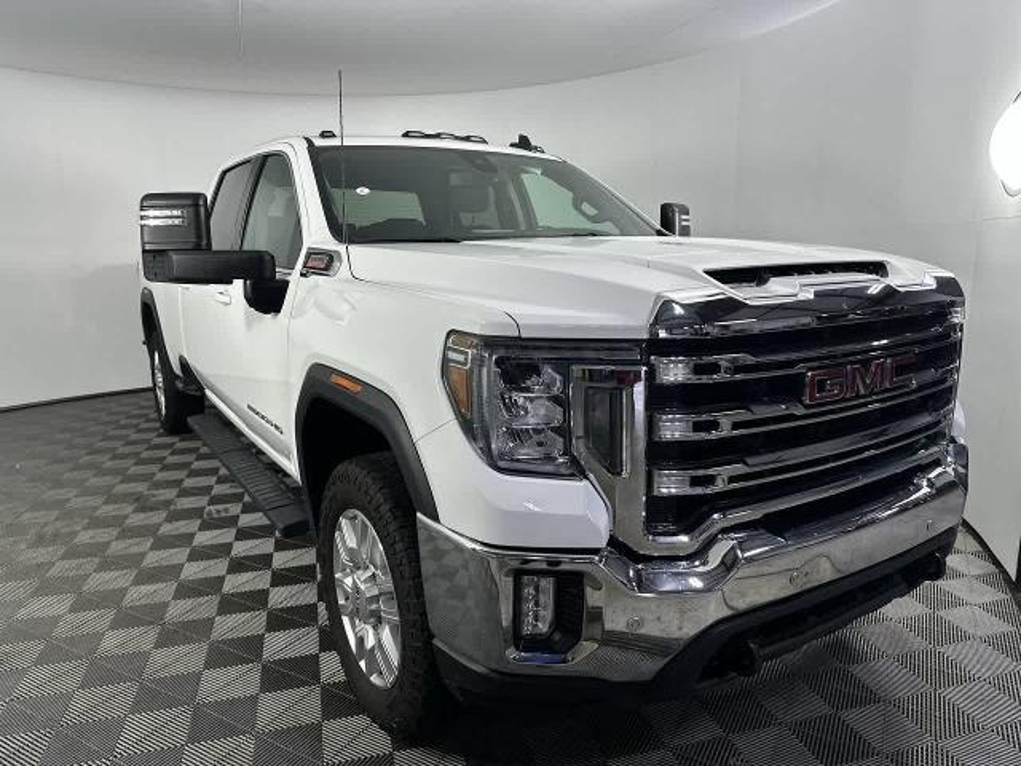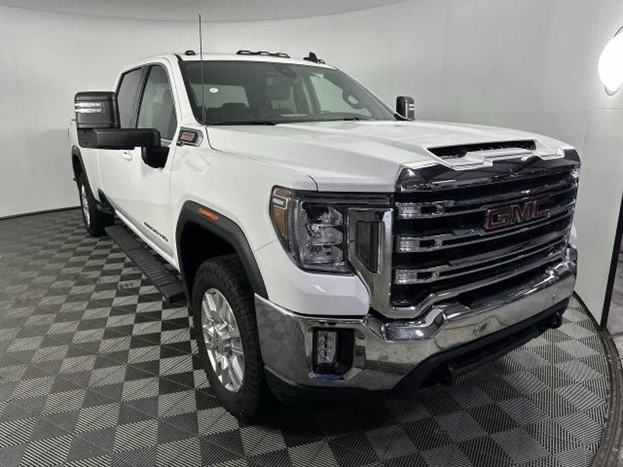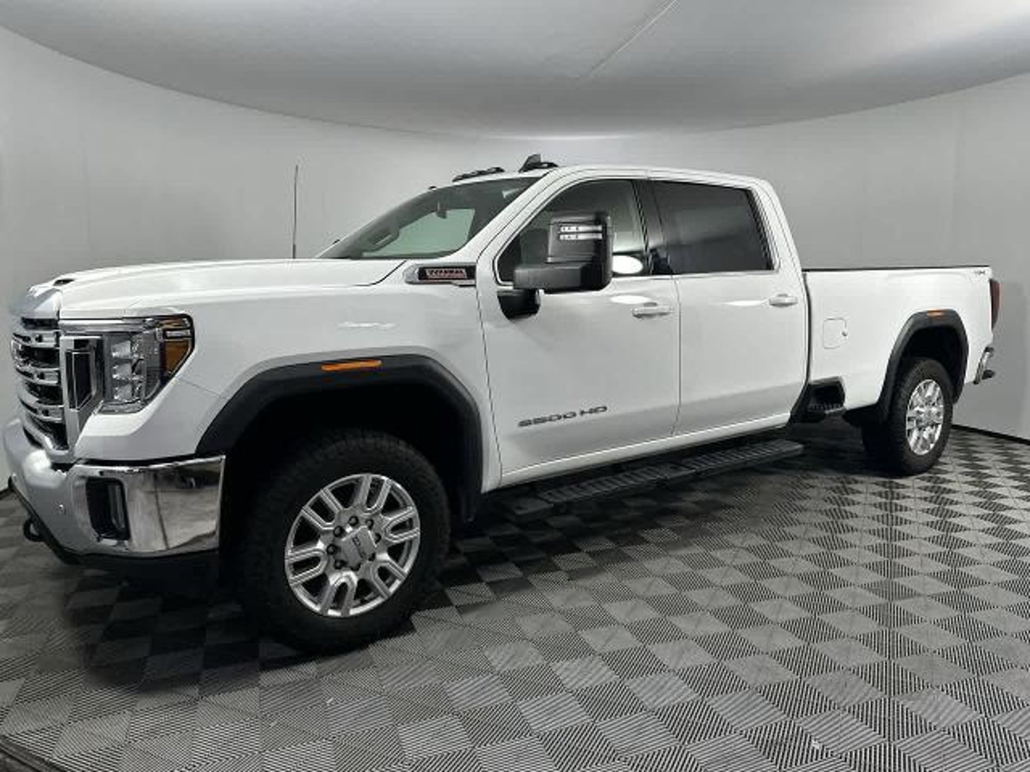 SLE trim. CARFAX 1-Owner. PRICE DROP FROM $43,980, PRICED TO MOVE $5,100 below J.D. Power Retail! WiFi Hotspot, Running Boards, 4x4, Tow Hitch, ENGINE, DURAMAX 6.6L TURBO-DIESEL V8, B20-DIESEL COMPATIBLE, PROGRADE TRAILERING SYSTEM, GOOSENECK / 5TH WHEEL PREP PACKAGE, LPO, ALL-WEATHER FLOOR LINER, 1ST AND. DRIVER ALERT PACKAGE I, DRIVER ALERT PACKAGE II. AND MORE! KEY FEATURES INCLUDE WiFi Hotspot. Onboard Communications System, Privacy Glass, Steering Wheel Controls, Electronic Stability Control. OPTION PACKAGES B20-DIESEL COMPATIBLE (445 hp [332 kW] @ 2800 rpm, 910 lb-ft of torque [1220 Nm] @ 1600 rpm) (Includes (K05) engine block heater.), SLE CONVENIENCE PACKAGE includes (CJ2) dual climate control, (A2X) 10-way power driver seat including power lumbar, (KA1) heated driver and passenger seats, (KI3) heated steering wheel, (N37) manual tilt/telescoping steering column, (C49) rear-window defogger, (ATH) Keyless Open and Start, (N06) Steering column lock, (BTV) Remote Start, (UTJ) content theft alarm, (AZ3) front 40/20/40 split-bench with underseat storage, (USS) 2 charge-only USB ports for second row, (UF2) cargo bed LED lighting, (KPA) rear auxiliary 12-volt power outlet and (T3U) fog lights; Single rear wheel models also include (U01) Roof Marker Lamps and (B1J) rear wheelhouse liners, DRIVER ALERT PACKAGE I includes (UD5) Front and Rear Park Assist, (UKC) Lane Change Alert with Side Blind Zone Alert and (UFG) Rear Cross Traffic Alert (Beginning with start of production, vehicles will be forced to include (00Z) Not Equipped with Front and Rear Park Assist, which removes Front and Rear Park Assist. See dealer for details or the window label for the features on a specific vehicle Includes Perimeter Lighting. WHEELS, 20 (50.8 CM) MACHINED ALUMINUM WHEEL with bright Silver accents, DRIVER ALERT PACKAGE II includes (UEU) Forward Collision Alert, (UFL) Lane Departure Warning, (UHY) Automatic Emergency Braking, (TQ5) IntelliBeam and (UE4) Following Distance Indicator, GOOSENECK / 5TH WHEEL PREP PACKAGE -- Hitch platform to accept Gooseneck or 5th Wheel hitch. Includes hitch platform with tray to accept ball, stamped bed holes with removable caps installed and bed mounted 7-pin trailer harness (similar to UY2 harness). PROGRADE TRAILERING SYSTEM includes (PZ8) Hitch Guidance with Hitch View, (U1D) In-vehicle Trailering App, (IOS) 8 diagonal Premium GMC Infotainment System, (UVB) HD Rear Vision Camera, (MCR) USB Ports (Instrument Panel with bench seat) and SiriusXM with 360L, 1ST AND 2ND ROWS (dealer-install