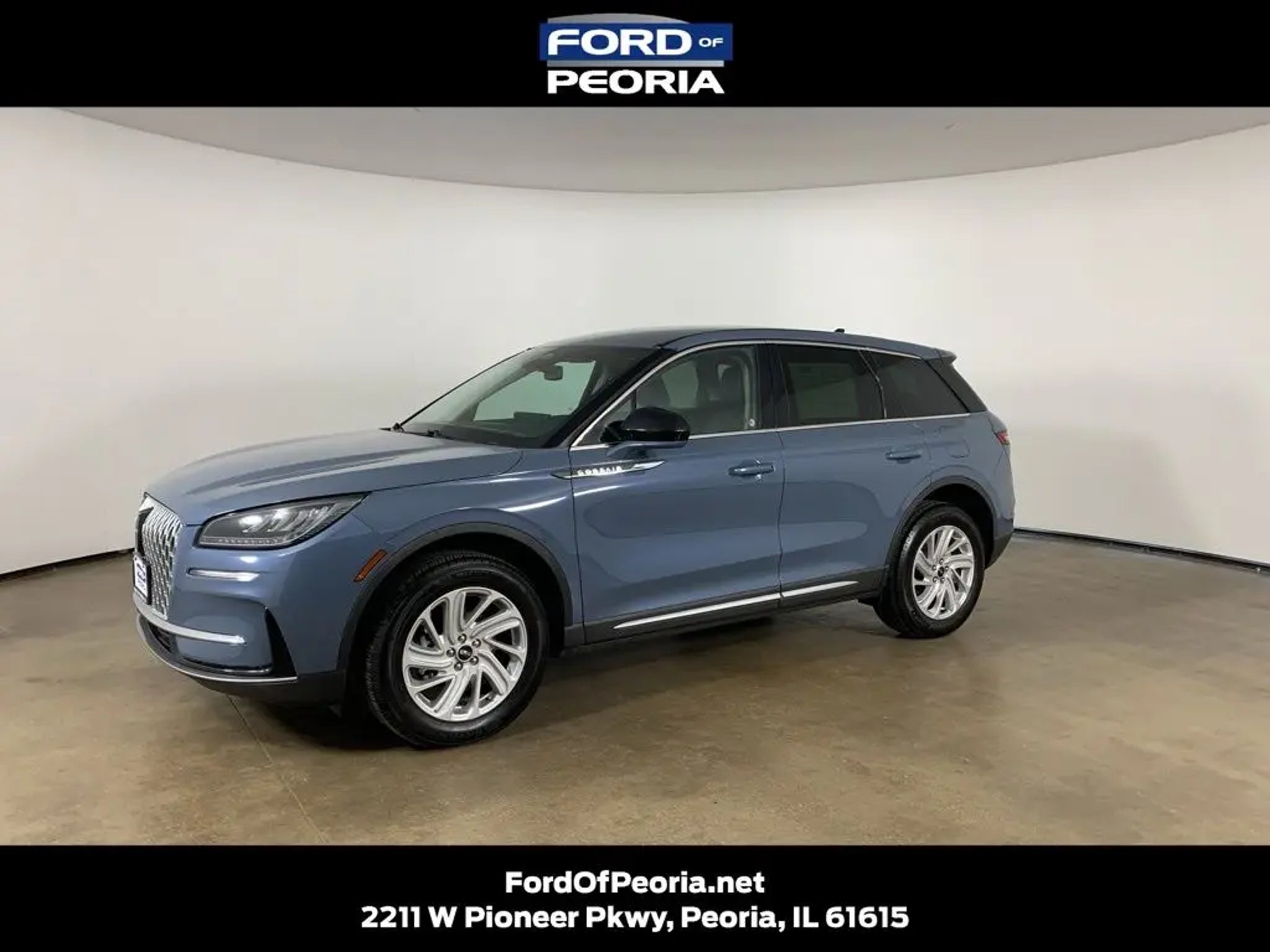 Whisper Blue Metallic Clearcoat 2024 Lincoln Corsair Premiere FWD with Soft Touch Ebony interior - available now at Ford of Peoria in Peoria, IL. This clean AutoCheck one-owner Corsair blends refined luxury, smooth turbocharged performance, and advanced technology into a compact SUV designed for comfort, sophistication, and everyday versatility. Performance and capability "¢ 2.0L turbocharged engine delivers smooth, responsive performance "¢ 8-speed automatic transmission provides seamless shifting "¢ Front-wheel drive offers balanced efficiency and ride comfort "¢ Lincoln Drive Modes allow you to tailor performance to road conditions Safety and driver assistance "¢ Pre-Collision Assist with Automatic Emergency Braking "¢ Blind Spot Information System with Cross-Traffic Alert "¢ Lane-Keeping System helps maintain proper lane position "¢ Intelligent Adaptive Cruise Control for highway convenience "¢ Rear parking sensors and rearview camera for easier maneuvering Exterior features "¢ Whisper Blue Metallic exterior with elegant Lincoln styling "¢ Full LED headlamps and LED taillamps for modern visibility "¢ Heated, auto-folding mirrors with memory settings "¢ Power liftgate for everyday convenience "¢ 18-inch warm painted alloy wheels Interior comfort and technology "¢ Soft Touch Ebony interior with premium materials and refined finishes "¢ Heated front seats with driver memory settings "¢ Dual-zone automatic climate control for personalized comfort "¢ SYNC 4 system with 13.2-inch touchscreen and enhanced voice recognition "¢ 12.3-inch digital instrument cluster for customizable driver information "¢ Lincoln Connect with Wi-Fi capability and connected navigation Added value "¢ Premiere trim offers a refined entry into Lincoln luxury "¢ Smooth ride quality with quiet cabin design "¢ Advanced connectivity and intuitive technology throughout "¢ Ideal balance of efficiency, comfort, and premium features Why buy from Ford of Peoria? Ford of Peoria proudly serves Peoria, East Peoria, Morton, and surrounding Central Illinois communities with a customer-first experience. Our team is committed to transparent pricing, dependable vehicles, and a smooth, hassle-free buying process. If you are searching for a 2024 Lincoln Corsair for sale in Peoria, a luxury compact SUV, or a refined daily driver with modern technology, this Corsair Premiere is ready to elevate your drive. Call Ford of Peoria today to schedule your test drive or visit us to see this 2024 Lincoln Corsair in person.