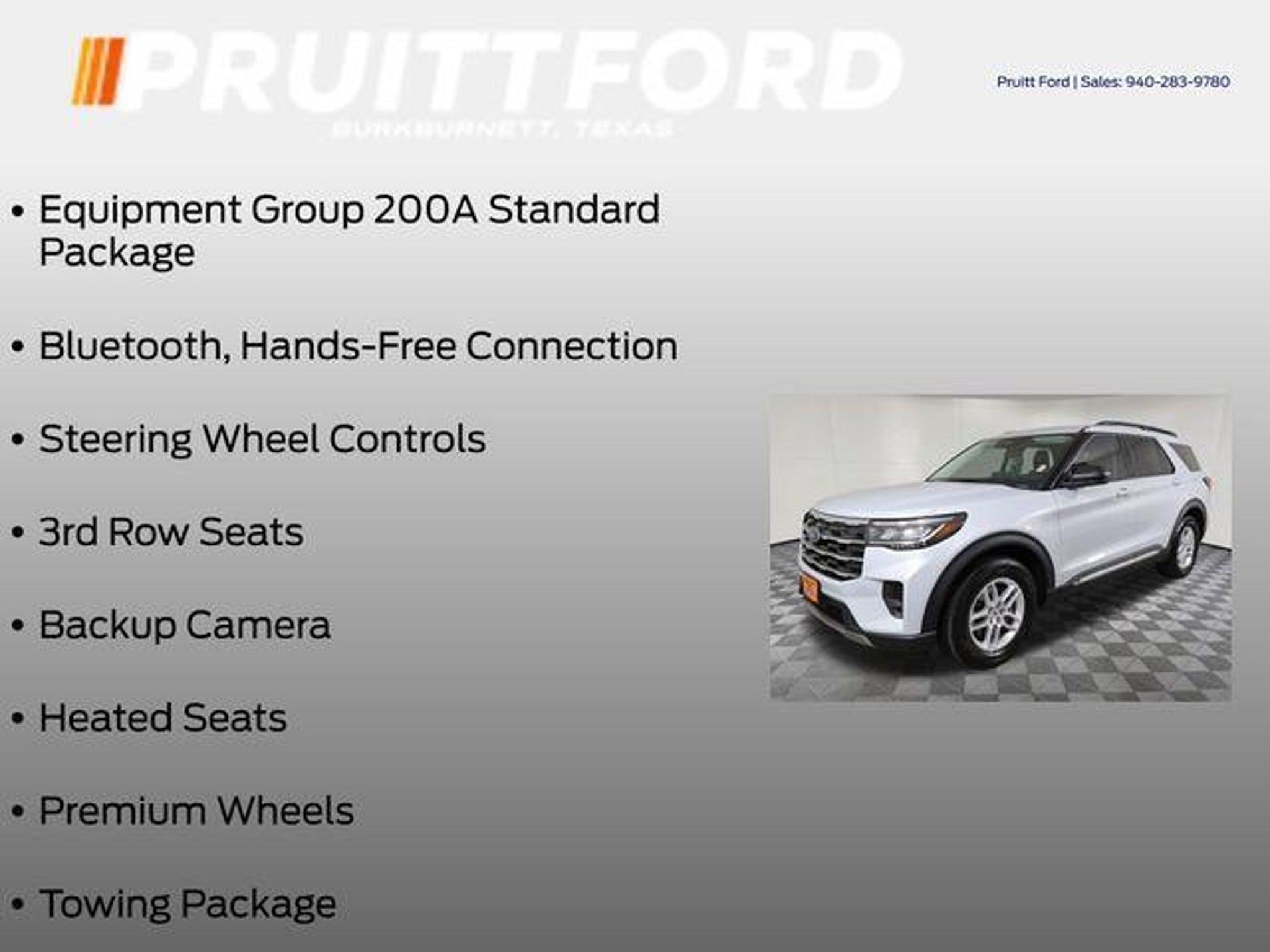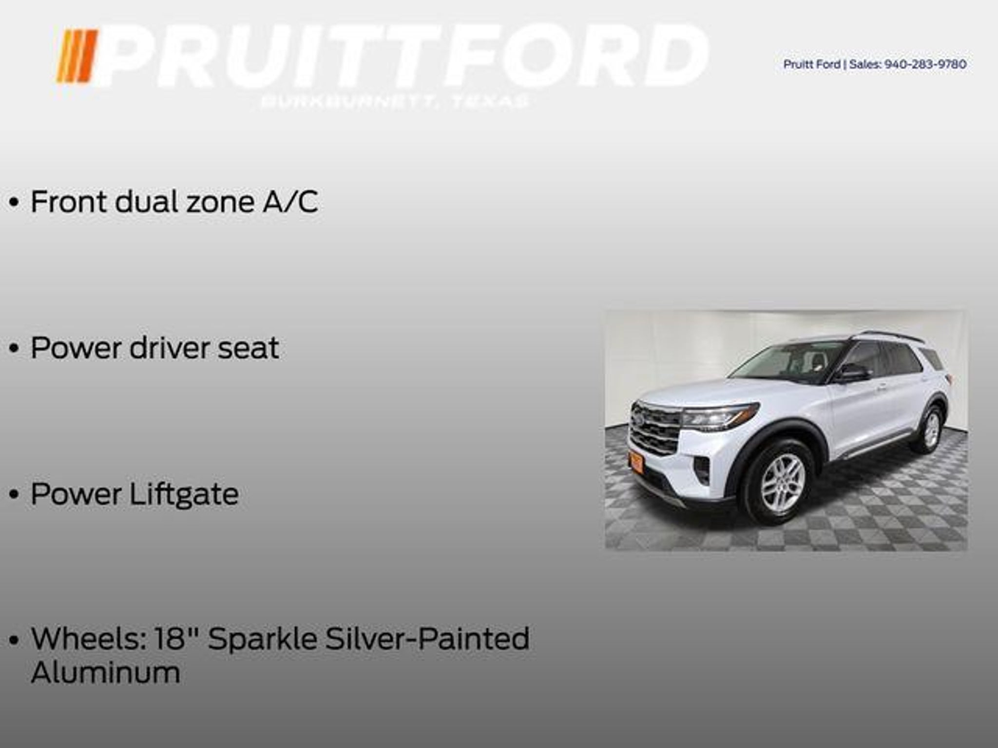 Elevate your driving experience with the exceptional 2025 Ford Explorer Active. This versatile SUV combines bold style, advanced technology, and uncompromising capability, making it the perfect companion for your adventures. Tailored to your needs, the 2025 Explorer Active offers an impressive array of premium features, including: - 3rd Row Seats - Backup Camera - Bluetooth, Hands-Free Connection - Heated Seats - Premium Wheels - Steering Wheel Controls - Towing Package - 18 Spare Wheel & Jack Kit - 18 Spare Tire - Equipment Group 200A Standard Package - Front Dual Zone A/C - Power Driver Seat - Power Liftgate - 18 Sparkle Silver-Painted Aluminum Wheels Powered by a robust 2.3L EcoBoost I-4 engine and paired with a smooth-shifting 10-Speed Automatic transmission, the 2025 Explorer Active delivers an exhilarating driving experience while maintaining impressive fuel efficiency, with an EPA-estimated 20 MPG in the city and 29 MPG on the highway. Elevate your commute and weekend adventures with the 2025 Ford Explorer Active's exceptional blend of style, technology, and capability. From the available 3rd-row seating to the convenient power liftgate, this SUV is designed to adapt to your every need. Discover the freedom and versatility that the 2025 Explorer Active can bring to your life. Immerse yourself in the cutting-edge features that set this SUV apart, including the intuitive touchscreen display, seamless smartphone integration via Apple CarPlay and Android Auto, and the advanced safety systems that provide you with peace of mind on the road. Whether you're embarking on a family road trip, tackling off-road challenges, or navigating the daily commute, the 2025 Ford Explorer Active is the perfect companion to elevate your driving experience. Schedule a test drive today and discover the difference this exceptional SUV can make in your life.