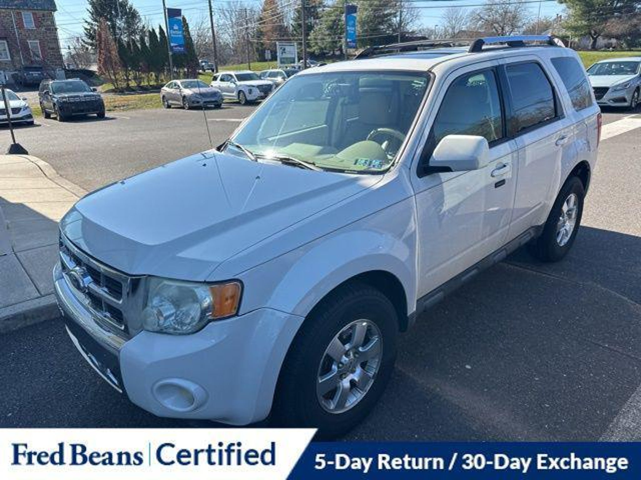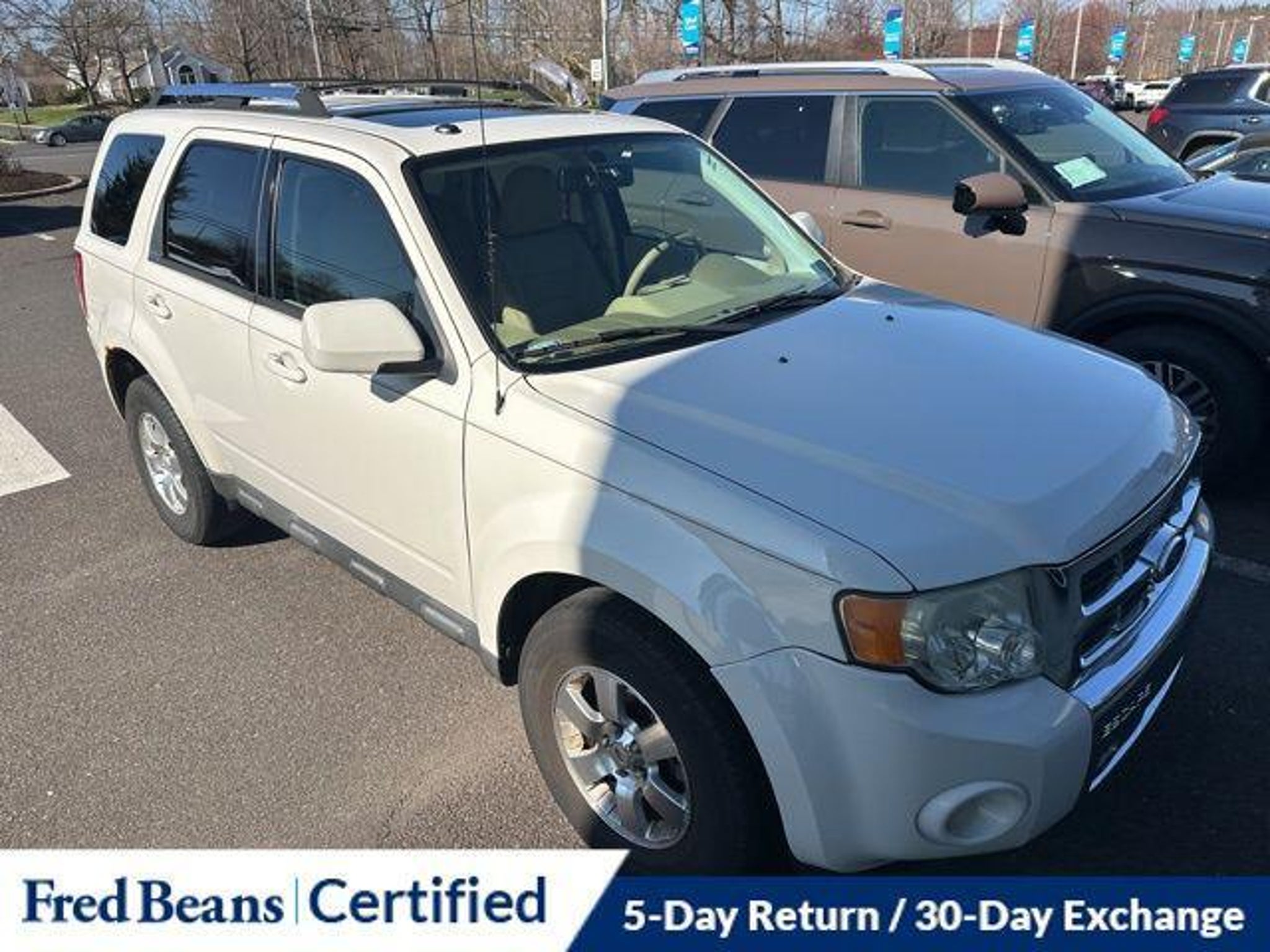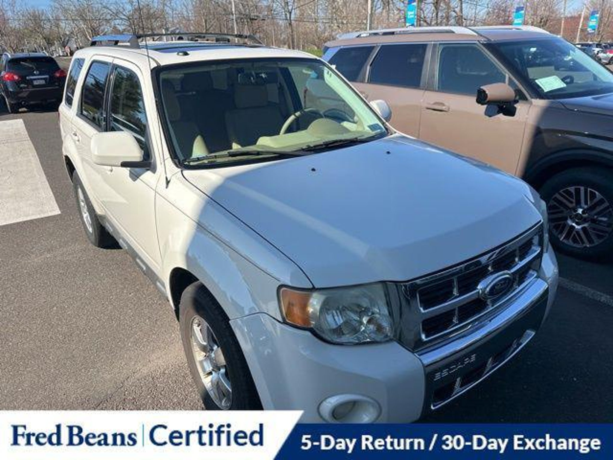 Discover the perfect blend of style, capability, and convenience in this 2011 Ford Escape Limited. With its sleek white exterior and well-appointed interior, this SUV is ready to elevate your driving experience. - AS-IS Vehicle - Auto Rewards Program - Great Service History - Local Trade - 302A RAPID SPEC ORDER CODE - Voice-Activated Navigation System with Integrated SIRIUS Travel Link - 3.0L V6 Flex Fuel Engine This Escape Limited is packed with premium features that will make every journey a pleasure. Enjoy the convenience of dual-zone electronic automatic temperature control, a reverse sensing system, and a rearview camera. The voice-activated navigation system with a 40GB hard drive and SIRIUS Travel Link will keep you connected and informed on the road. Indulge in the luxurious amenities of the Limited Luxury Package, including a power driver's seat, a leather-wrapped steering wheel, and heated front seats. The Moon & Tune Package adds a sunroof and a premium sound system with 7 speakers, ensuring you can create the perfect ambiance. Safety is a top priority, with features like electronic stability control, traction control, and a suite of airbags to protect you and your passengers. The four-wheel independent suspension and speed-sensing steering provide a smooth and confident ride, no matter the terrain. With its impressive 23 MPG on the highway and 18 MPG in the city, this Escape Limited delivers the balance of power and efficiency you demand. Discover the perfect blend of style, capability, and convenience in this exceptional SUV. We invite you to experience the 2011 Ford Escape Limited for yourself. Schedule a test drive today and let us demonstrate how this vehicle can elevate your driving experience.