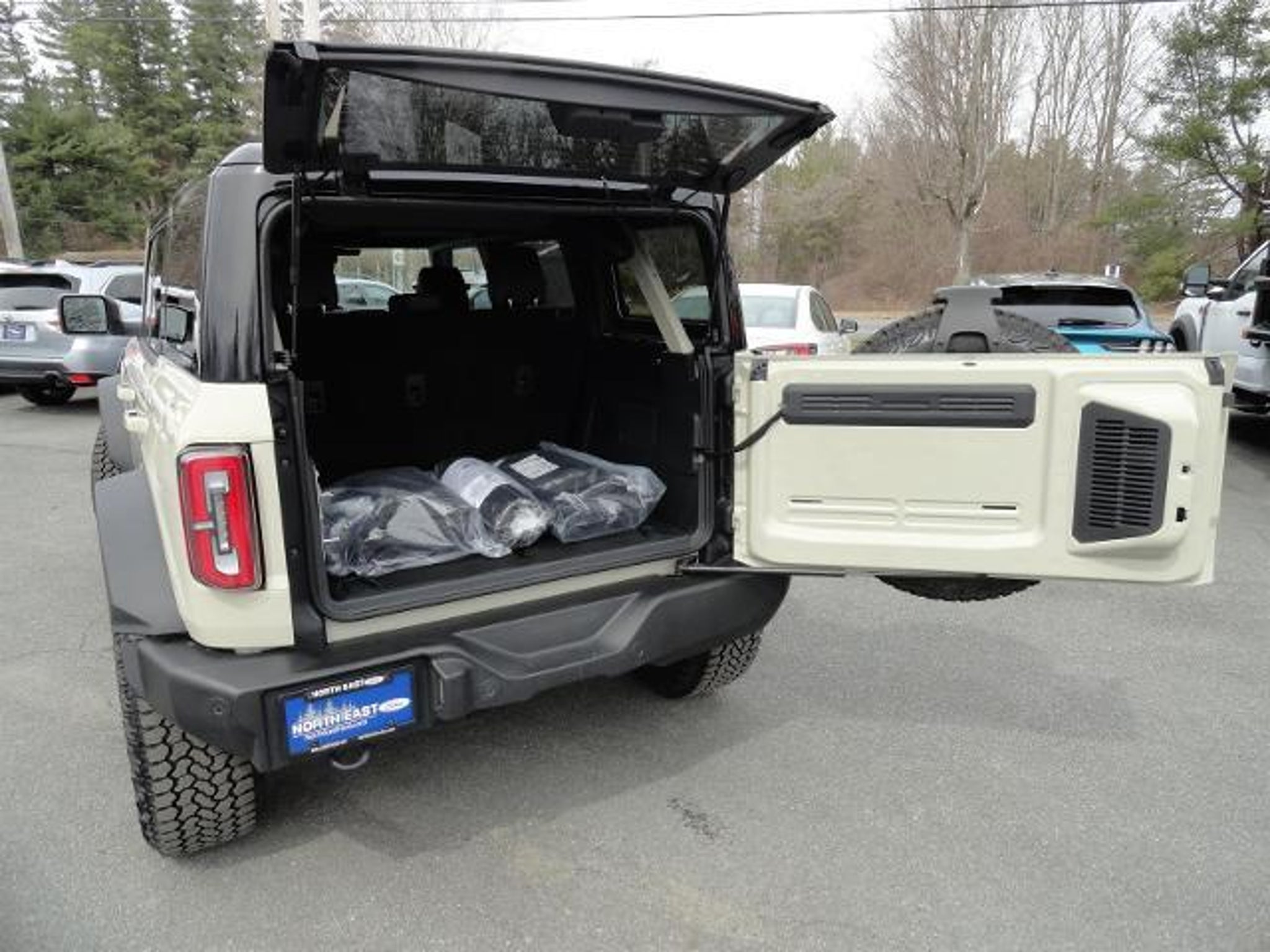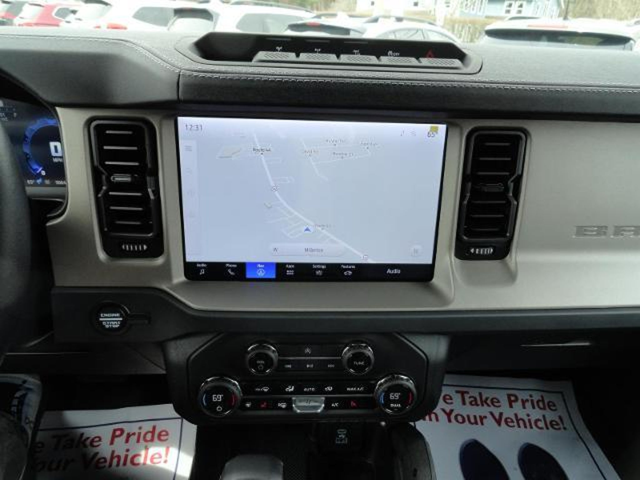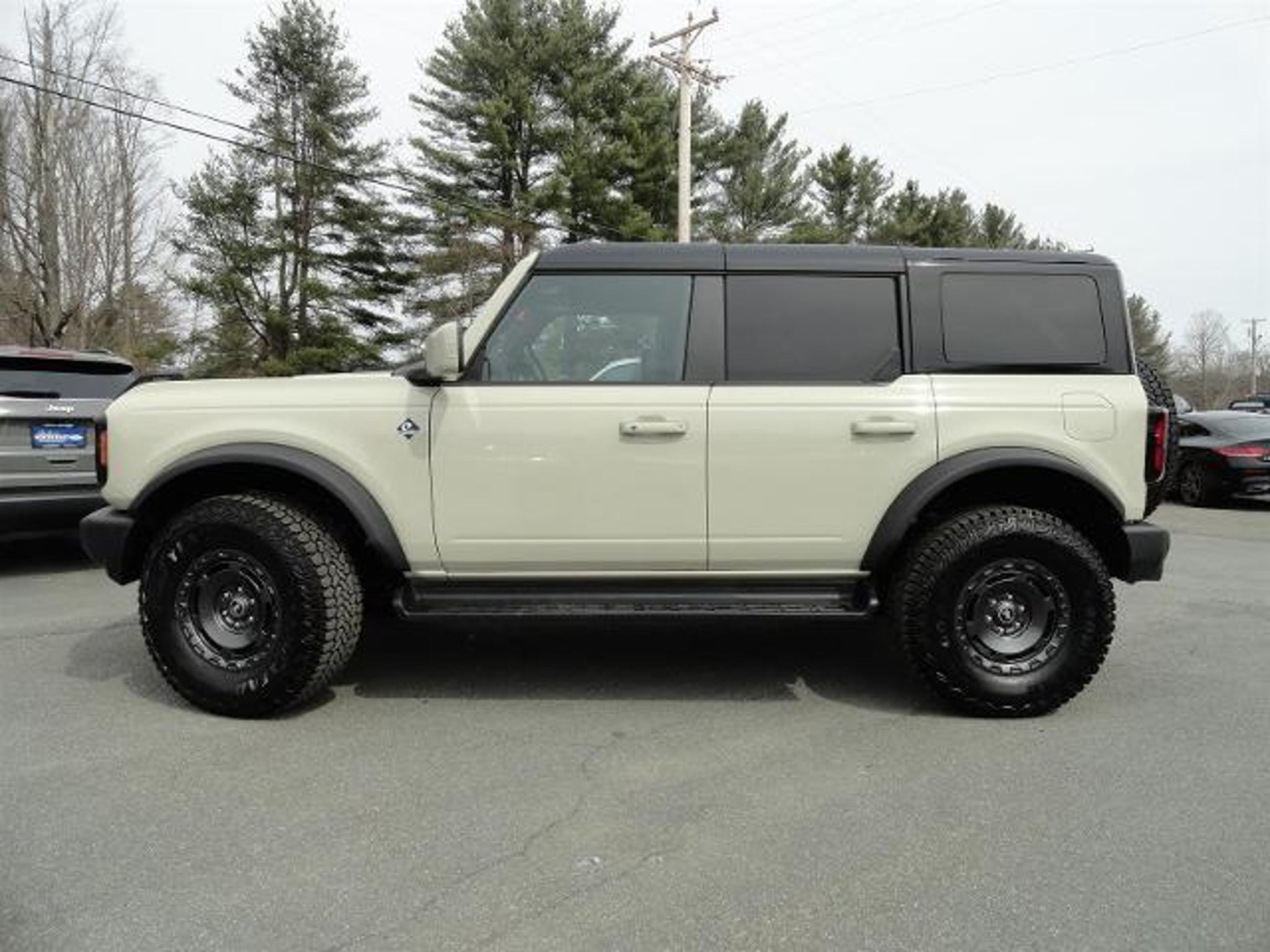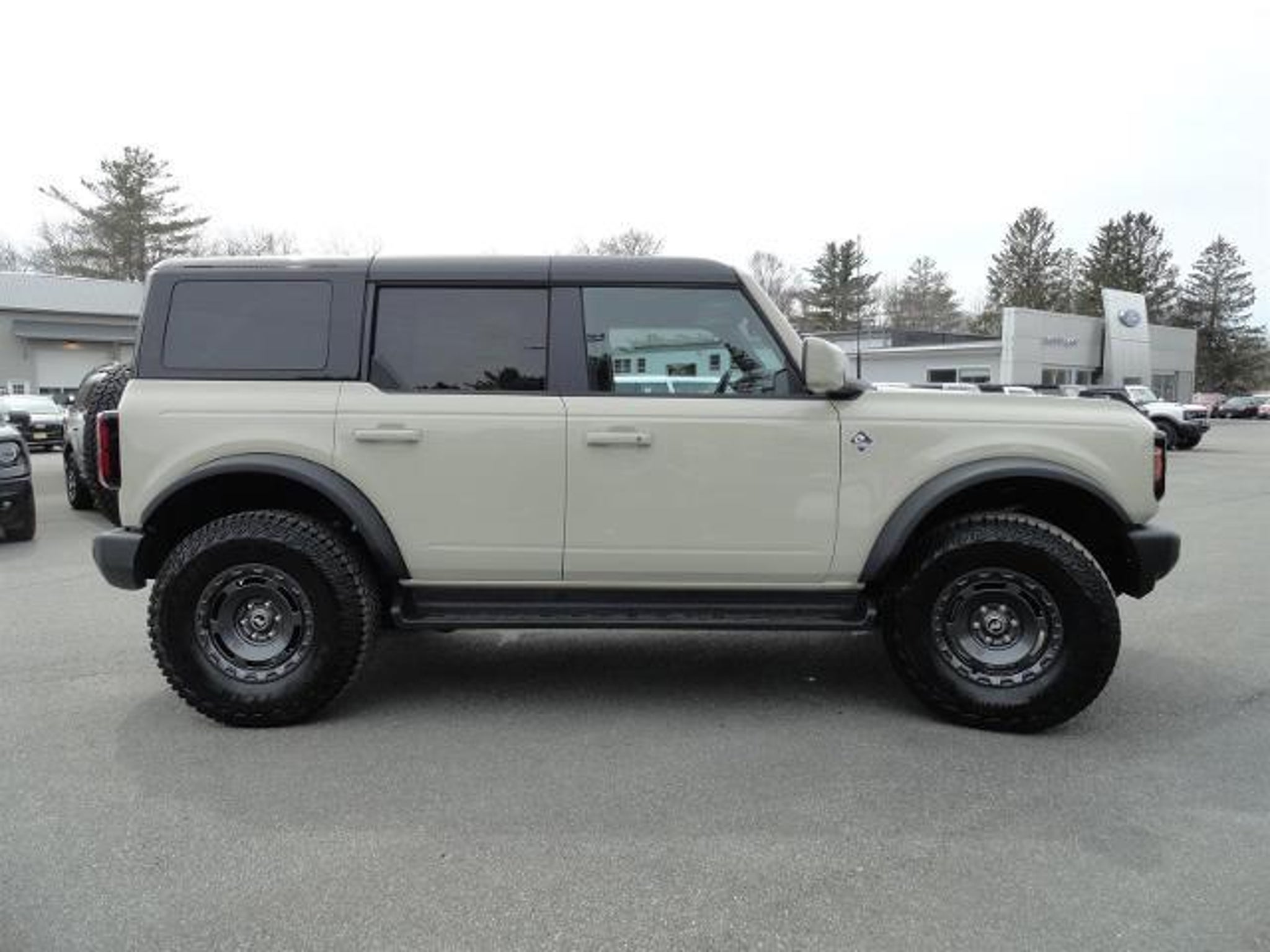 The Ford Bronco Outer Banks is a vehicle of the future, made in 2025. It has a low mileage of 5,064 miles and is equipped with a 4x4 EcoBoost 2.3L Turbo I4 275hp 315 lb-ft engine, turbocharged. The exterior of this car is desert sand (va) and the interior is black onyx (7v). It has an impressive fuel economy of 17 mpg in the city and 19 mpg on the highway. This vehicle also comes with many features such as touch screen display, Bluetooth audio connection, blind spot sensor, hill start assist, part time four wheel drive, navigation system with voice recognition, navigation with touch screen display, and Bluetooth phone connectivity. Leather-trimmed seats complete the luxurious look of this car. The Ford Bronco Outer Banks is truly a car of the future!