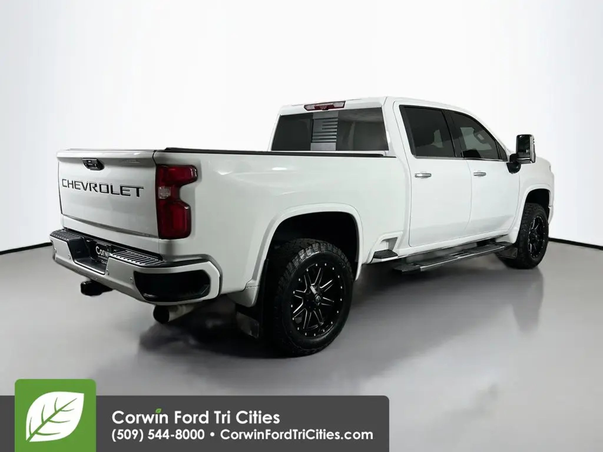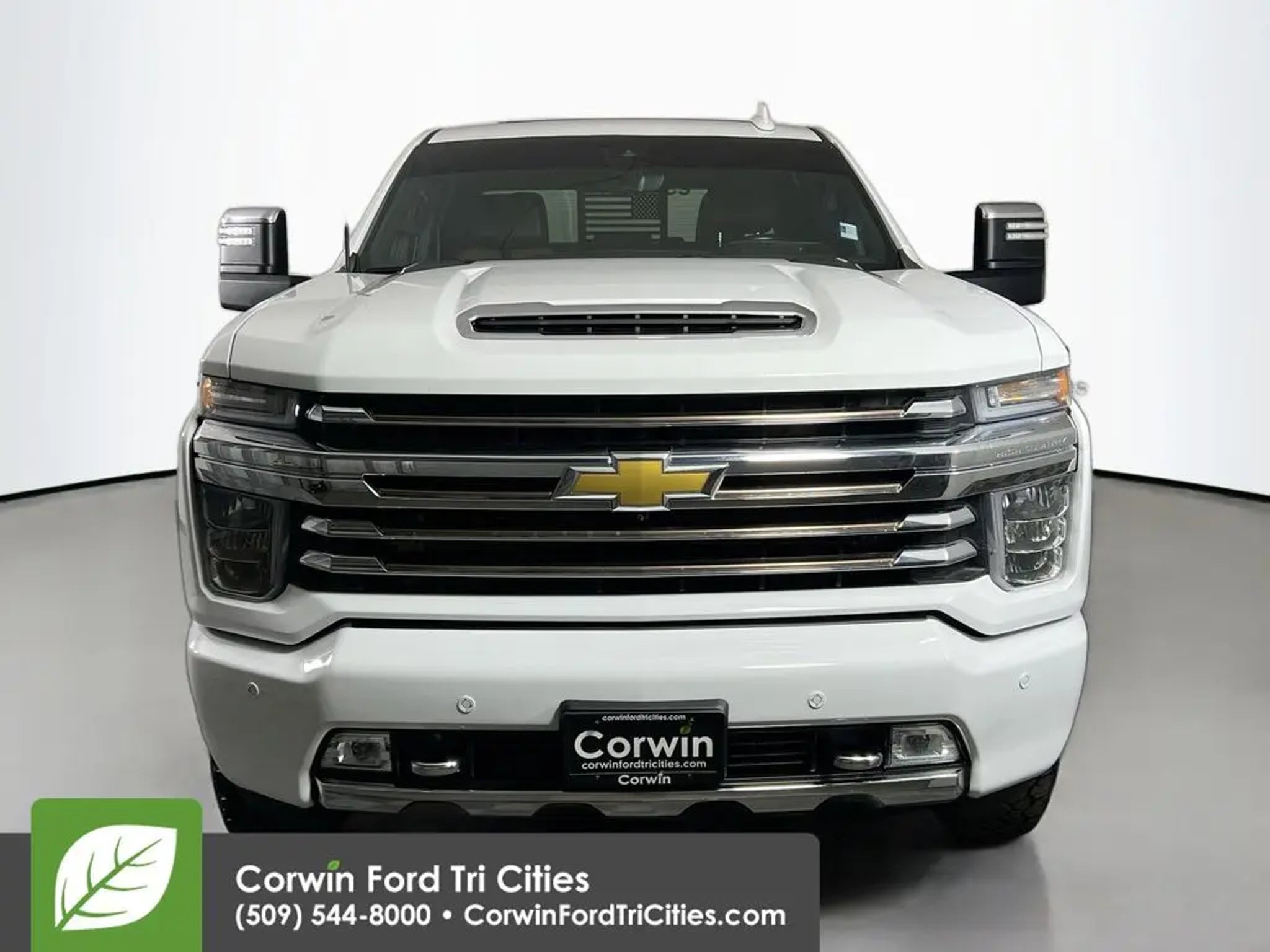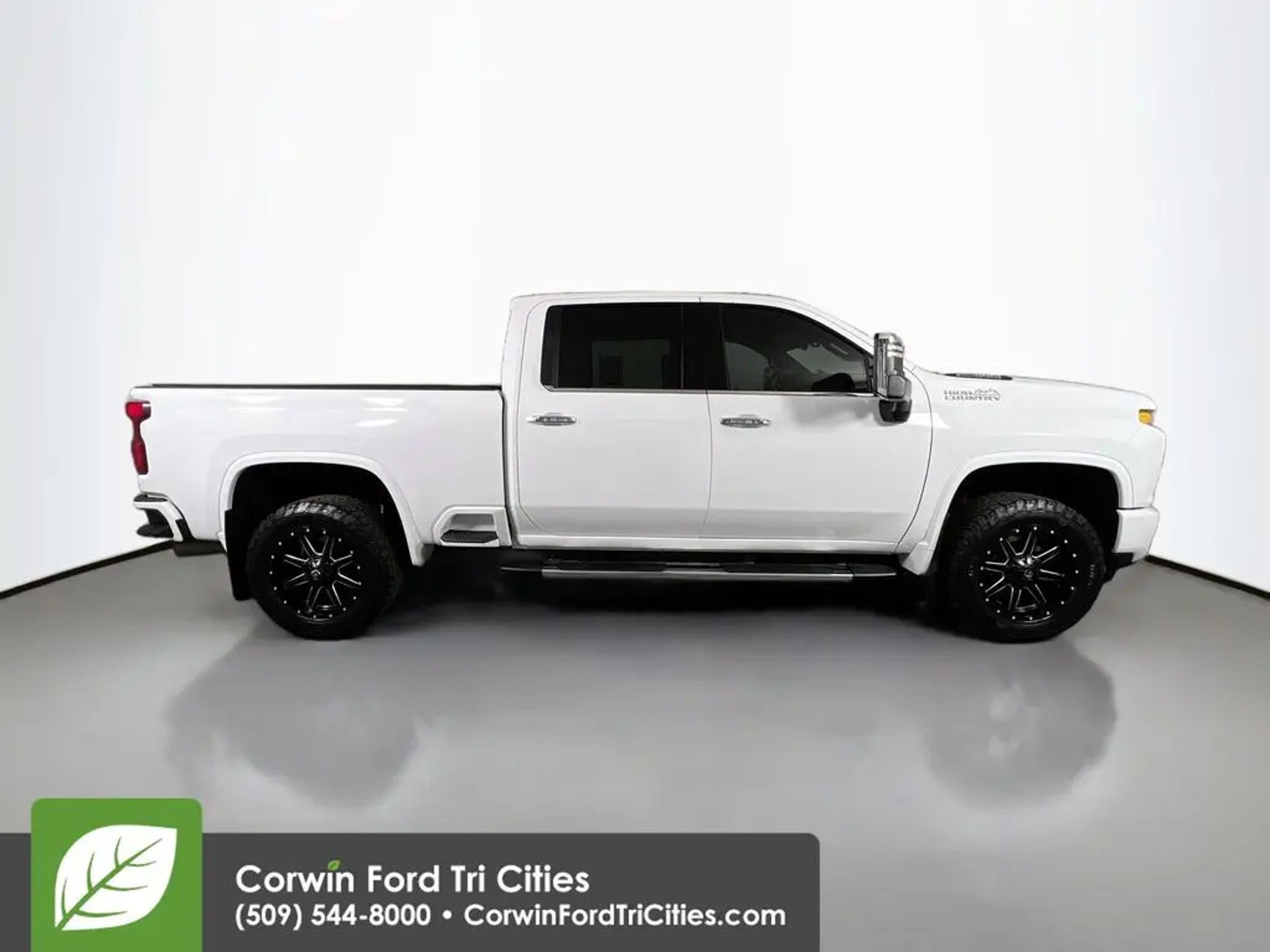 Our Diesel powered 2021 Chevrolet Silverado 3500HD High Country Crew Cab 4X4 with the Deluxe Pack helps raise the bar for HD luxury in Summit White! Motivated by a TurboCharged 6.6 Liter DuraMax Diesel V8 delivering 445hp and 910lb-ft of torque to a 10 Speed Allison Automatic transmission. This Four Wheel Drive truck also has many mechanical benefits, including a 2-speed transfer case, Digital Variable Steering Assist, and our Deluxe Pack's gooseneck/5th wheel towing kit. Check out our bold Silverado 3500HD exterior with LED lighting, chrome assist steps, a power up/down tailgate, black aftermarket wheels, and a spray-on bedliner. Topshelf amenities help you take it easy in our High Country cabin, even when you're hard at work. Highlights include heated/ventilated leather power front seats, heated rear seats, a heated leather steering wheel, dual-zone automatic climate control, and a power rear window. Our Silverado complements those creature comforts with an 8-inch touchscreen, wireless charging, full-color navigation, WiFi compatibility, wireless Apple CarPlay®/Android Auto®, Bluetooth®, and Bose audio. Chevrolet safety measures from our Deluxe Pack add automatic braking, a head-up display, a digital rearview mirror, and more to HD surround vision with a bed-view camera, blind-spot monitoring, lane-change assistance, front/rear parking sensors, hitch guidance, and trailer sway control for your peace of mind. Our Silverado 3500HD High Country is a big-time business partner built to help you succeed! Save this Page and Call for Availability. We Know You Will Enjoy Your Corwin Ford Tri-City Test Drive Towards Ownership!
