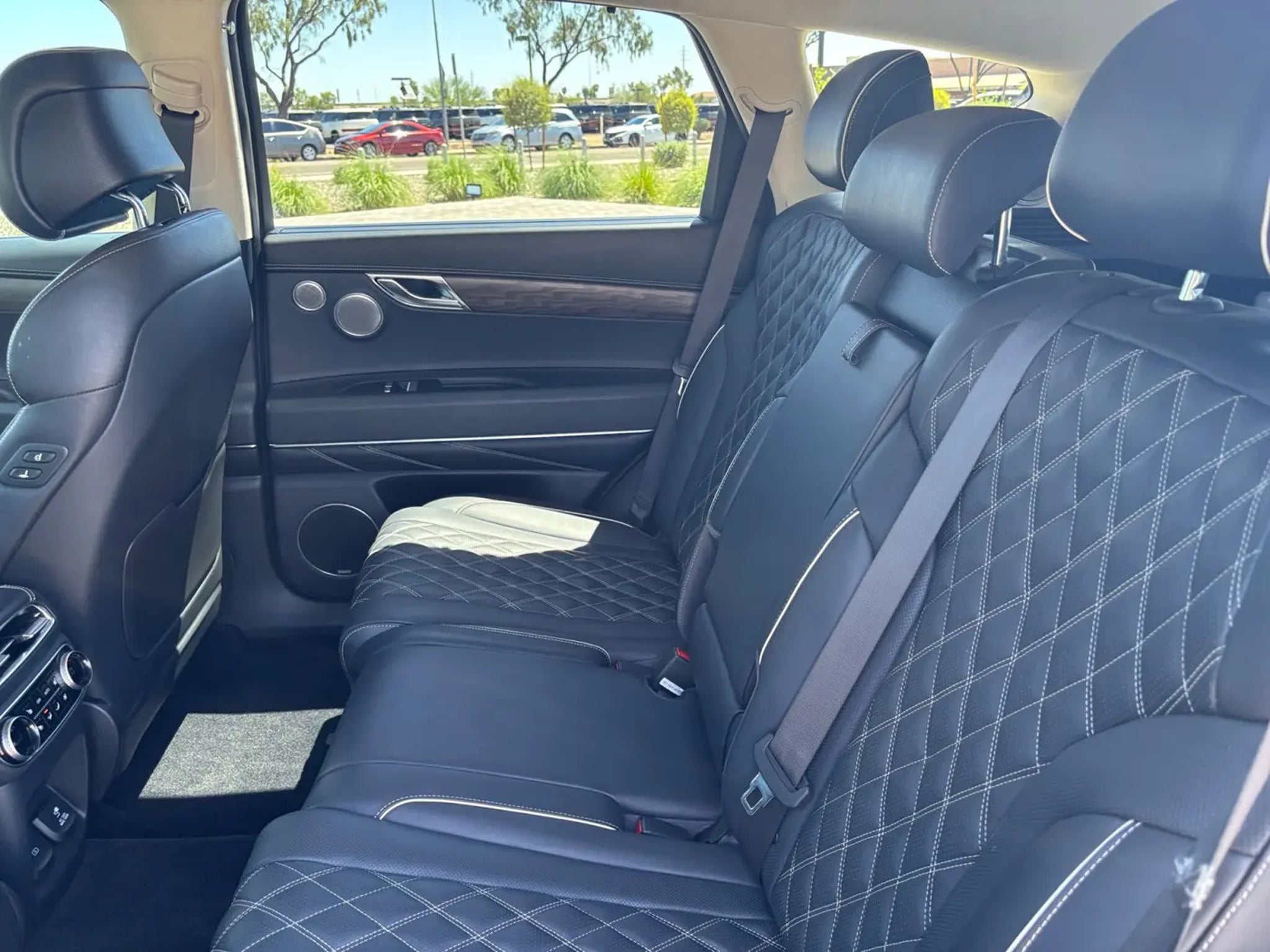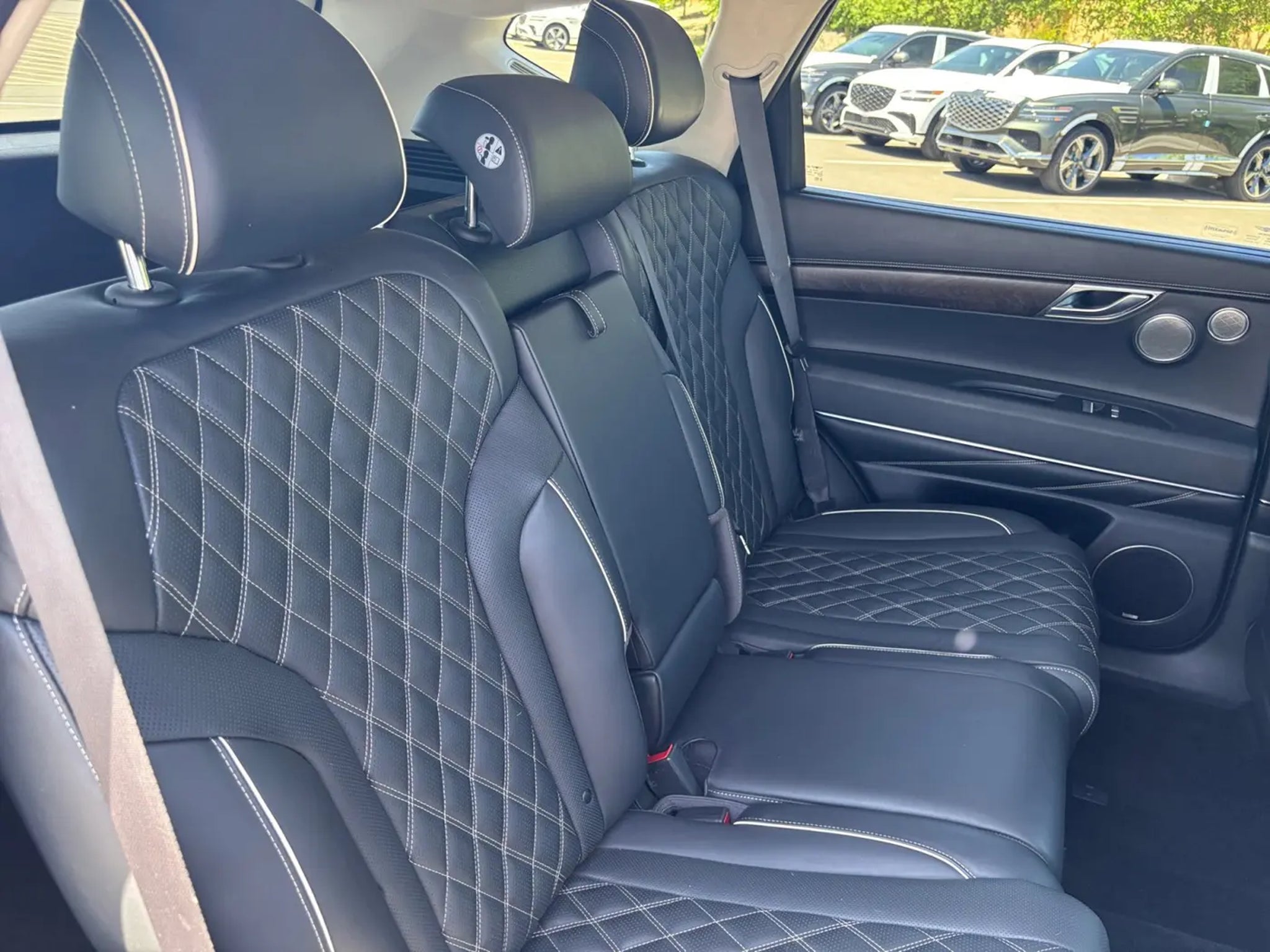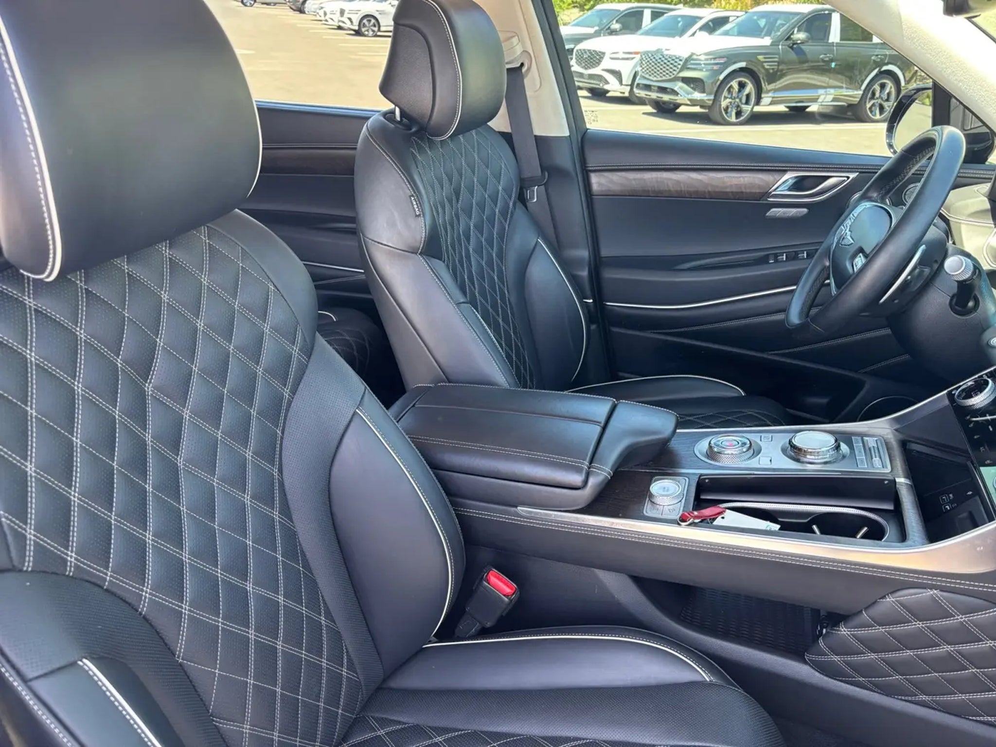 This 2023 Black Genesis GV80 3.5T Prestige AWD is well equipped and includes these features and benefits: 12 Speakers, 3.909 Axle Ratio, 4-Wheel Disc Brakes, ABS brakes, Adaptive suspension, Air Conditioning, Alloy wheels, AM/FM radio: SiriusXM, Android Auto & Apple CarPlay, Anti-whiplash front head restraints, Auto High-beam Headlights, Auto tilt-away steering wheel, Auto-dimming door mirrors, Auto-dimming Rear-View mirror, Automatic temperature control, Brake assist, Bumpers: body-color, Compass, Delay-off headlights, Driver door bin, Driver vanity mirror, Dual front impact airbags, Dual front side impact airbags, Electronic Stability Control, Emergency communication system: Genesis Connected Services, Exterior Parking Camera Rear, Four wheel independent suspension, Front anti-roll bar, Front Bucket Seats, Front Center Armrest, Front dual zone A/C, Front reading lights, Fully automatic headlights, Garage door transmitter: HomeLink, Genuine wood console insert, Genuine wood dashboard insert, Genuine wood door panel insert, Heated & Ventilated Front Bucket Seats, Heated door mirrors, Heated front seats, Heated steering wheel, Illuminated entry, Knee airbag, Leather Seating Surfaces, Leather steering wheel, Leatherette Seating Surfaces, Low tire pressure warning, Memory seat, Navigation System, Occupant sensing airbag, Outside temperature display, Overhead airbag, Overhead console, Panic alarm, Passenger door bin, Passenger vanity mirror, Power door mirrors, Power driver seat, Power Liftgate, Power moonroof, Power passenger seat, Power steering, Power windows, Radio data system, Radio: AM/FM/SiriusXM/HD Audio System, Radio: AM/FM/SiriusXM/HD Lexicon Prem Audio System, Rain sensing wipers, Rear air conditioning, Rear anti-roll bar, Rear reading lights, Rear seat center armrest, Rear side impact airbag, Rear window defroster, Rear window wiper, Remote keyless entry, Security system, Speed control, Speed-sensing steering, Speed-Sensitive Wipers, Split folding rear seat, Spoiler, Steering wheel memory, Steering wheel mounted audio controls, Tachometer, Telescoping steering wheel, Tilt steering wheel, Traction control, Trip computer, Turn signal indicator mirrors, Variably intermittent wipers, Ventilated front seats, and Wheels: 20 x 8.5J Medium Metallic Gray Alloy. 12 Speakers, 3.909 Axle Ratio, 4-Wheel Disc Brakes, ABS brakes, Adaptive suspension, Air Conditioning, Alloy wheels, AM/FM radio: SiriusXM, Android Auto & Apple CarPlay, Anti-whiplash front head restraints, Auto High-beam Headlights, Auto tilt-away steering wheel, Auto-dimming door mirrors, Auto-dimming Rear-View mirror, Automatic temperature control, Brake assist, Bumpers: body-color, Compass, Delay-off headlights, Driver door bin, Driver vanity mirror, Dual front impact airbags, Dual front side impact airbags, Electronic Stability Control, Emergency communication system: Genesis Connected Services, Exterior Parking Camera Rear, Four wheel independent suspension, Front anti-roll bar, Front Bucket Seats, Front Center Armrest, Front dual zone A/C, Front reading lights, Fully automatic headlights, Garage door transmitter: HomeLink, Genuine wood console insert, Genuine wood dashboard insert, Genuine wood door panel insert, Heated & Ventilated Front Bucket Seats, Heated door mirrors, Heated front seats, Heated steering wheel, Illuminated entry, Knee airbag, Leather Seating Surfaces, Leather steering wheel, Leatherette Seating Surfaces, Low tire pressure warning, Memory seat, Navigation System, Occupant sensing airbag, Outside temperature display, Overhead airbag, Overhead console, Panic alarm, Passenger door bin, Passenger vanity mirror, Power door mirrors, Power driver seat, Power Liftgate, Power moonroof, Power passenger seat, Power steering, Power windows, Radio data system, Radio: AM/FM/SiriusXM/HD Audio System, Radio: AM/FM/SiriusXM/HD Lexicon Prem Audio System, Rain sensing wipers, Rear air conditioning, Rear anti-roll bar, Rear reading lights, Rear seat center armres