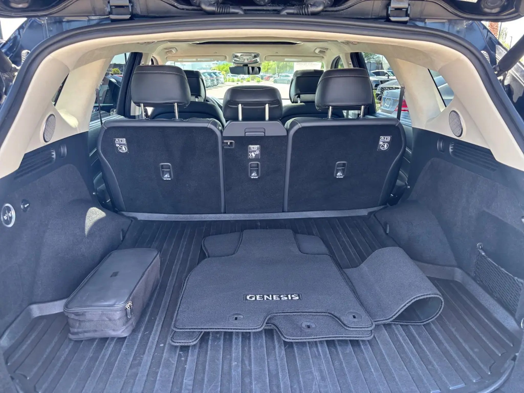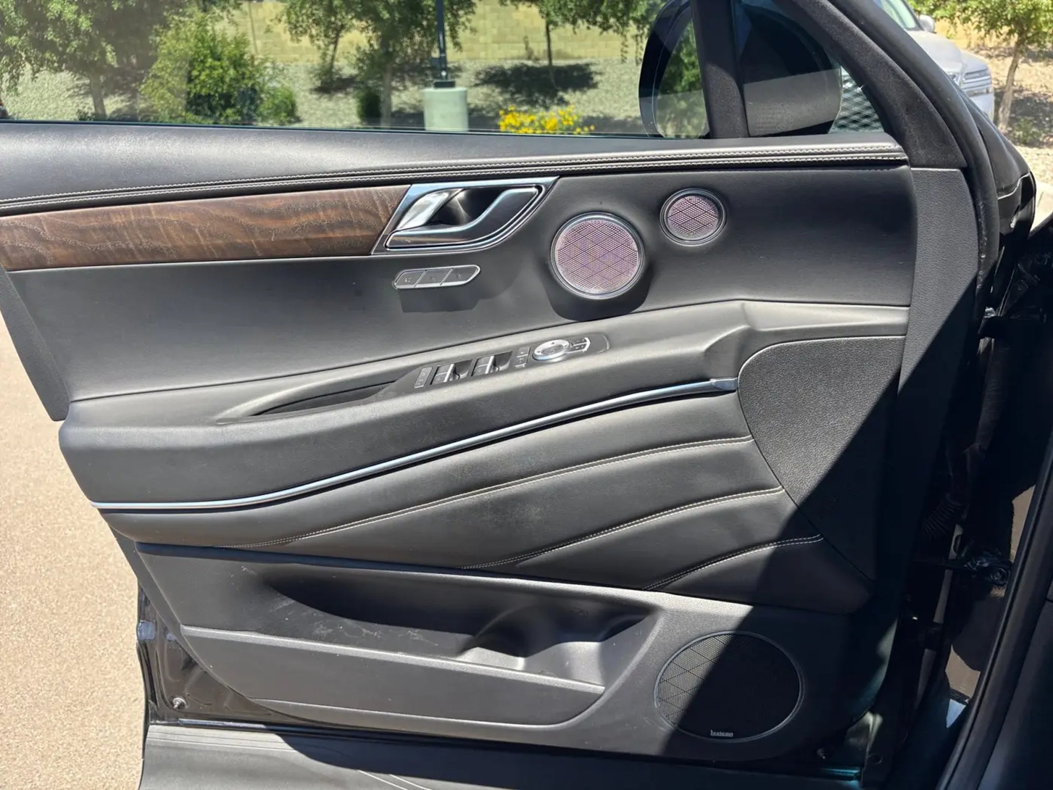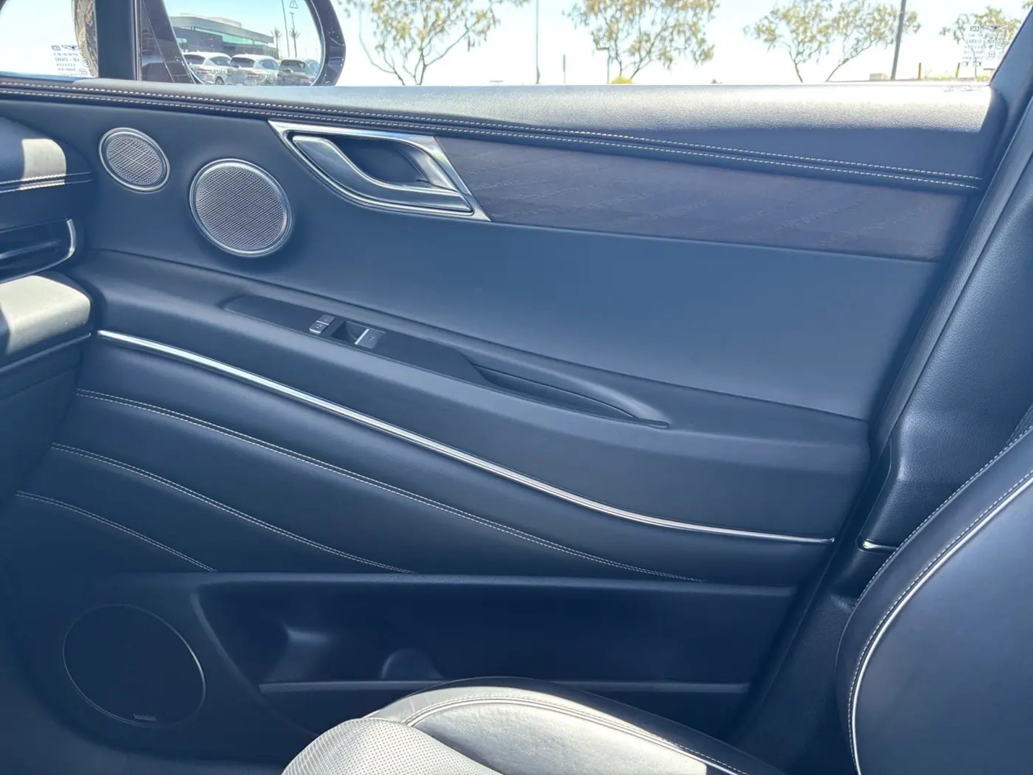 This 2023 Black Genesis GV80 3.5T Prestige AWD is well equipped and includes these features and benefits: 12 Speakers, 3.909 Axle Ratio, 4-Wheel Disc Brakes, ABS brakes, Adaptive suspension, Air Conditioning, Alloy wheels, AM/FM radio: SiriusXM, Android Auto & Apple CarPlay, Anti-whiplash front head restraints, Auto High-beam Headlights, Auto tilt-away steering wheel, Auto-dimming door mirrors, Auto-dimming Rear-View mirror, Automatic temperature control, Brake assist, Bumpers: body-color, Compass, Delay-off headlights, Driver door bin, Driver vanity mirror, Dual front impact airbags, Dual front side impact airbags, Electronic Stability Control, Emergency communication system: Genesis Connected Services, Exterior Parking Camera Rear, Four wheel independent suspension, Front anti-roll bar, Front Bucket Seats, Front Center Armrest, Front dual zone A/C, Front reading lights, Fully automatic headlights, Garage door transmitter: HomeLink, Genuine wood console insert, Genuine wood dashboard insert, Genuine wood door panel insert, Heated & Ventilated Front Bucket Seats, Heated door mirrors, Heated front seats, Heated steering wheel, Illuminated entry, Knee airbag, Leather Seating Surfaces, Leather steering wheel, Leatherette Seating Surfaces, Low tire pressure warning, Memory seat, Navigation System, Occupant sensing airbag, Outside temperature display, Overhead airbag, Overhead console, Panic alarm, Passenger door bin, Passenger vanity mirror, Power door mirrors, Power driver seat, Power Liftgate, Power moonroof, Power passenger seat, Power steering, Power windows, Radio data system, Radio: AM/FM/SiriusXM/HD Audio System, Radio: AM/FM/SiriusXM/HD Lexicon Prem Audio System, Rain sensing wipers, Rear air conditioning, Rear anti-roll bar, Rear reading lights, Rear seat center armrest, Rear side impact airbag, Rear window defroster, Rear window wiper, Remote keyless entry, Security system, Speed control, Speed-sensing steering, Speed-Sensitive Wipers, Split folding rear seat, Spoiler, Steering wheel memory, Steering wheel mounted audio controls, Tachometer, Telescoping steering wheel, Tilt steering wheel, Traction control, Trip computer, Turn signal indicator mirrors, Variably intermittent wipers, Ventilated front seats, and Wheels: 20 x 8.5J Medium Metallic Gray Alloy. 12 Speakers, 3.909 Axle Ratio, 4-Wheel Disc Brakes, ABS brakes, Adaptive suspension, Air Conditioning, Alloy wheels, AM/FM radio: SiriusXM, Android Auto & Apple CarPlay, Anti-whiplash front head restraints, Auto High-beam Headlights, Auto tilt-away steering wheel, Auto-dimming door mirrors, Auto-dimming Rear-View mirror, Automatic temperature control, Brake assist, Bumpers: body-color, Compass, Delay-off headlights, Driver door bin, Driver vanity mirror, Dual front impact airbags, Dual front side impact airbags, Electronic Stability Control, Emergency communication system: Genesis Connected Services, Exterior Parking Camera Rear, Four wheel independent suspension, Front anti-roll bar, Front Bucket Seats, Front Center Armrest, Front dual zone A/C, Front reading lights, Fully automatic headlights, Garage door transmitter: HomeLink, Genuine wood console insert, Genuine wood dashboard insert, Genuine wood door panel insert, Heated & Ventilated Front Bucket Seats, Heated door mirrors, Heated front seats, Heated steering wheel, Illuminated entry, Knee airbag, Leather Seating Surfaces, Leather steering wheel, Leatherette Seating Surfaces, Low tire pressure warning, Memory seat, Navigation System, Occupant sensing airbag, Outside temperature display, Overhead airbag, Overhead console, Panic alarm, Passenger door bin, Passenger vanity mirror, Power door mirrors, Power driver seat, Power Liftgate, Power moonroof, Power passenger seat, Power steering, Power windows, Radio data system, Radio: AM/FM/SiriusXM/HD Audio System, Radio: AM/FM/SiriusXM/HD Lexicon Prem Audio System, Rain sensing wipers, Rear air conditioning, Rear anti-roll bar, Rear reading lights, Rear seat center armres
