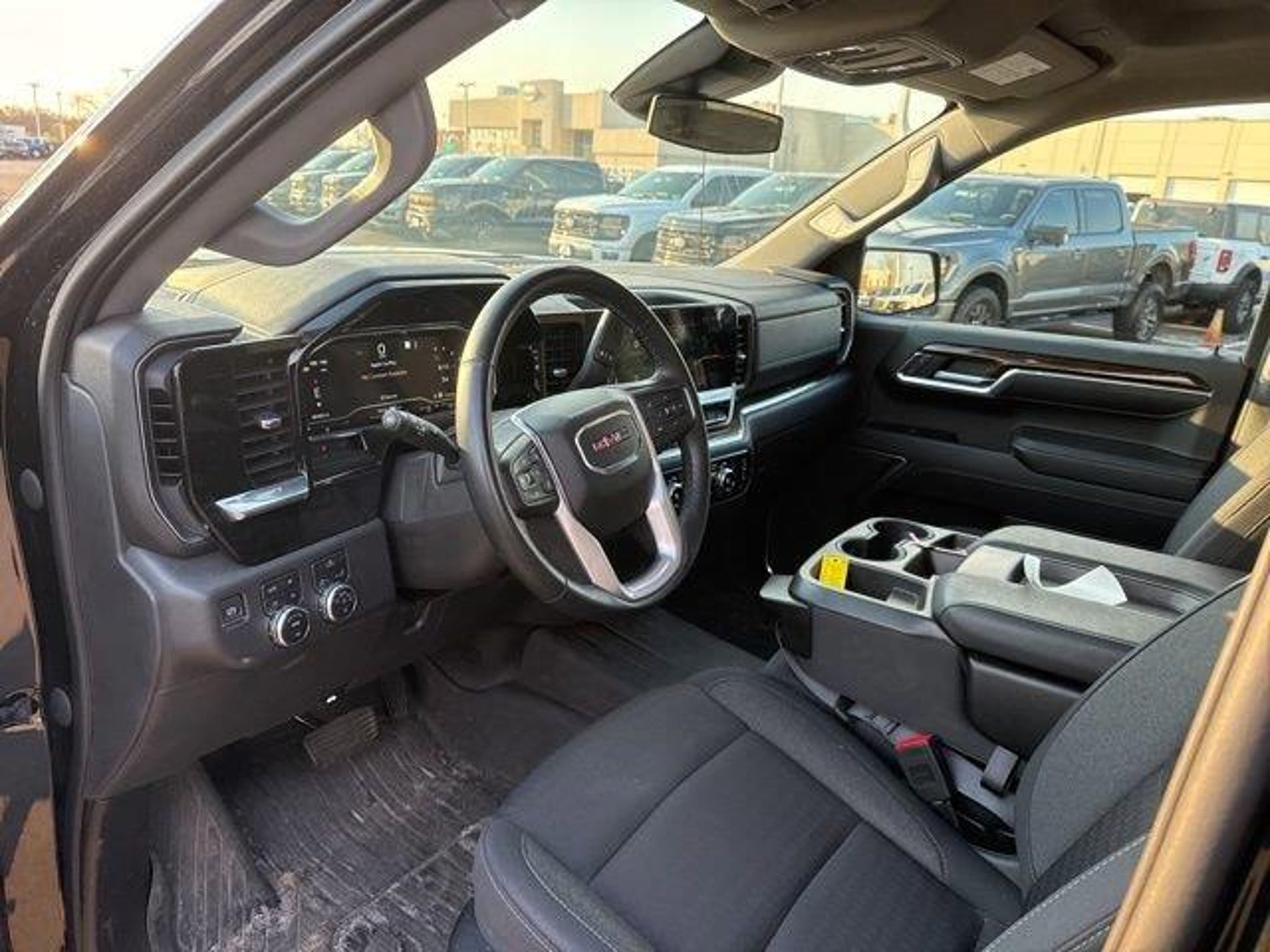 10-Way Power Driver Seat Adjuster w/Lumbar, 120-Volt Bed Mounted Power Outlet, 120-Volt Instrument Panel Power Outlet, 170 Amp Alternator, 2 Charge/Data USB Ports, 2 Type-C Charge-Only Rear USB Ports, 220 Amp Alternator, 4-Way Manual Passenger Seat Adjuster, 4-Wheel Disc Brakes, 6 Speakers, 6-Speaker Audio System Feature, ABS brakes, Air Conditioning, All-Weather Floor Liner (LPO), Alloy wheels, AM/FM radio, Apple CarPlay/Android Auto, Auto High-beam Headlights, Auto-Locking Rear Differential, Automatic Emergency Braking, Automatic temperature control, Auxiliary External Transmission Oil Cooler, Body Color Header w/Gloss Black Mesh Grille Bars, Brake assist, Buckle to Drive, Bumpers: body-color, Cloth Rear Seat w/Storage Package, Cloth Seat Trim, Color-Keyed Carpeting Floor Covering, Compass, Deep-Tinted Glass, Delay-off headlights, Driver door bin, Driver vanity mirror, Dual Exhaust System, Dual front impact airbags, Dual front side impact airbags, Electric Rear-Window Defogger, Electrical Steering Column Lock, Electronic Stability Control, Emergency communication system: OnStar and GMC connected services capable, External Engine Oil Cooling, Following Distance Indicator, Forward Collision Alert, Front 40/20/40 Split-Bench Seat, Front anti-roll bar, Front Center Armrest w/Storage, Front dual zone A/C, Front fog lights, Front Frame-Mounted Black Recovery Hooks, Front License Plate Kit, Front Pedestrian Braking, Front reading lights, Front Rubberized-Vinyl Floor Mats, Front wheel independent suspension, Fully automatic headlights, GMC Connected Access Capable, HD Rear Vision Camera, Heated door mirrors, Heated Driver & Front Outboard Passenger Seating, Heated front seats, Heated steering wheel, Heavy-Duty Air Filter, High Capacity Suspension Package, Hill Descent Control, Hitch Guidance, Illuminated entry, IntelliBeam Automatic High Beam On/Off, Keyless Open & Start, Lane Keep Assist w/Lane Departure Warning, LED Cargo Area Lighting, Low tire pressure warning, Manual Tilt-Wheel & Telescoping Steering Column, Navigation System, Not Equipped w/Steering Column Lock, Occupant sensing airbag, Off-Road Suspension, OnStar & GMC Connected Services Capable, Outside temperature display, Overhead airbag, Overhead console, Panic alarm, Passenger door bin, Passenger vanity mirror, Power Door Locks, Power door mirrors, Power driver seat, Power Front Windows w/Driver Express Up/Down, Power Front Windows w/Passenger Express Down, Power Rear Windows w/Express Down, Power steering, Power windows, Preferred Equipment Group 3