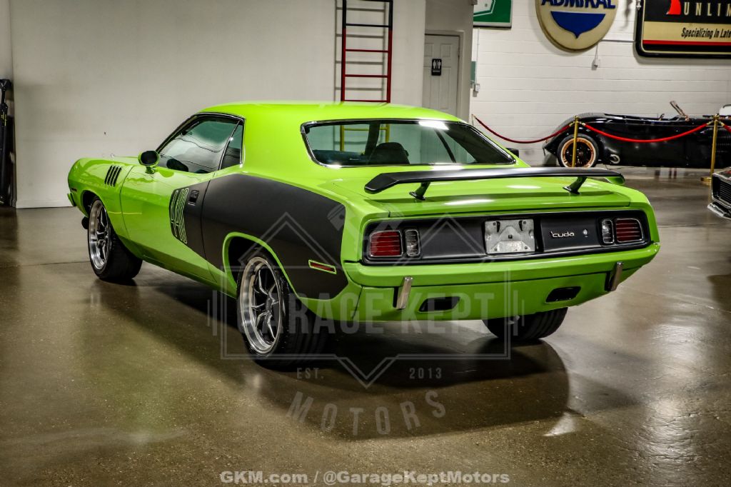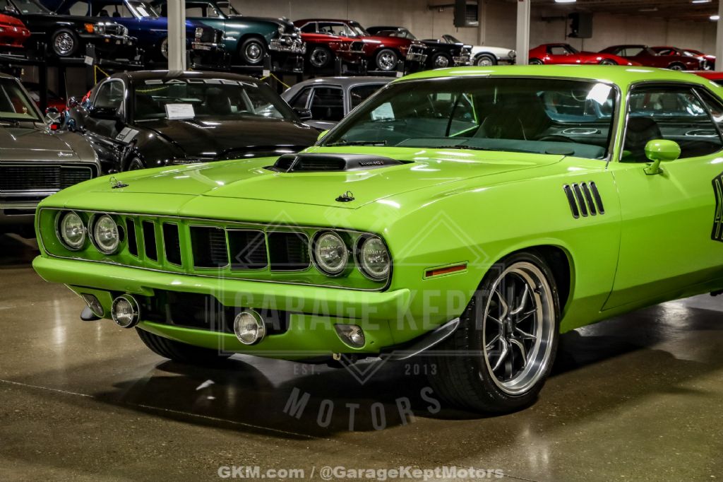 Finished in eye-catching Sublime Green over a Black interior, this Cuda makes a bold statement wherever it goes. Inside, digital gauges provide a modern touch, offering improved functionality while maintaining a performance-oriented cockpit. This is a muscle car built not just to be admired, but to be drivenan ideal combination of classic Mopar styling and serious modern performance.