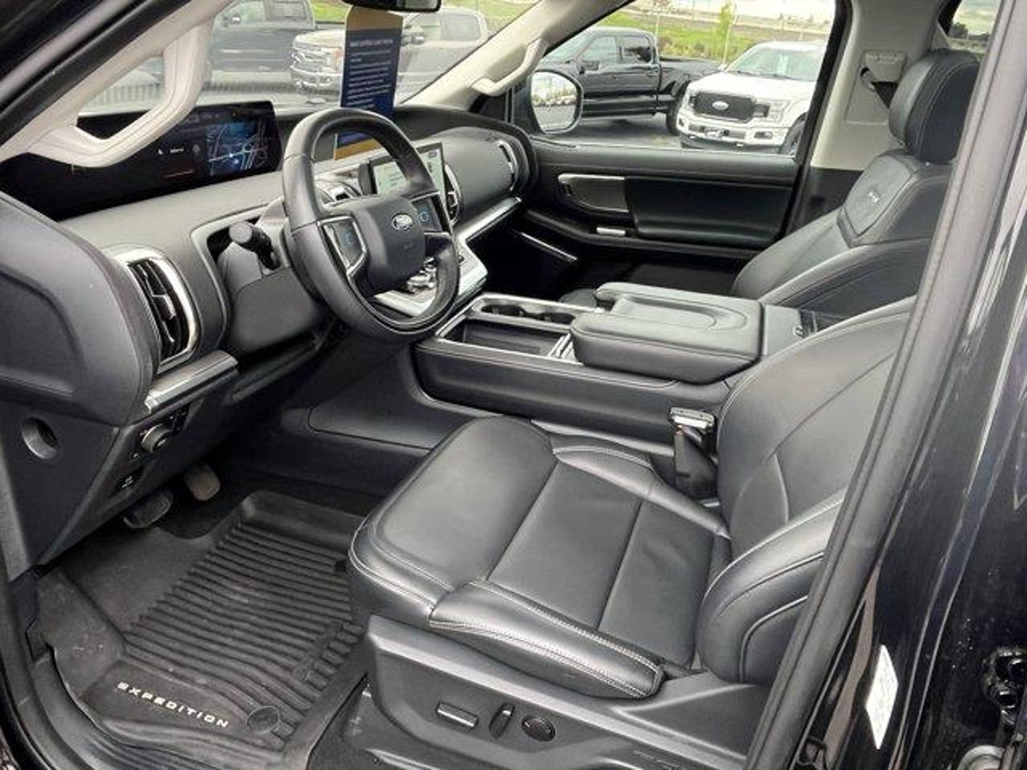 2025 Ford Expedition Platinum Black Metallic 4WD 10-Speed Automatic EcoBoost 3.5L V6 GTDi DOHC 24V Twin TurbochargedFord Certified, 4WD, 10 Speakers, 2nd Row Power-Folding 40/20/40 Bench Seat, 2nd Row Power-Folding Captain's Chairs, 3.73 Axle Ratio, 3rd row seats: split-bench, 4-Wheel Disc Brakes, ABS brakes, Adjustable pedals, Air Conditioning, Alloy wheels, AM/FM radio: SiriusXM with 360L, Apple CarPlay/Android Auto, Auto High-beam Headlights, Auto-dimming door mirrors, Auto-dimming Rear-View mirror, Automatic temperature control, BlueCruise Equipped (1-Year Plan), Brake assist, Bumpers: body-color, Compass, Connectivity Package (One-Time Purchase), Delay-off headlights, Driver door bin, Driver vanity mirror, Dual front impact airbags, Dual front side impact airbags, Electronic Stability Control, Emergency communication system: 911 Assist, Equipment Group 600A Standard Package, Exterior Parking Camera Rear, Floor Liners, Front & Second Rows, Four wheel independent suspension, Front anti-roll bar, Front Bucket Seats, Front Center Armrest, Front dual zone A/C, Front License Plate Bracket, Front reading lights, Fully automatic headlights, Garage door transmitter, Genuine wood dashboard insert, Genuine wood door panel insert, Heated & Ventilated Leather Front Captain's Chairs, Heated door mirrors, Heated front seats, Heated rear seats, Heated steering wheel, Illuminated entry, Leather steering wheel, Low tire pressure warning, Memory seat, Navigation System, Occupant sensing airbag, Outside temperature display, Overhead airbag, Overhead console, Panic alarm, Passenger door bin, Passenger vanity mirror, Pedal memory, Power door mirrors, Power driver seat, Power moonroof: Vista Roof, Power passenger seat, Power steering, Power windows, Radio data system, Radio: B&O Sound System by Bang & Olufsen, Rain sensing wipers, Rear air conditioning, Rear anti-roll bar, Rear reading lights, Rear window defroster, Rear window wiper, Reclining 3rd row seat, Remote keyless entry, Security system, SiriusXM w/360L, Speed control, Speed-sensing steering, Speed-Sensitive Wipers, Split folding rear seat, Spoiler, Steering wheel memory, Steering wheel mounted audio controls, Tachometer, Telescoping steering wheel, Tilt steering wheel, Traction control, Trip computer, Turn signal indicator mirrors, Variably intermittent wipers, Ventilated front seats, Voltmeter, Wheels: 20 Ebony Bright Machined Aluminum, 4WD.Certified. Ford Details:* Limited Warranty: 3 Month/4,000 Mile (whichever comes first) after new car warranty expires or fr