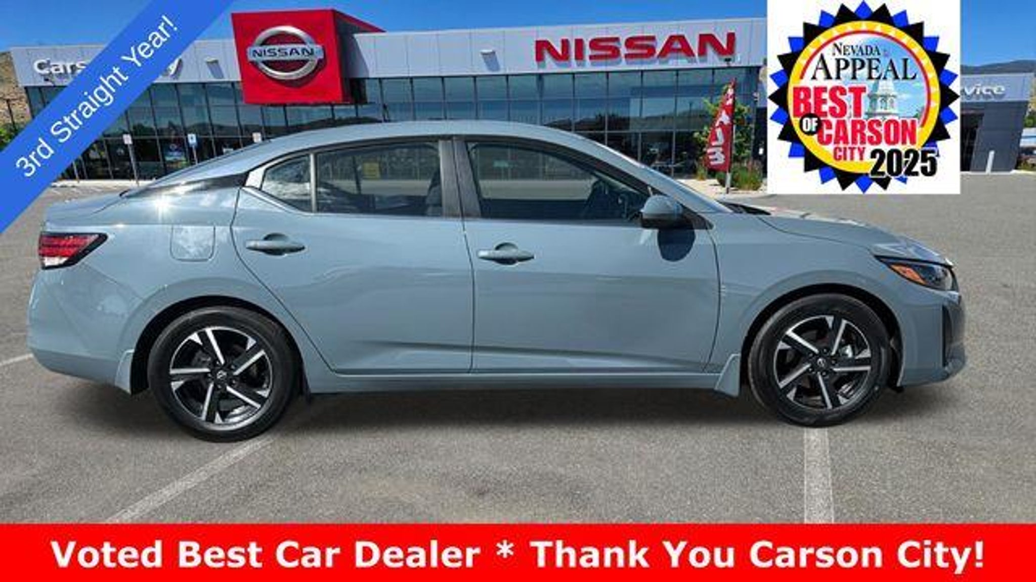 * Save money on sales tax over buying in Reno! This 2024 Nissan Sentra SV is an exceptional value, packed with premium features that elevate the driving experience. With its sleek Gray exterior and well-appointed interior, this Sentra is a standout in its class. "¢ Frameless EC Mirror w/Homelink "¢ Carpeted Floor Mats w/Trunk Mat "¢ Body Colored Splash Guards (4-Piece) "¢ Map Pocket Lighting "¢ Nissan USB Charging Cable Set "¢ Door Sill Plates "¢ Clear Rear Bumper Protector "¢ Remote keyless entry "¢ Blind Spot Warning "¢ Rear Parking Sensors "¢ Auto High-beam Headlights "¢ Fully automatic headlights "¢ Security system "¢ Illuminated entry "¢ 16 Alloy Wheels Under the hood, the 2.0L I4 DOHC engine paired with the CVT with Xtronic transmission delivers an impressive 30 MPG in the city and 40 MPG on the highway, ensuring exceptional fuel efficiency for your daily commute or weekend adventures. The Sentra's responsive handling and smooth ride quality make it a joy to drive, whether navigating city streets or cruising down the highway. The attention to detail is evident throughout the Sentra's design, from the sleek exterior lines to the well-appointed interior. The Upgraded Cloth Seat Trim provides comfort and style, while the NissanConnect featuring Apple CarPlay and Android Auto keeps you connected and entertained on the go. Safety is also a top priority, with features like Blind Spot Warning, Rear Parking Sensors, and a comprehensive suite of airbags providing you and your passengers with peace of mind. The Sentra's advanced safety technologies work seamlessly to help you stay aware of your surroundings and react quickly to any potential hazards. This 2024 Nissan Sentra SV is an exceptional value, offering a winning combination of style, performance, and technology. With its impressive fuel efficiency, comprehensive features, and commitment to safety, it's the perfect choice for the discerning driver. We encourage you to schedule a test drive and experience the Sentra's exceptional capabilities for yourself. * Save on sales tax over buying in Reno! We may be the newest and fastest-growing franchise dealership in Nevada, but that hasn't stopped us from recruiting an automotive dream team. Our staff includes long-time Nissan product experts on both our sales and management teams. Our goal is to make buying your car a fun and easy experience. Se habla español en cada parte de la empresa: ventas, finanzas, reparación y en la oficina. Si prefiere visitar este sitio en español, seleccione En Español al pie de la página.